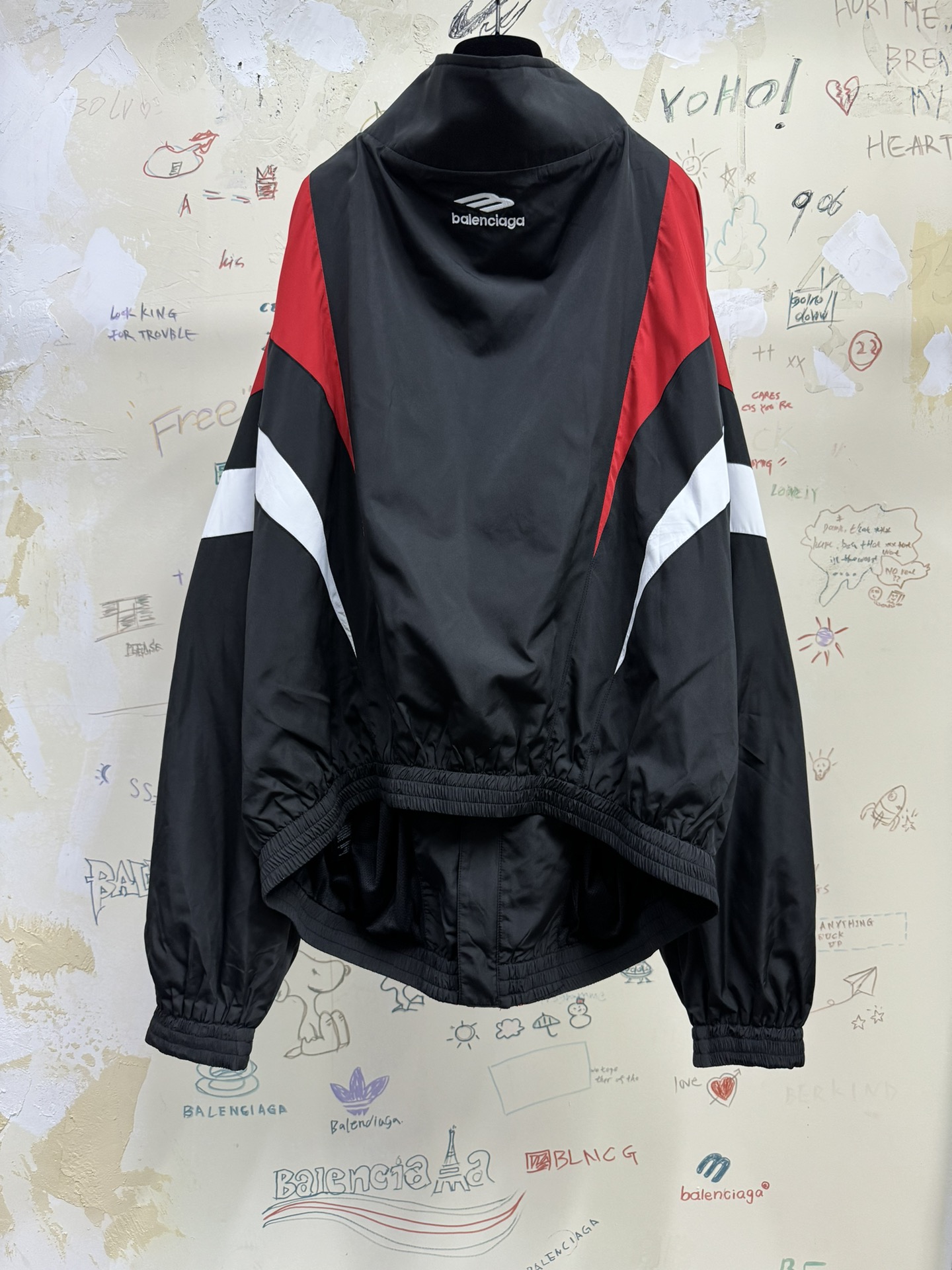 Tags: Balenciaga Windbreaker Jacket, Color Block Jacket, Fashion Windbreaker, Off Shoulder Jacket, Oversized Windbreaker