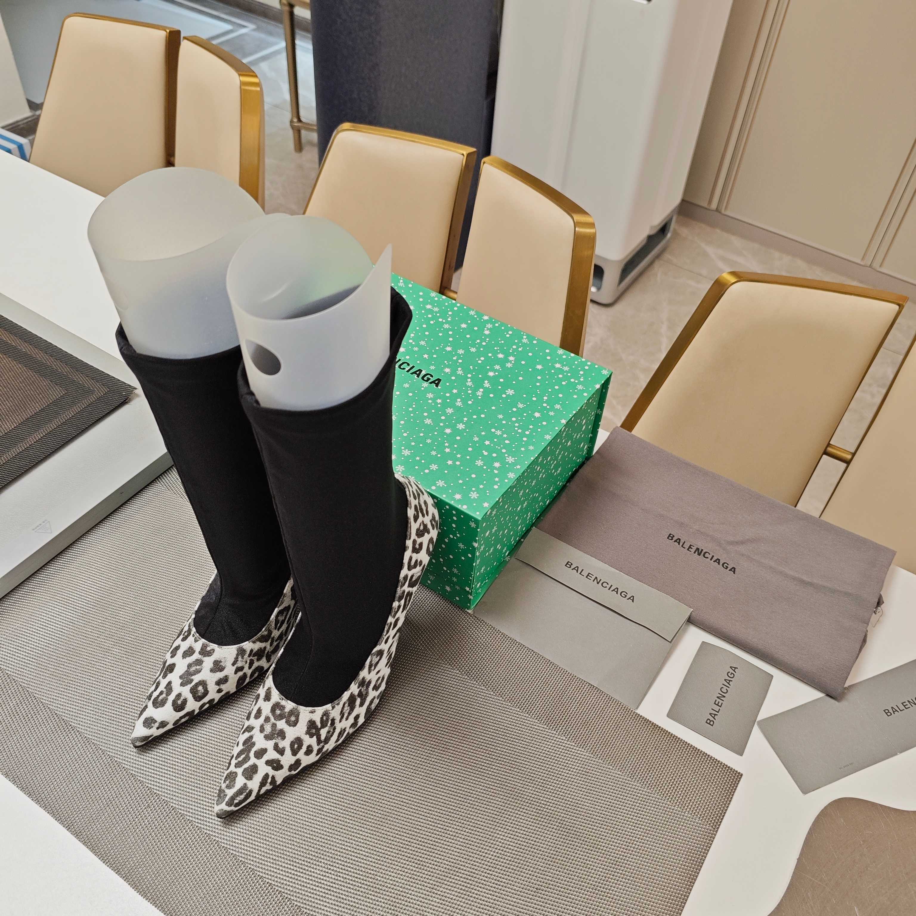 Balenciaga Leopard Print Stretch Fabric Mid-Calf Boots - Limited Edition