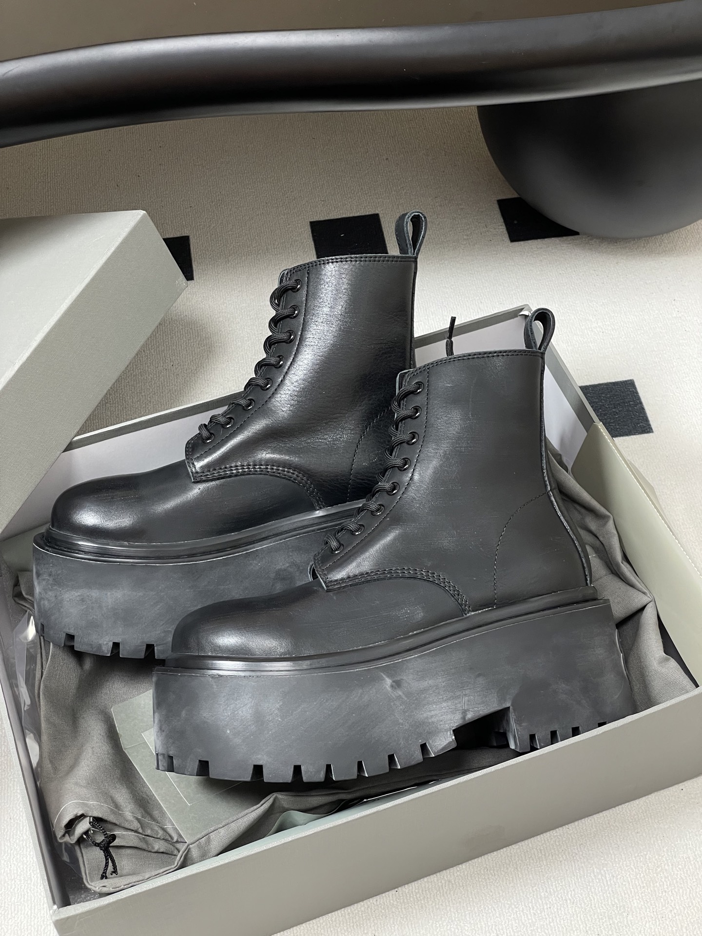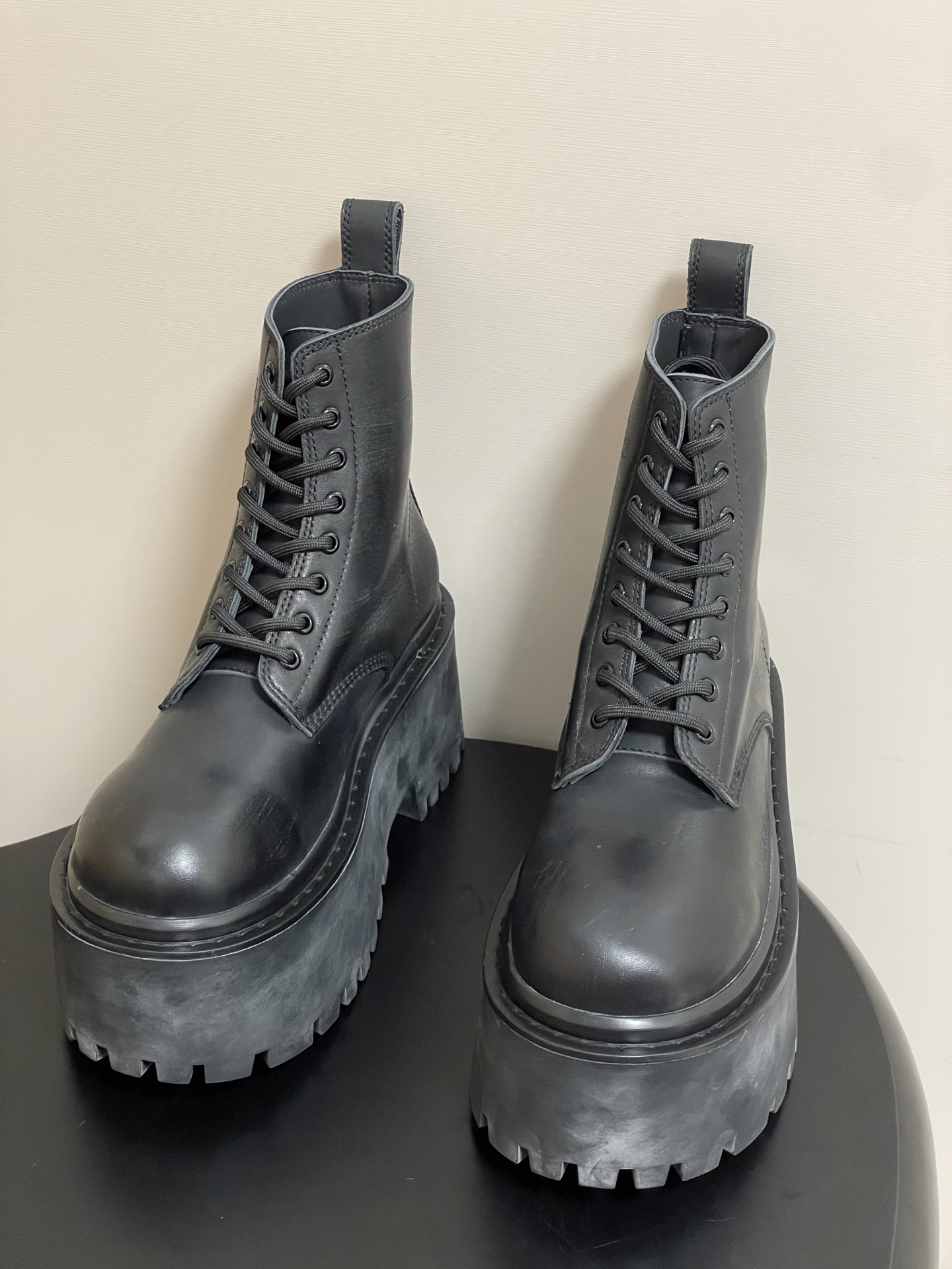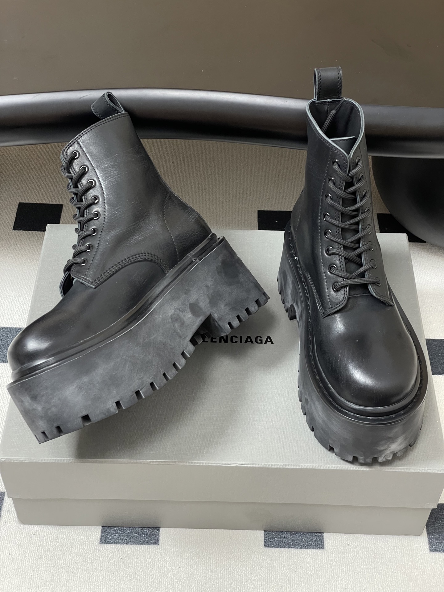 These Balenciaga Strike boots are more than just footwear; they're a fashion statement. With their distinctive platform sole and distressed leather, you'll turn heads wherever you go.