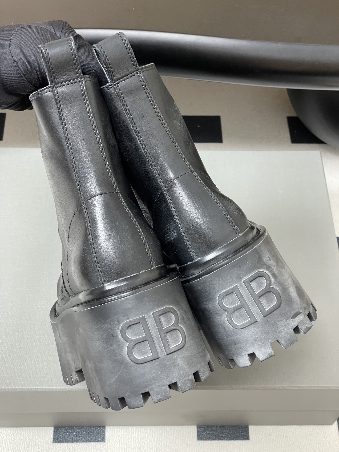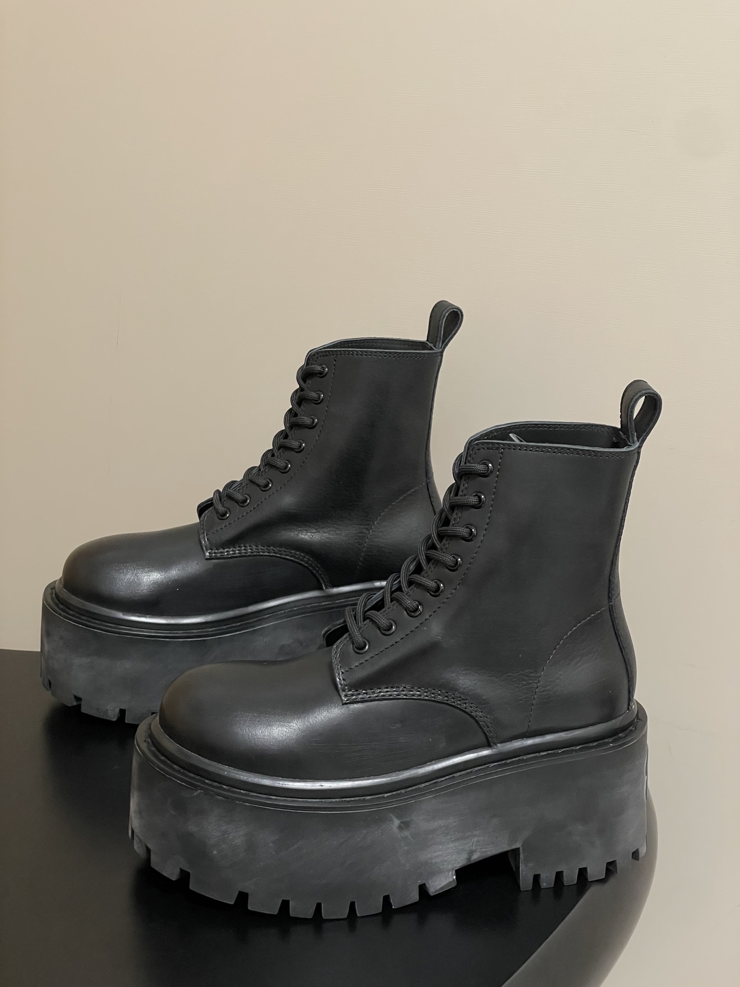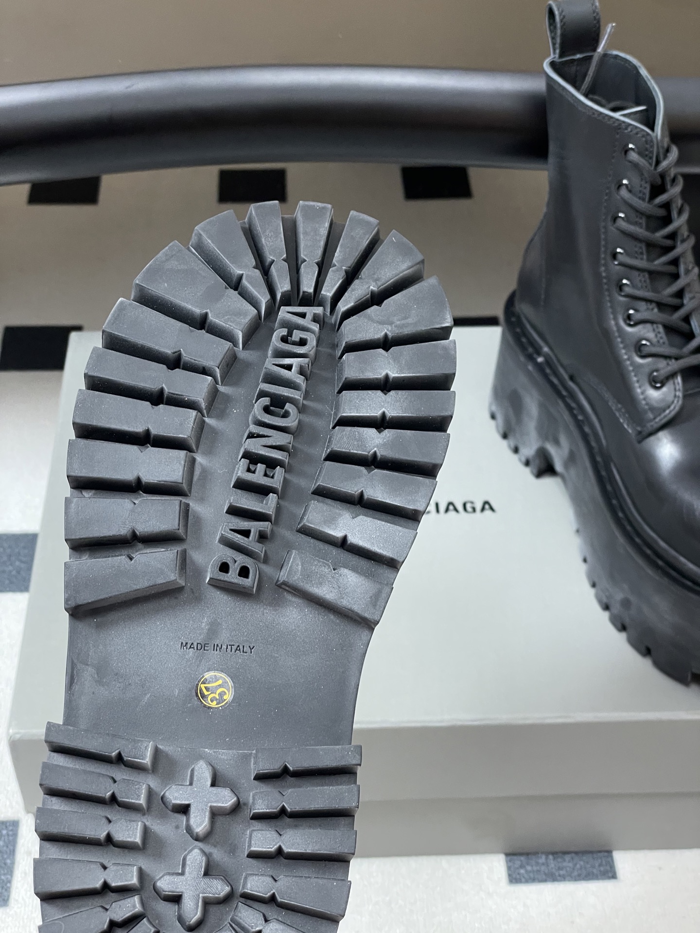 These Balenciaga Strike boots are more than just footwear; they're a fashion statement. With their distinctive platform sole and distressed leather, you'll turn heads wherever you go.