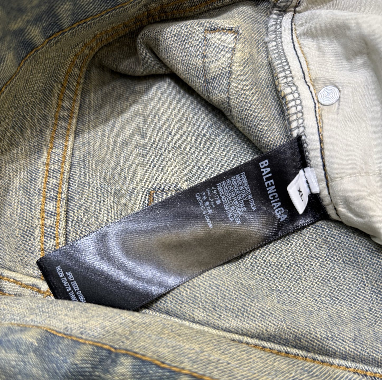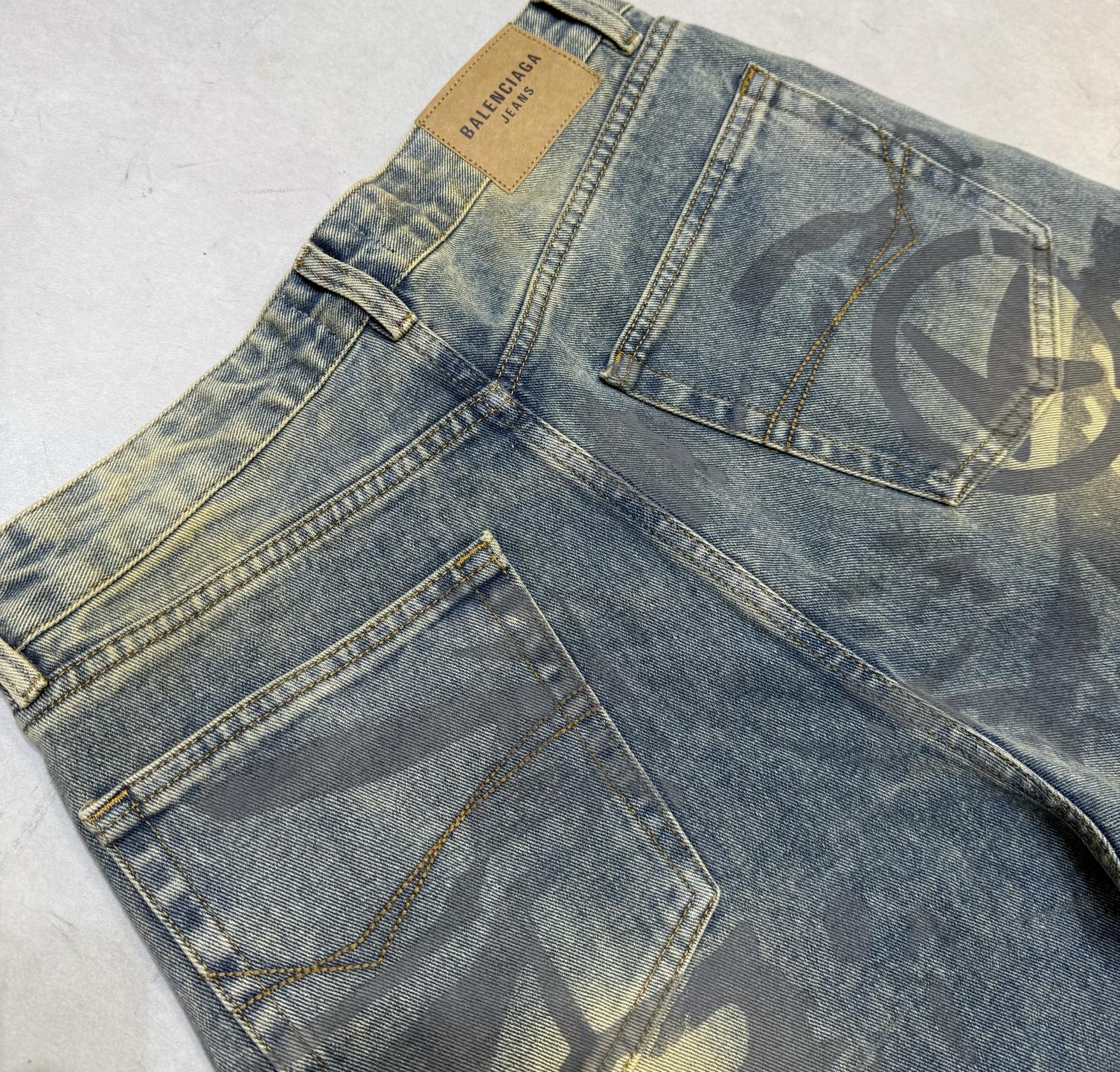 These Balenciagaa washed graffiti jeans offer a distinctive aesthetic, blending high-fashion with urban edge.