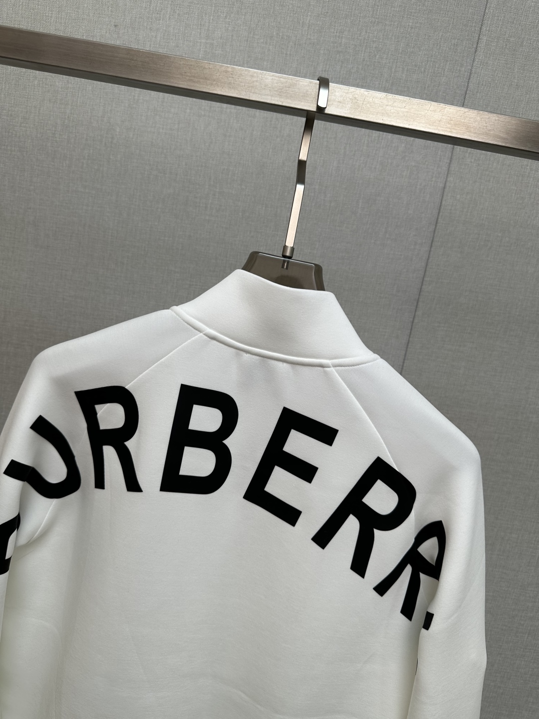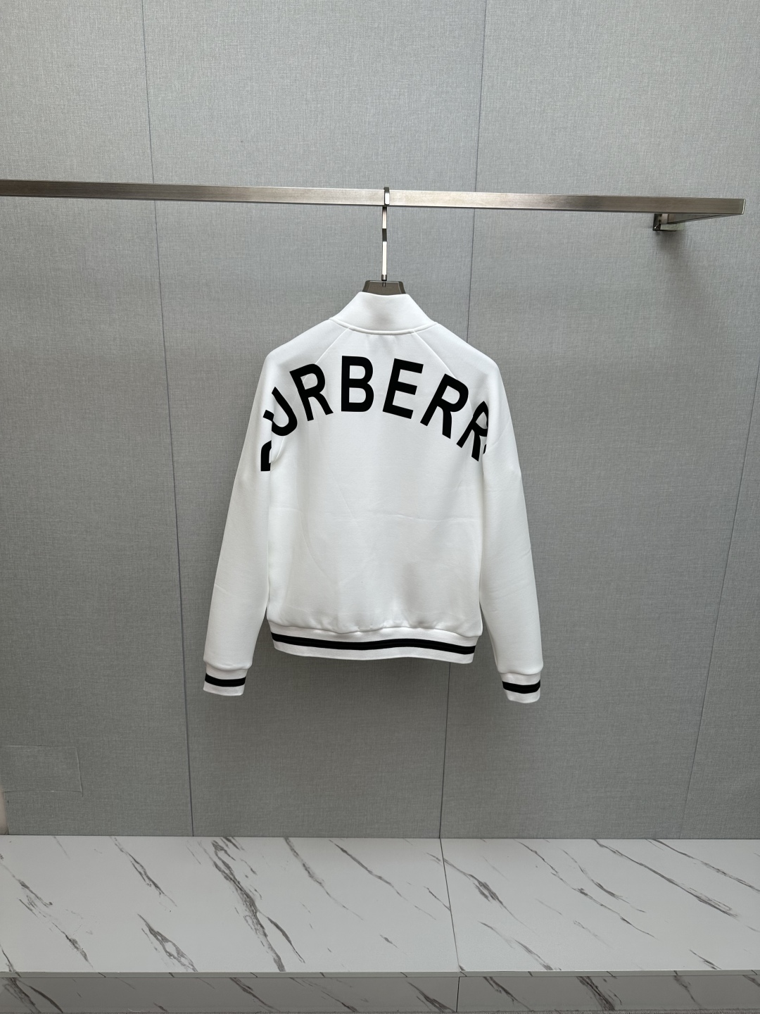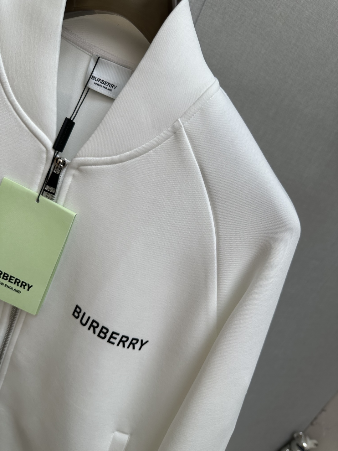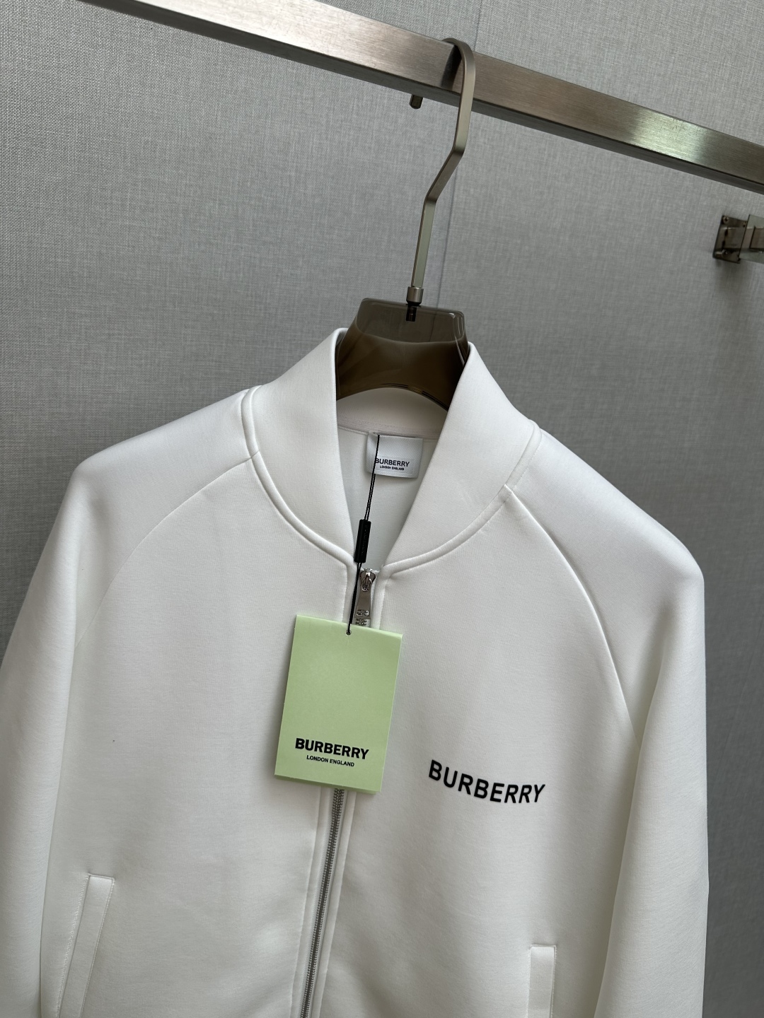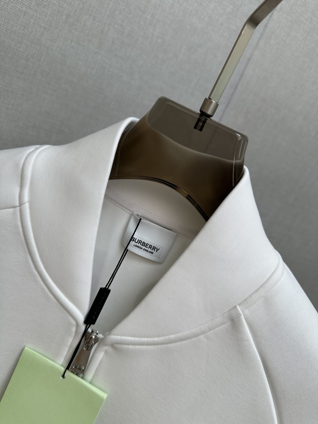 Tags: Burberry Bomber Jacket, Luxury Outerwear, Mens Designer Jacket, Striped Trim Jacket, White Zip Up Jacket