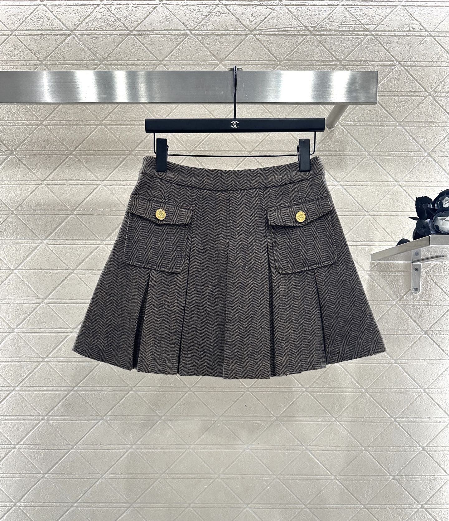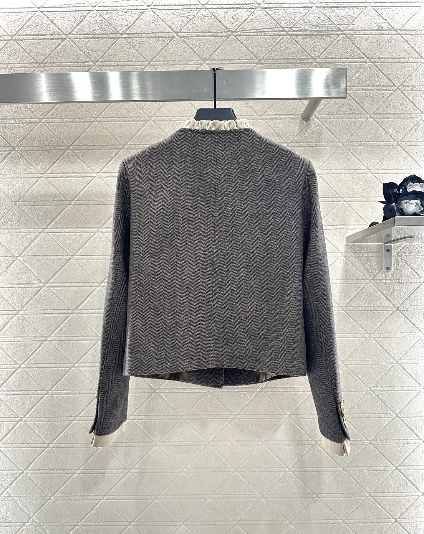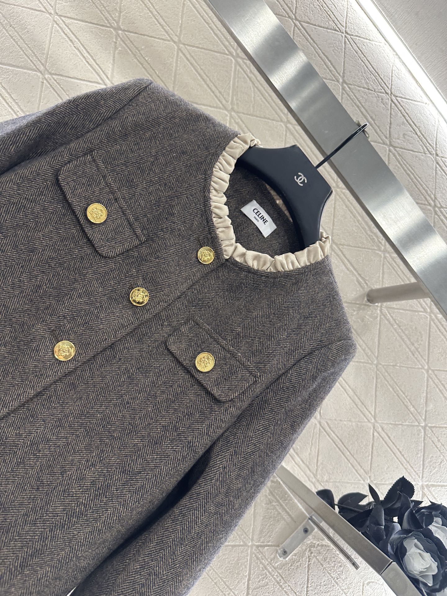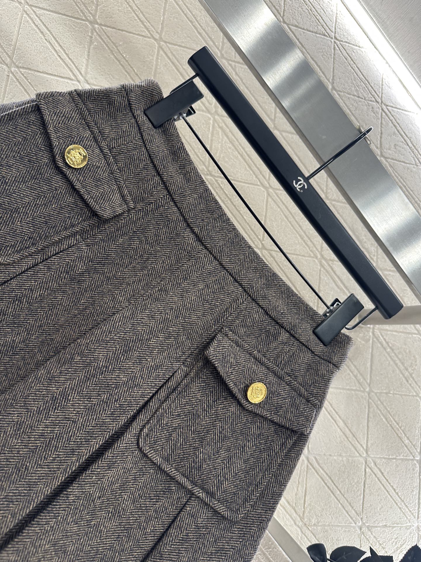 - Wool-blend tweed fabric for a classic look