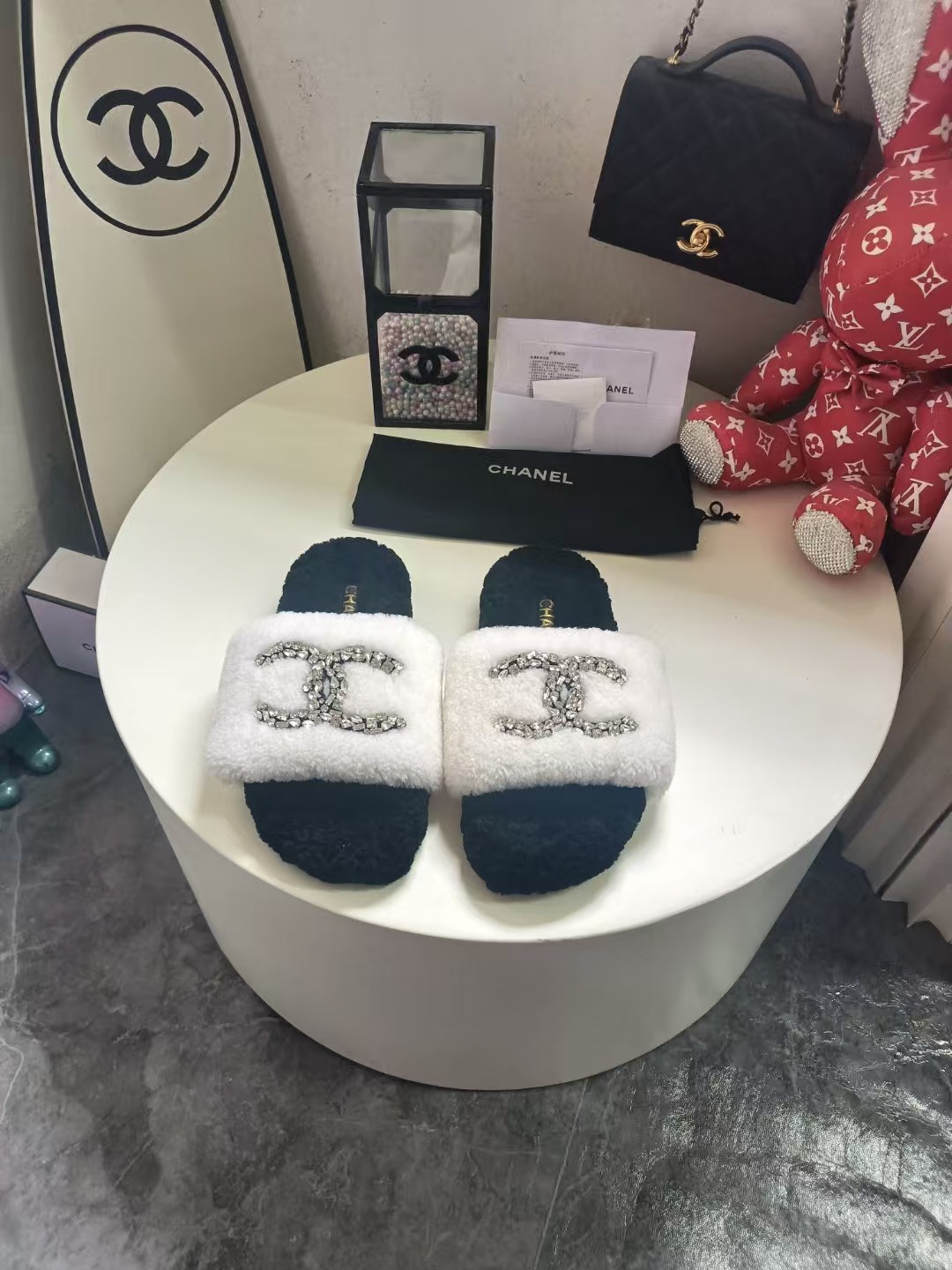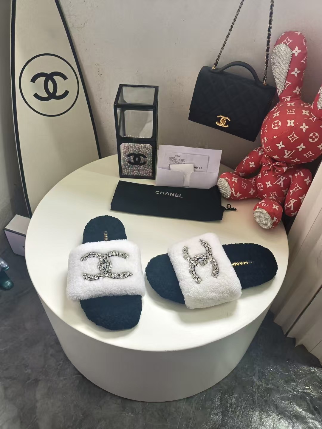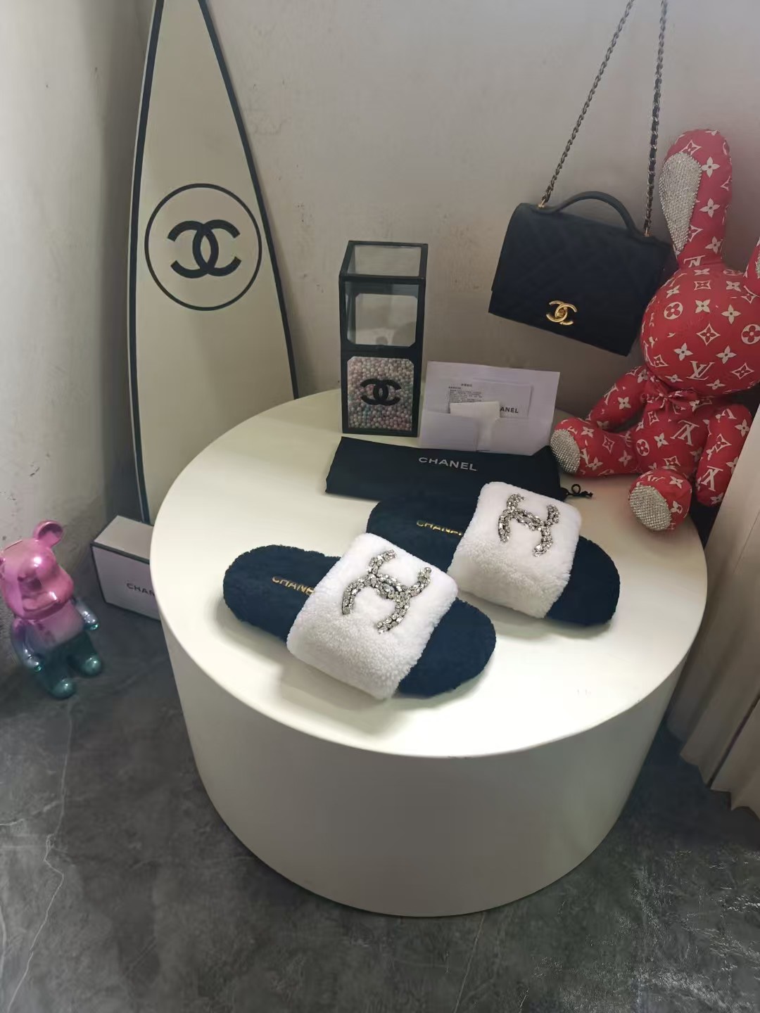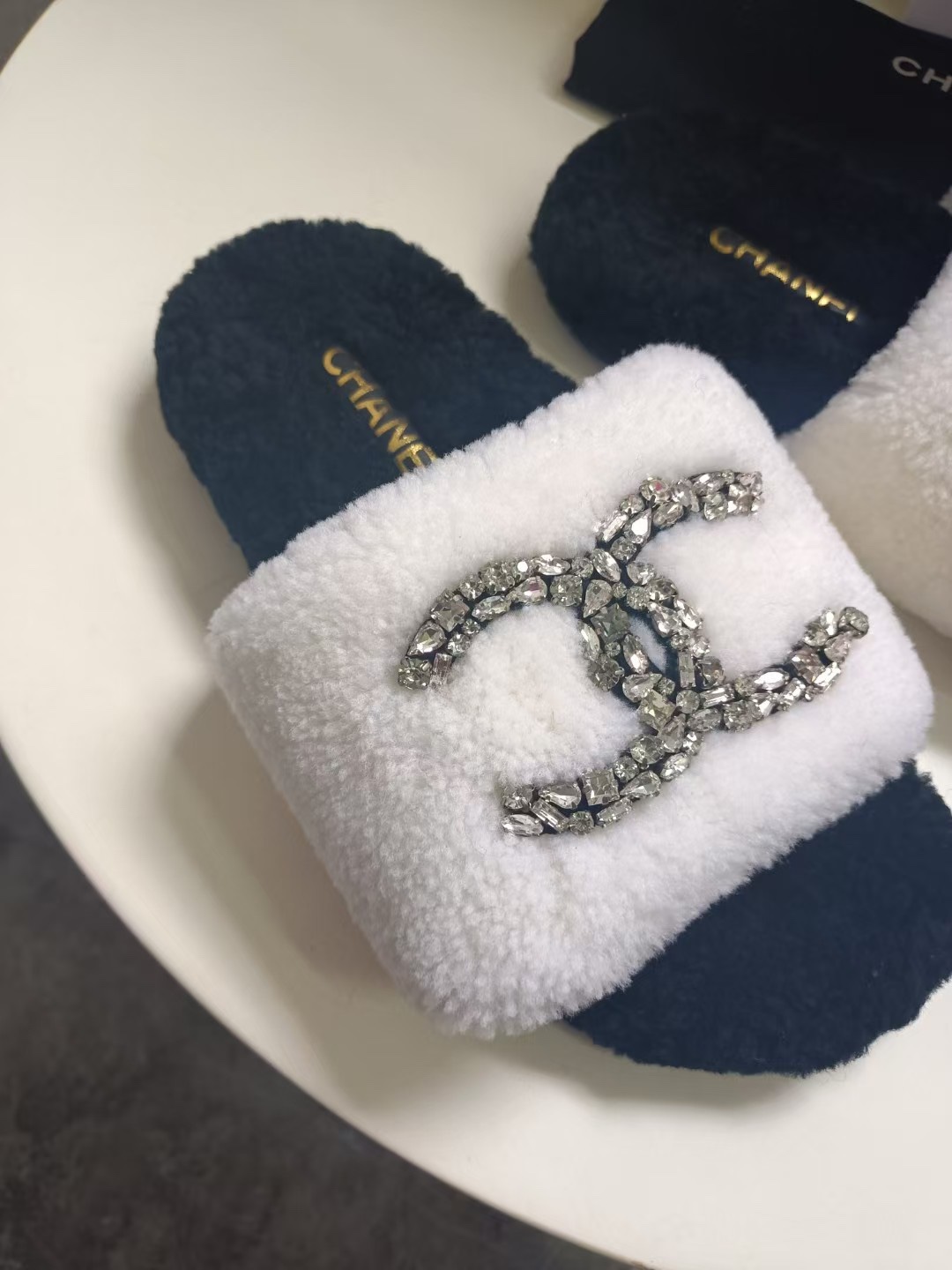 Tags: Chanel Fuzzy Slides, Cozy Warm Slides, Designer Indoor Slippers, Trendy Women's Slides, Women's Fashion Slides
