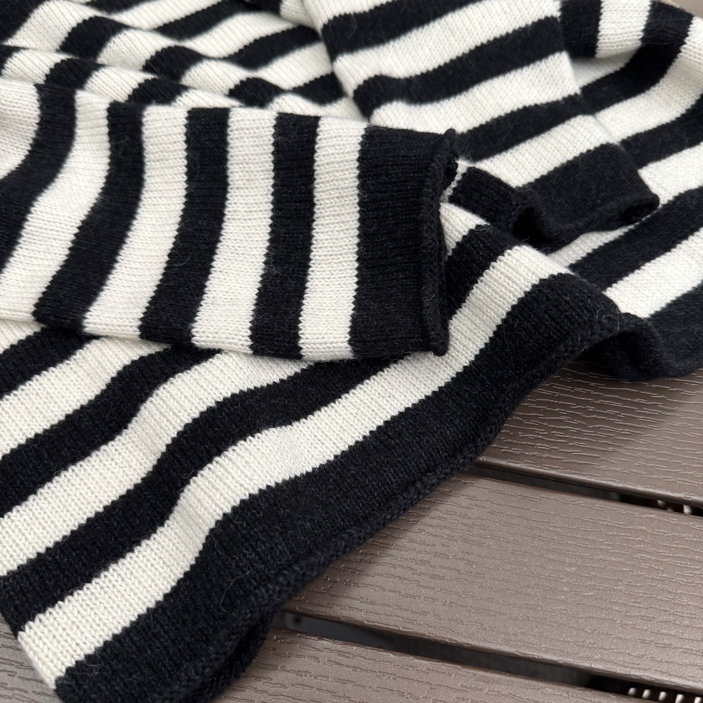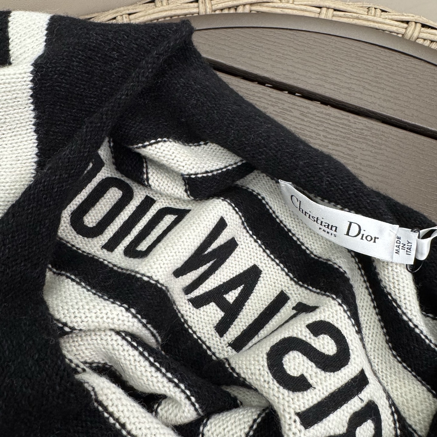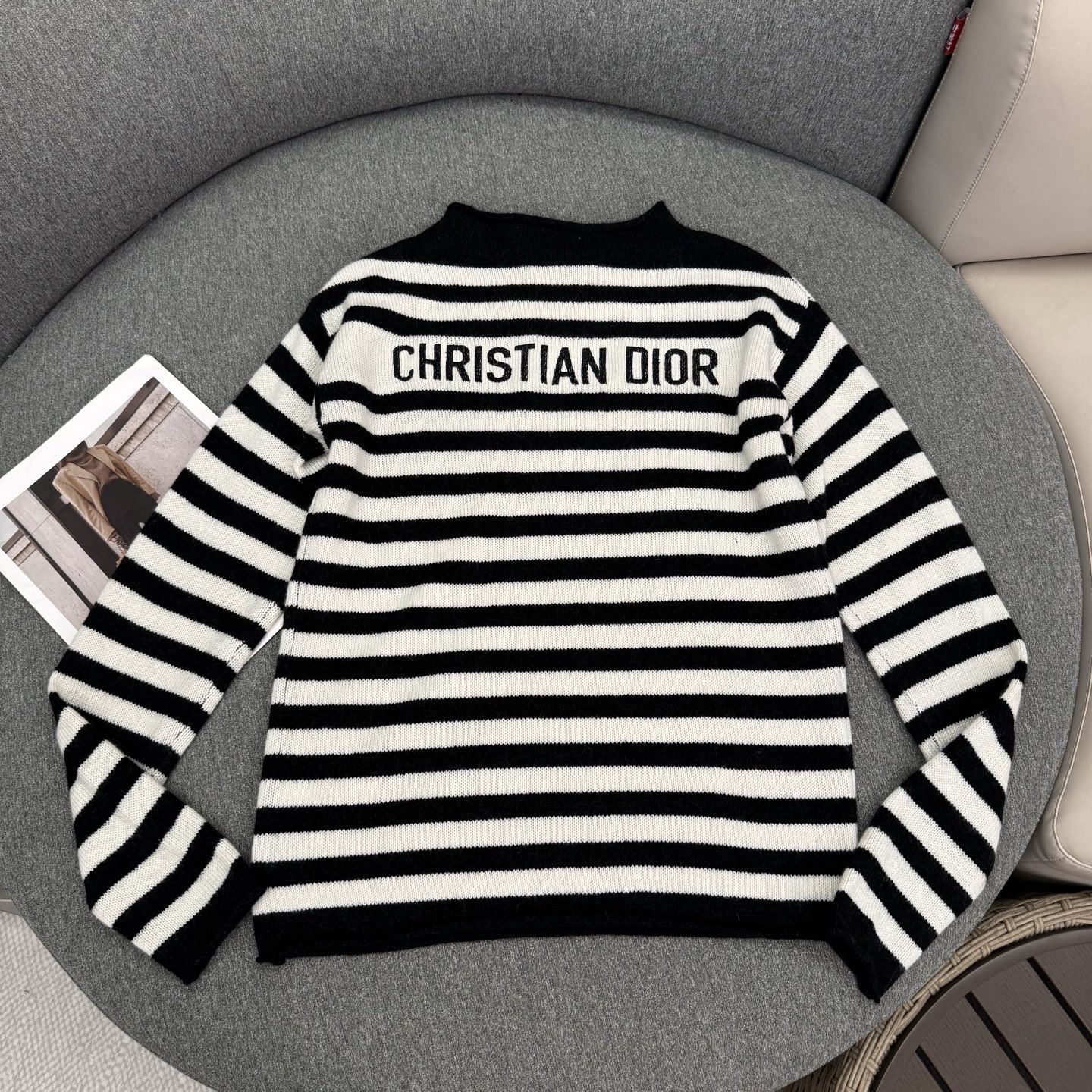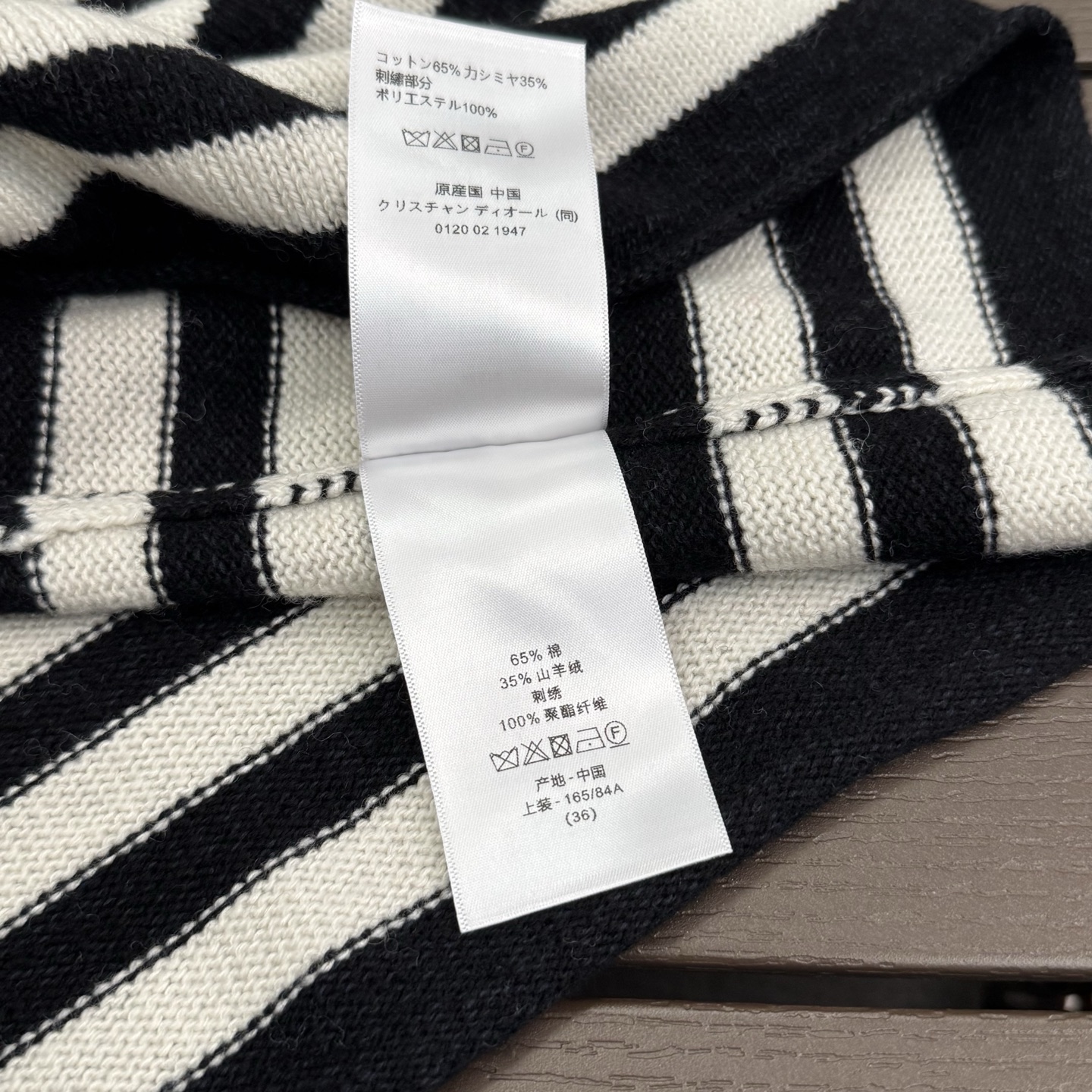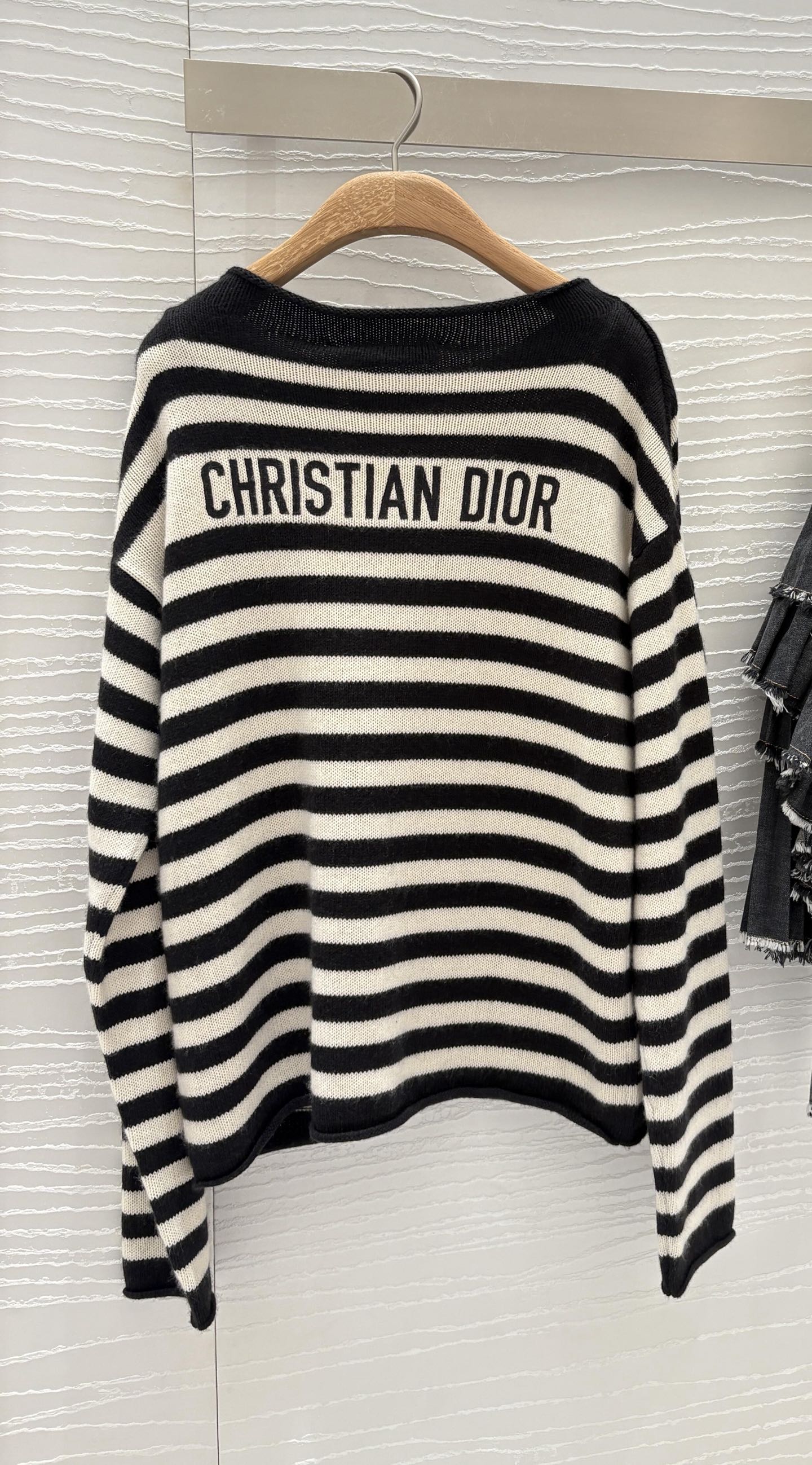 This Dior navy-style striped cashmere sweater is an essential addition to your autumn wardrobe. Its simple yet elegant design makes it incredibly versatile and flattering.