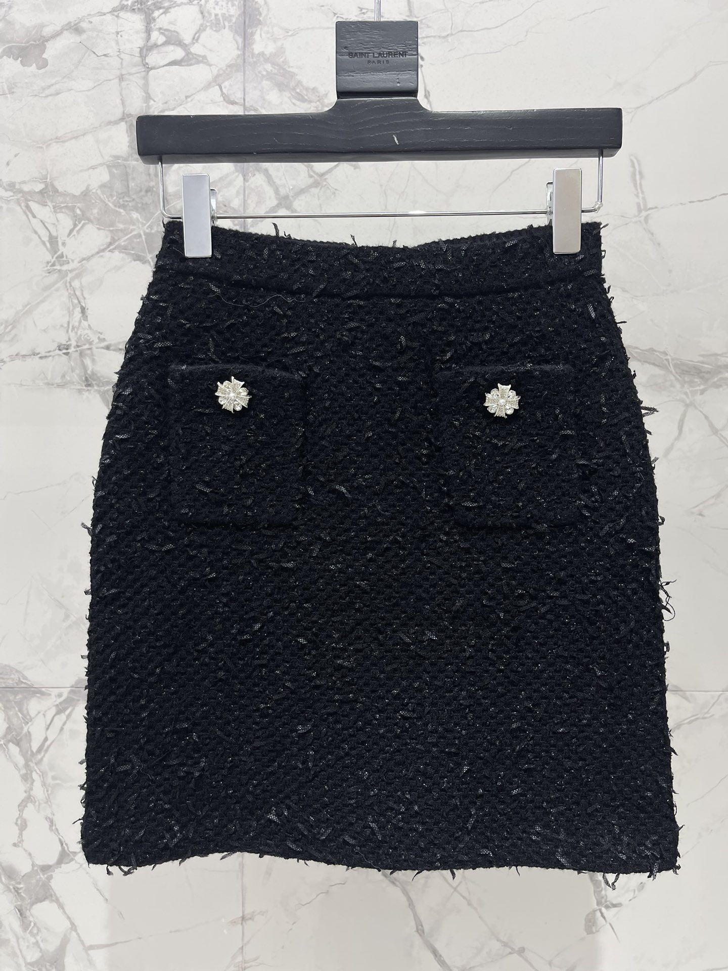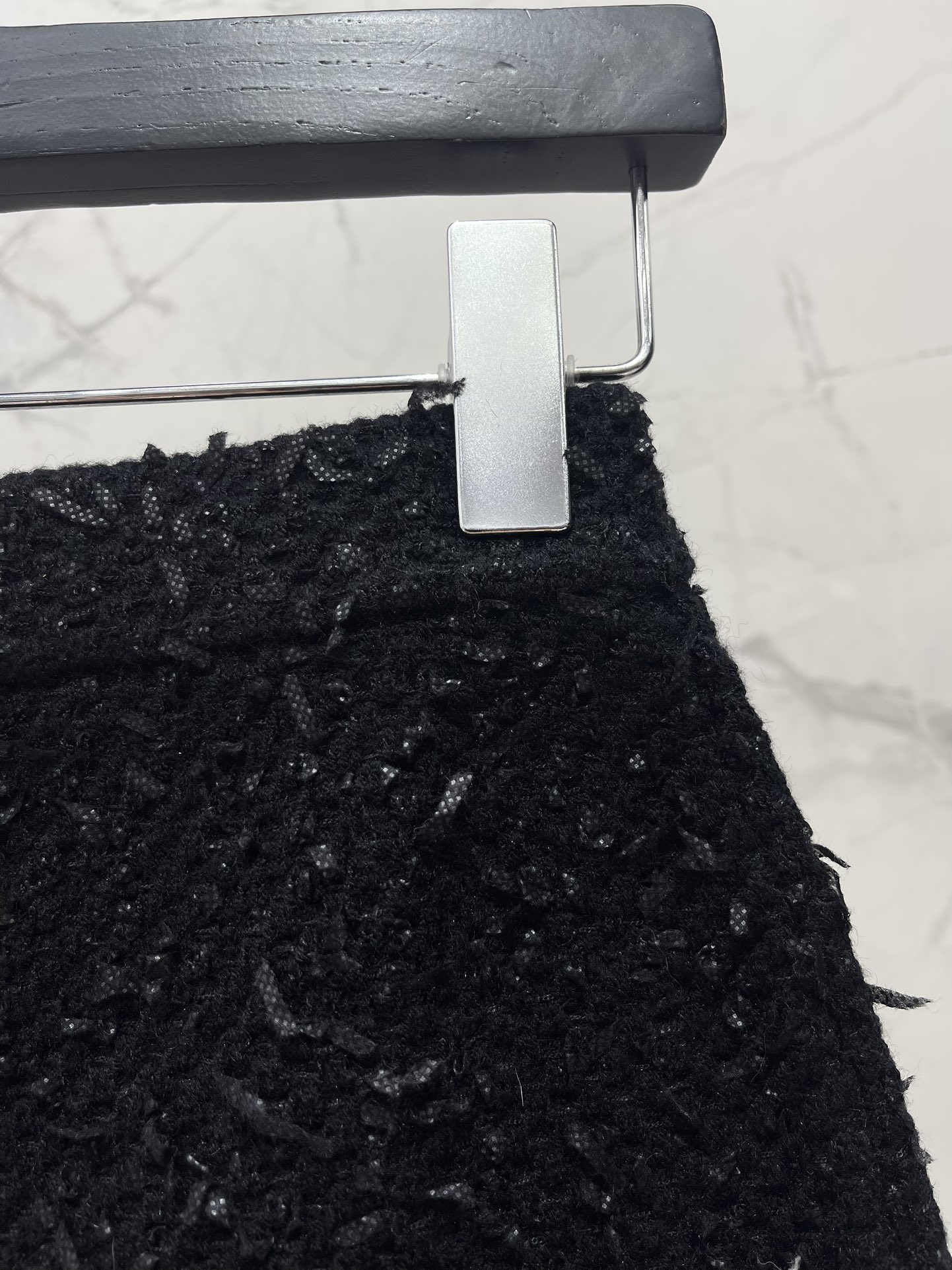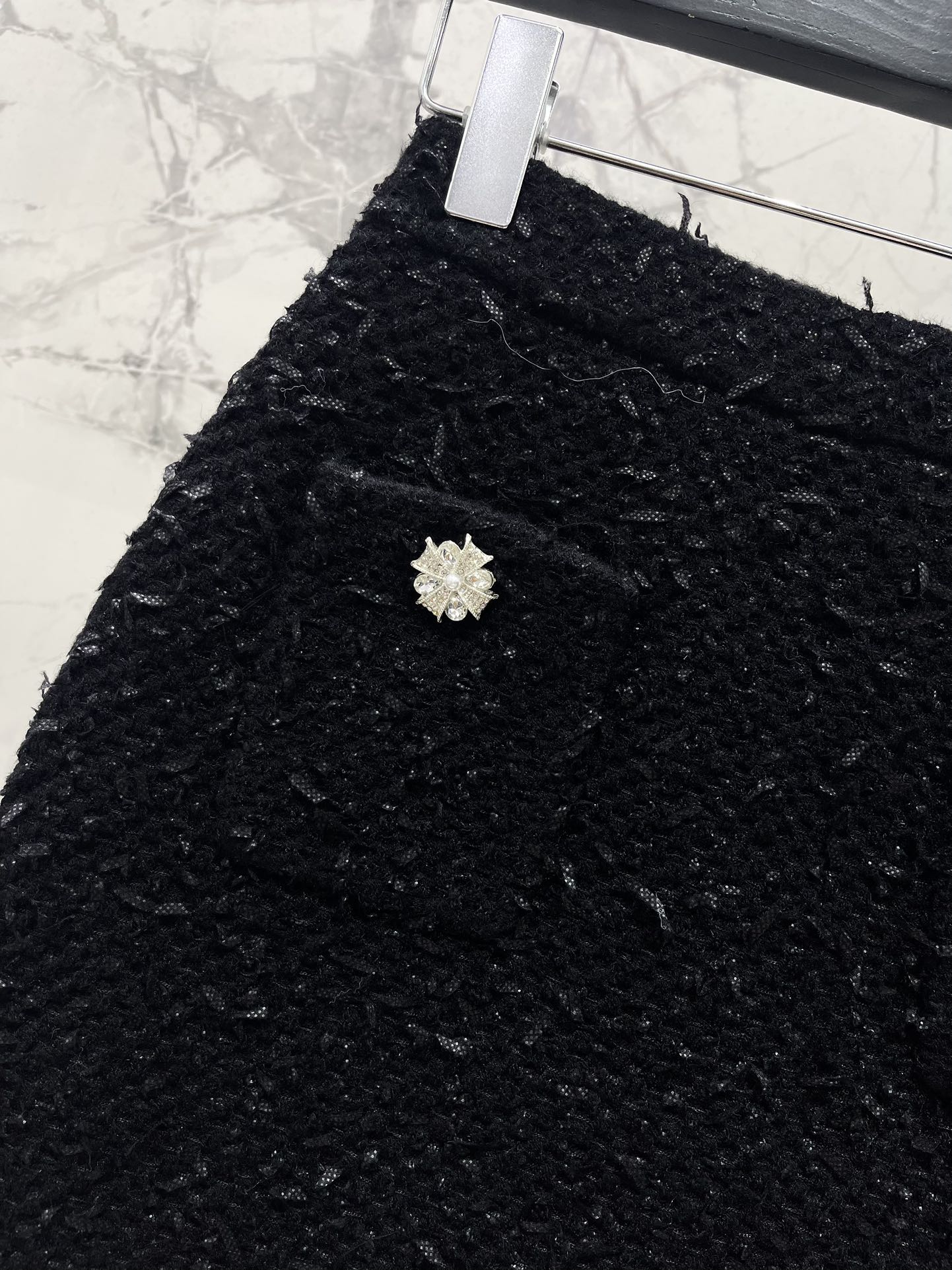 Elegant Black Tweed Mini Skirt with Diamond Embellishments,Stylish and Comfortable
