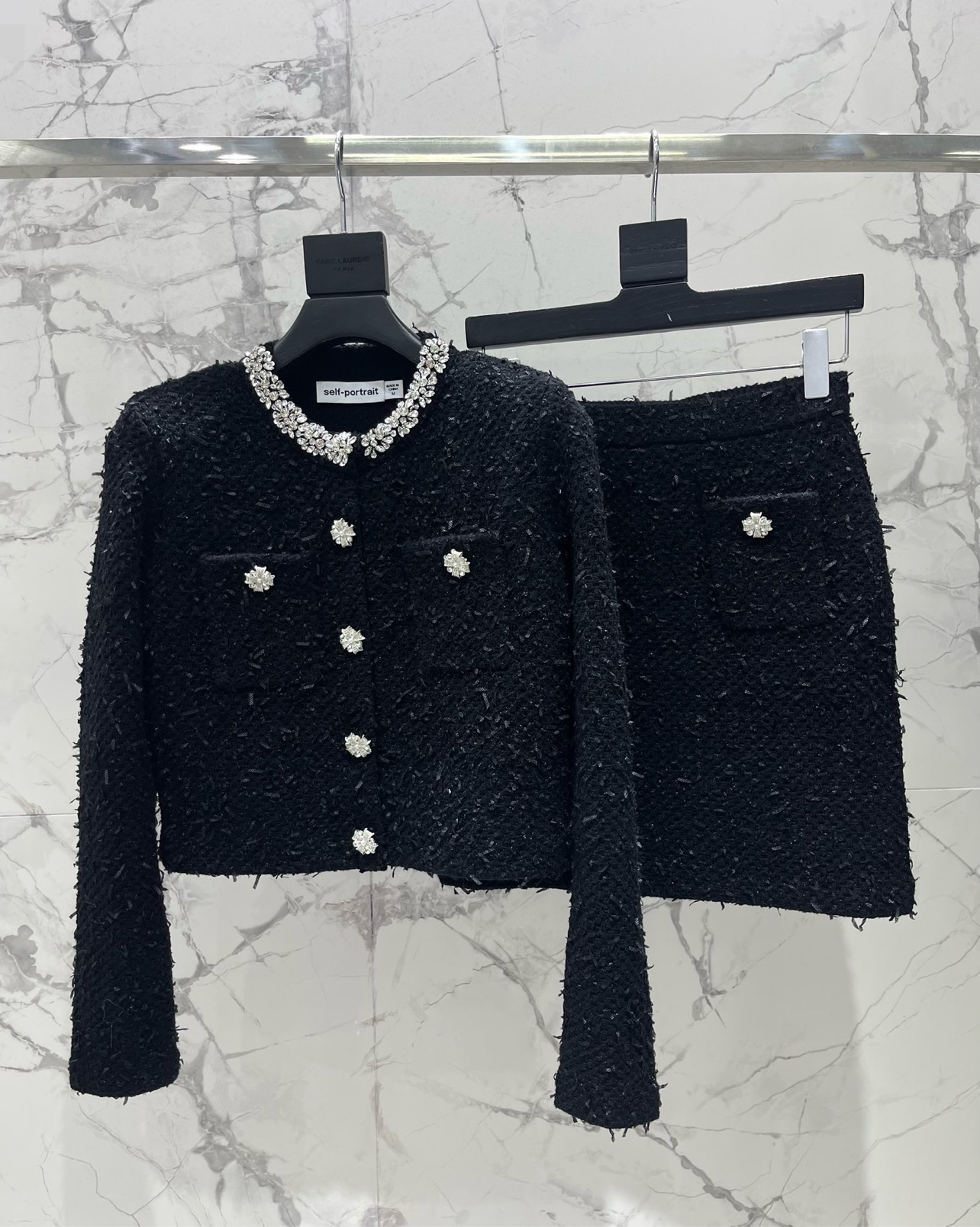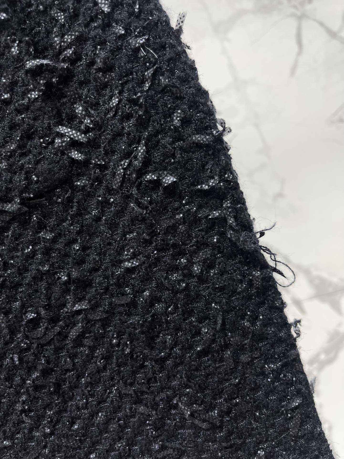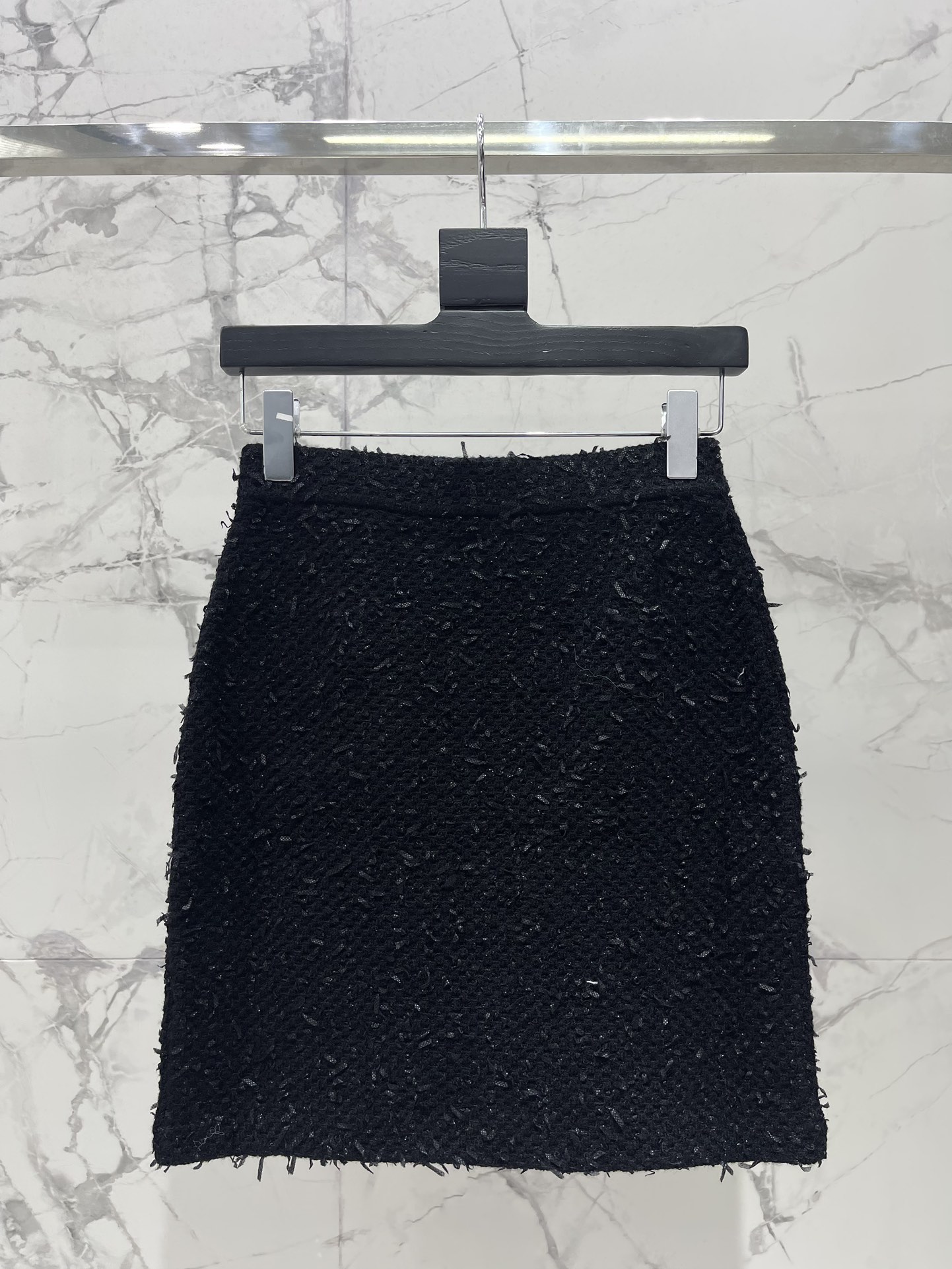Elegant Black Tweed Mini Skirt with Diamond Embellishments,Stylish and Comfortable