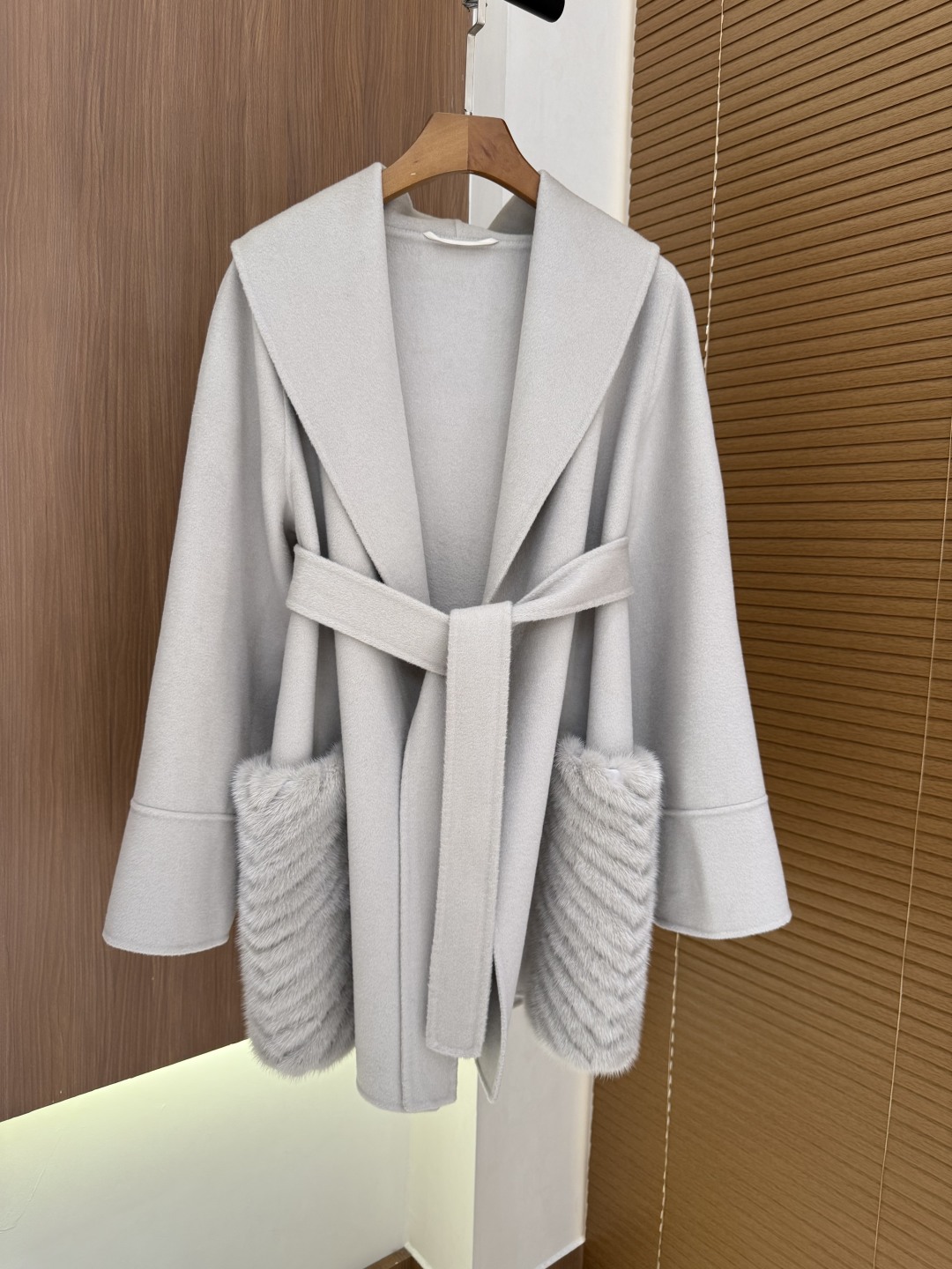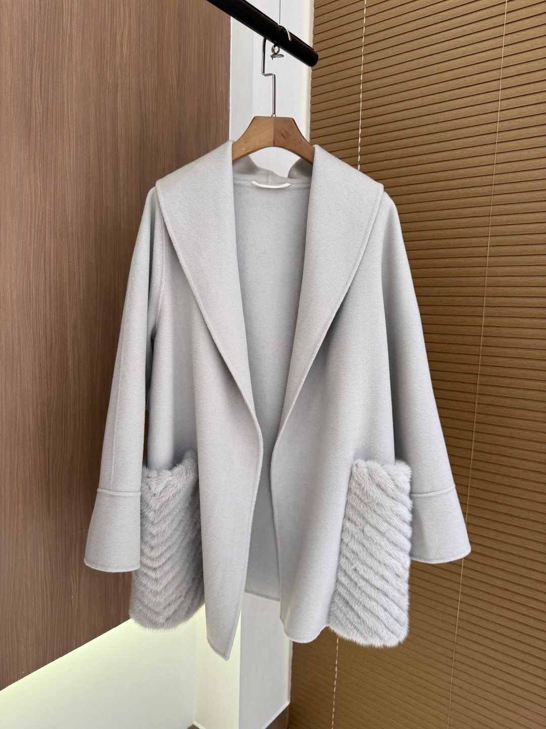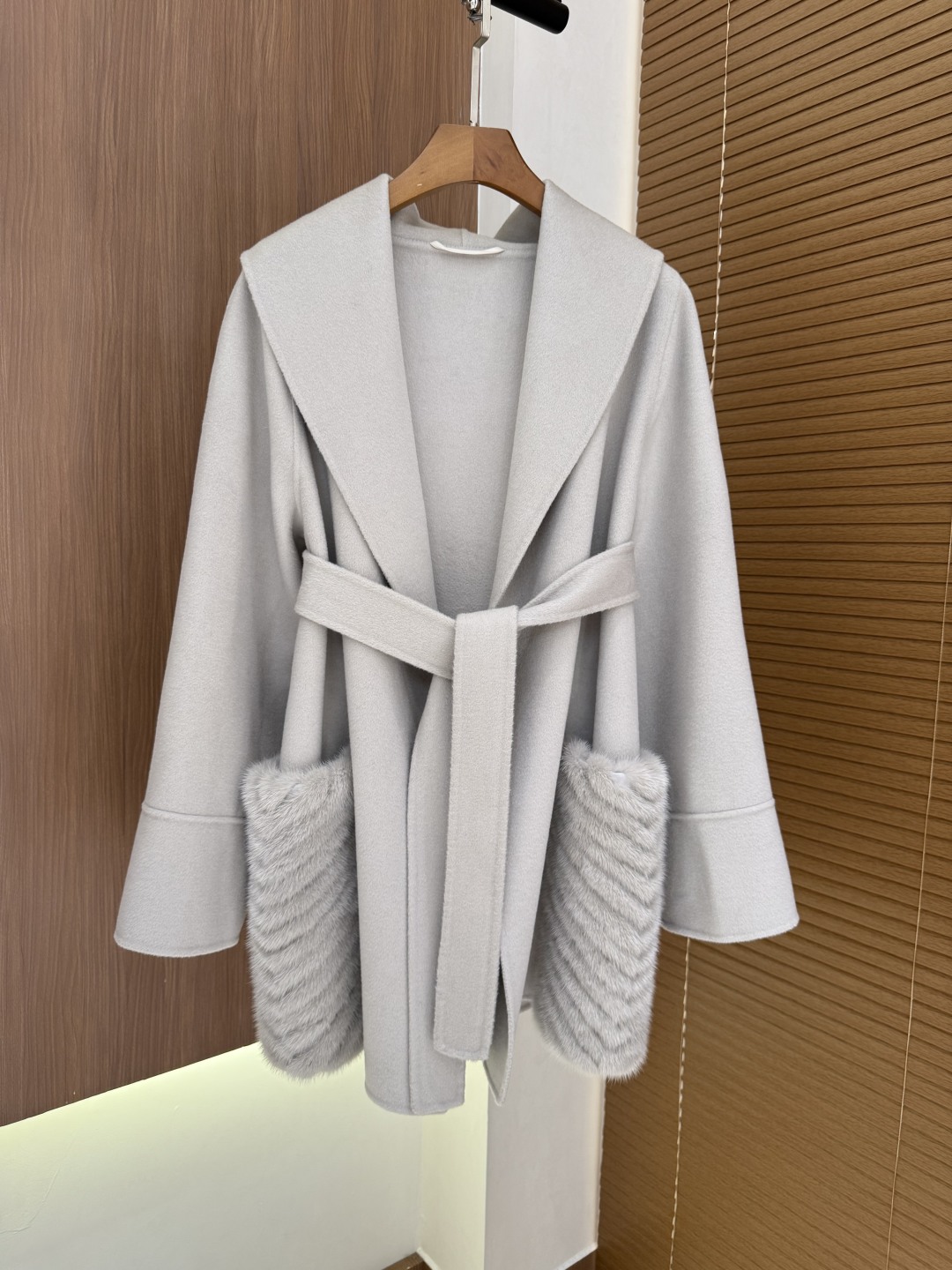 Elegant MaxMara 2025 Fall/Winter Cashmere Coat with Fur Accents