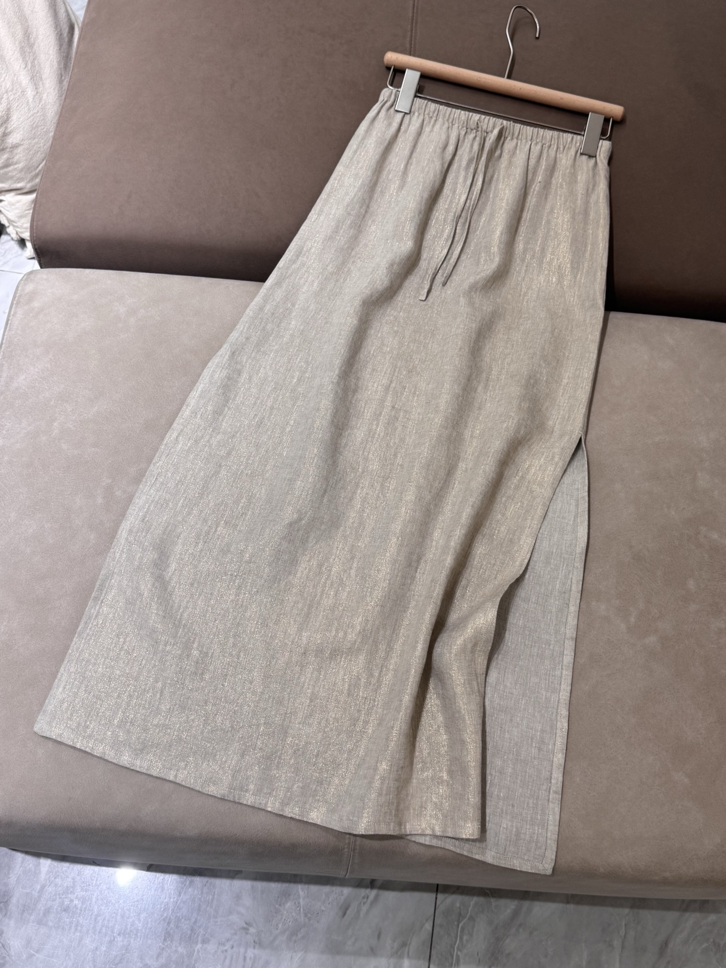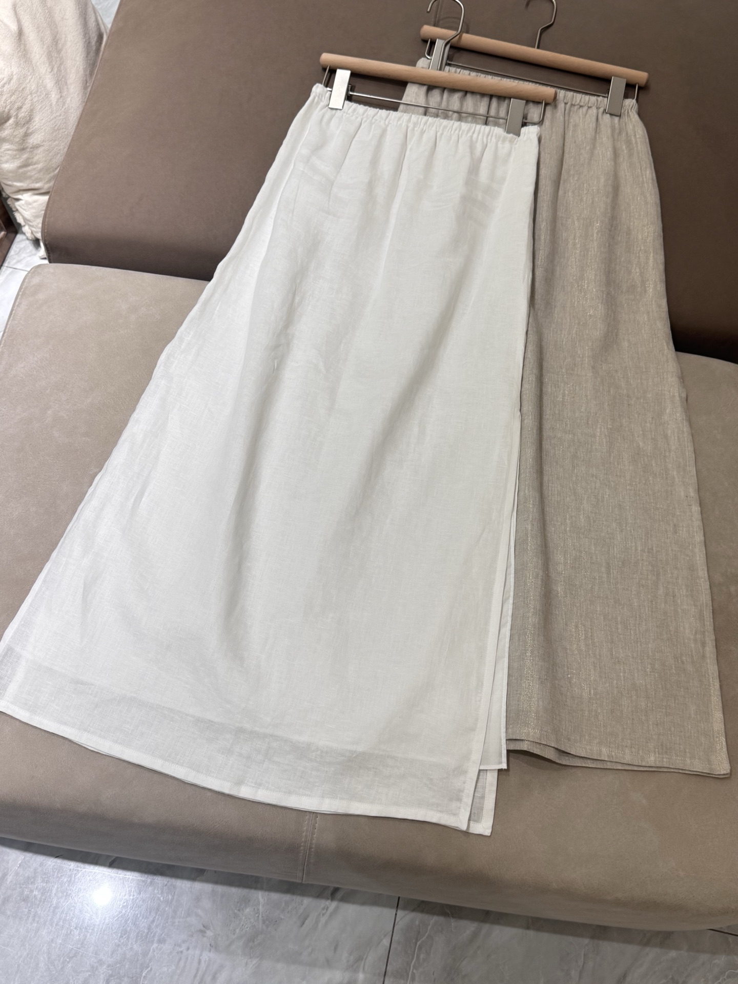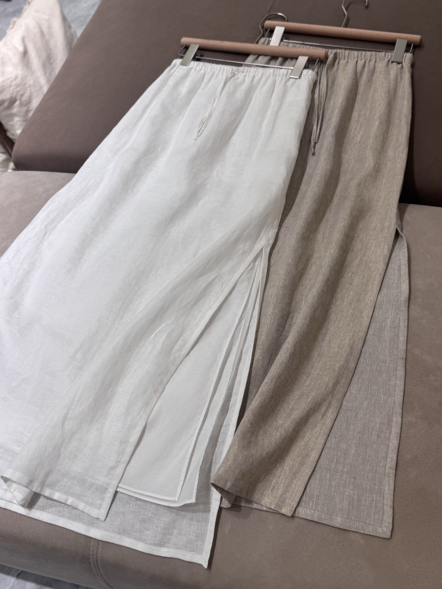 Tags: Casual Skirt, High Waist Skirt, Linen Blend Skirt, Side Slit Skirt, Summer Skirt, Women's Skirt