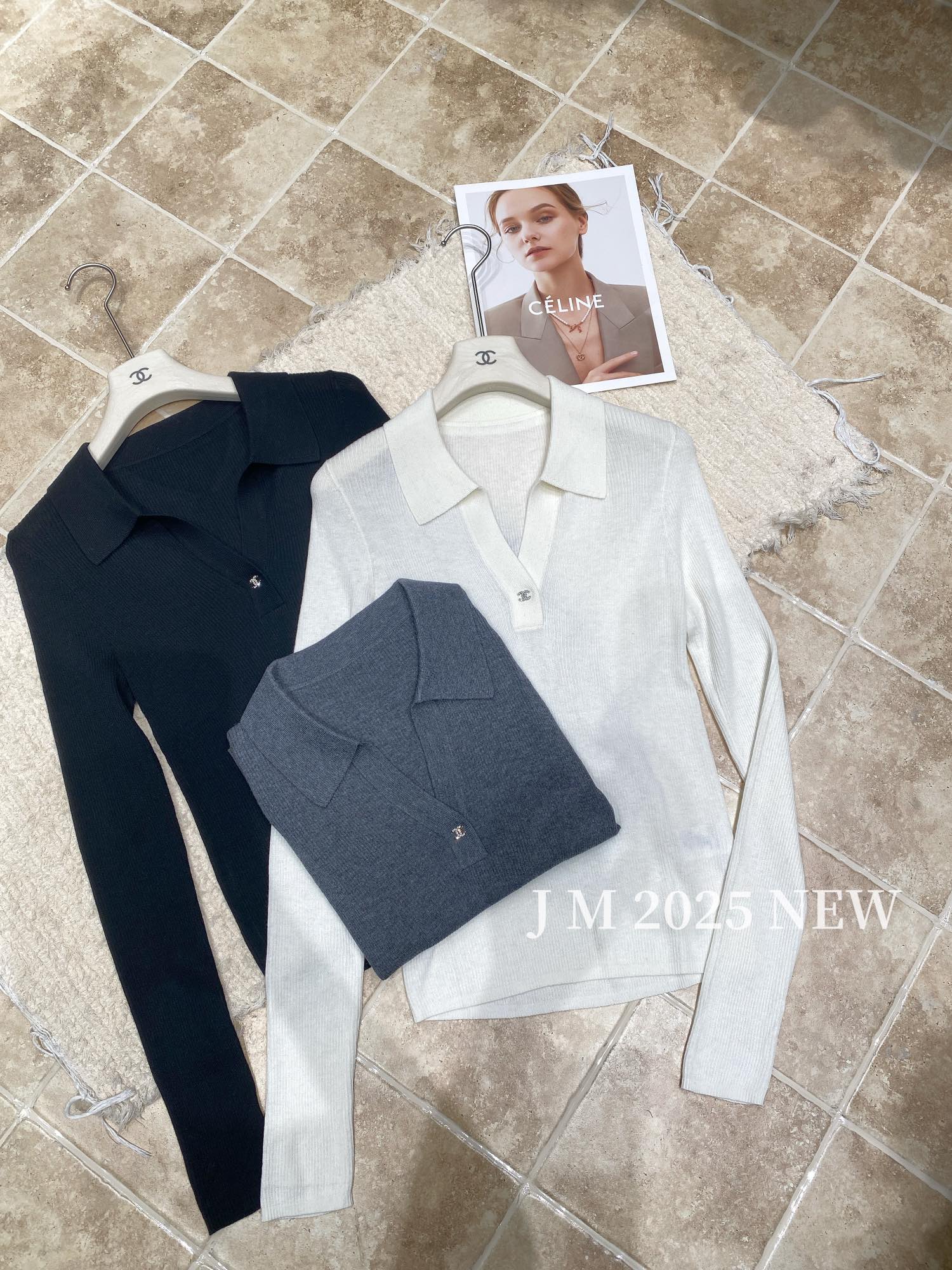 Tags: Fashion Polo Top, Knitted Polo Shirt, Lightweight Knit Top, Long Sleeve Polo Shirt, Soft Knit Polo, Women's Polo Shirt