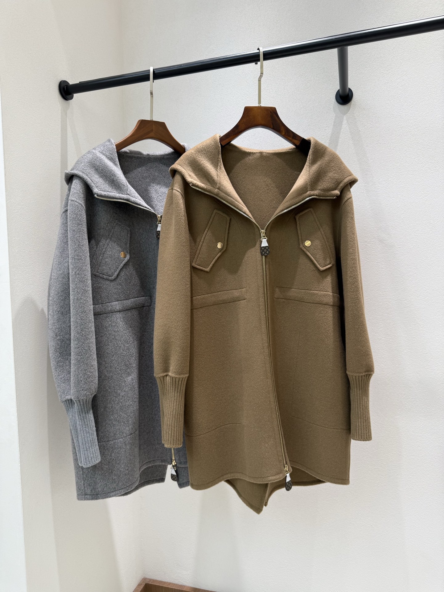 Elegant Wool-Blend Hooded Coat - Stylish and Warm Outerwear