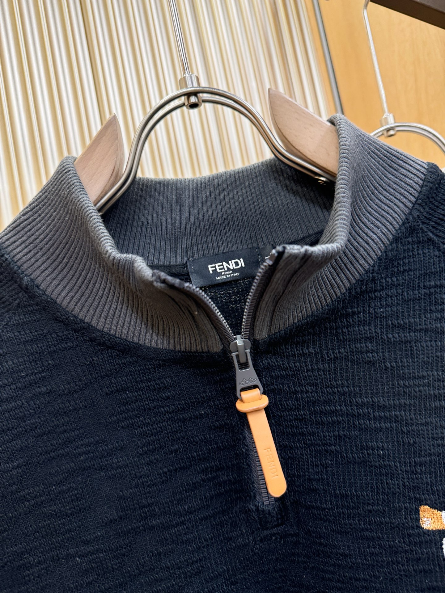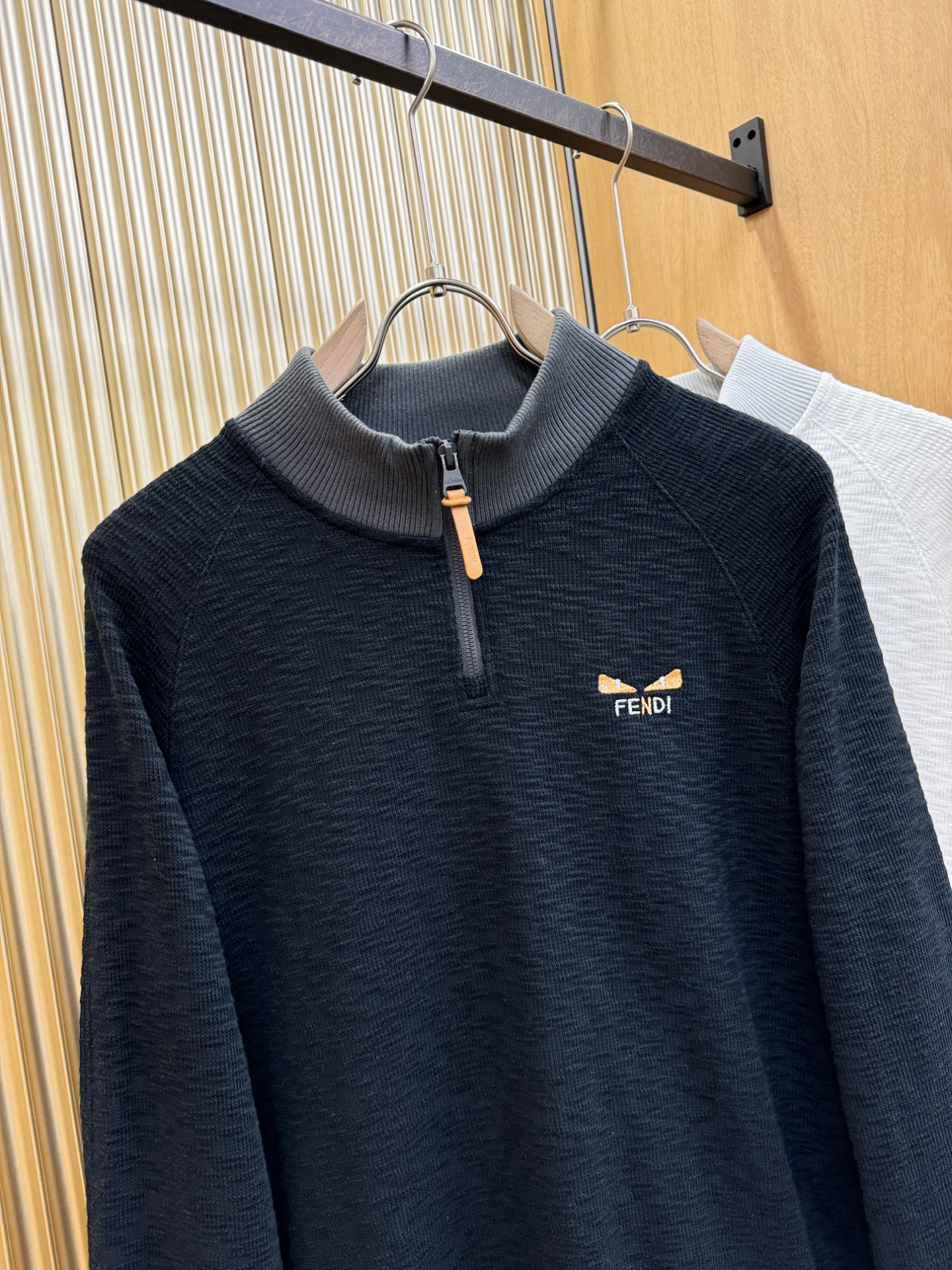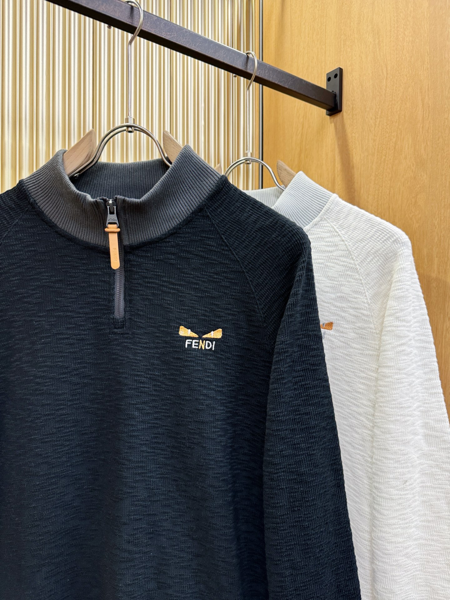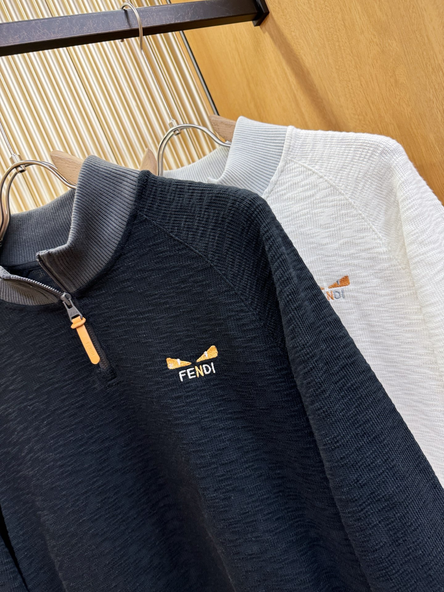 This Fendi long-sleeve top is a versatile addition to any man's wardrobe, offering a blend of comfort and high-end style. With its iconic logo and premium materials, it represents the pinnacle of casual luxury.