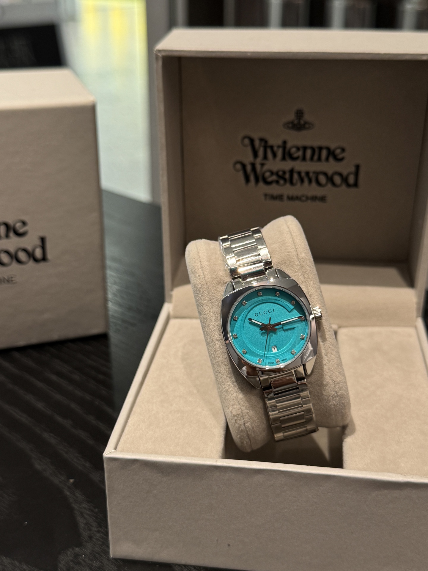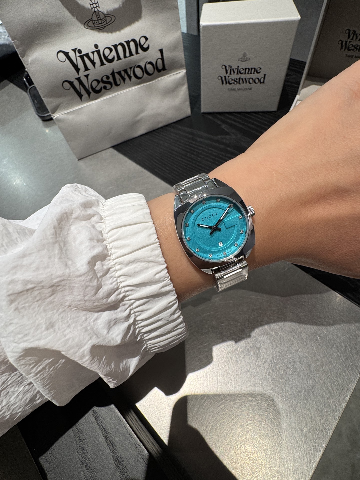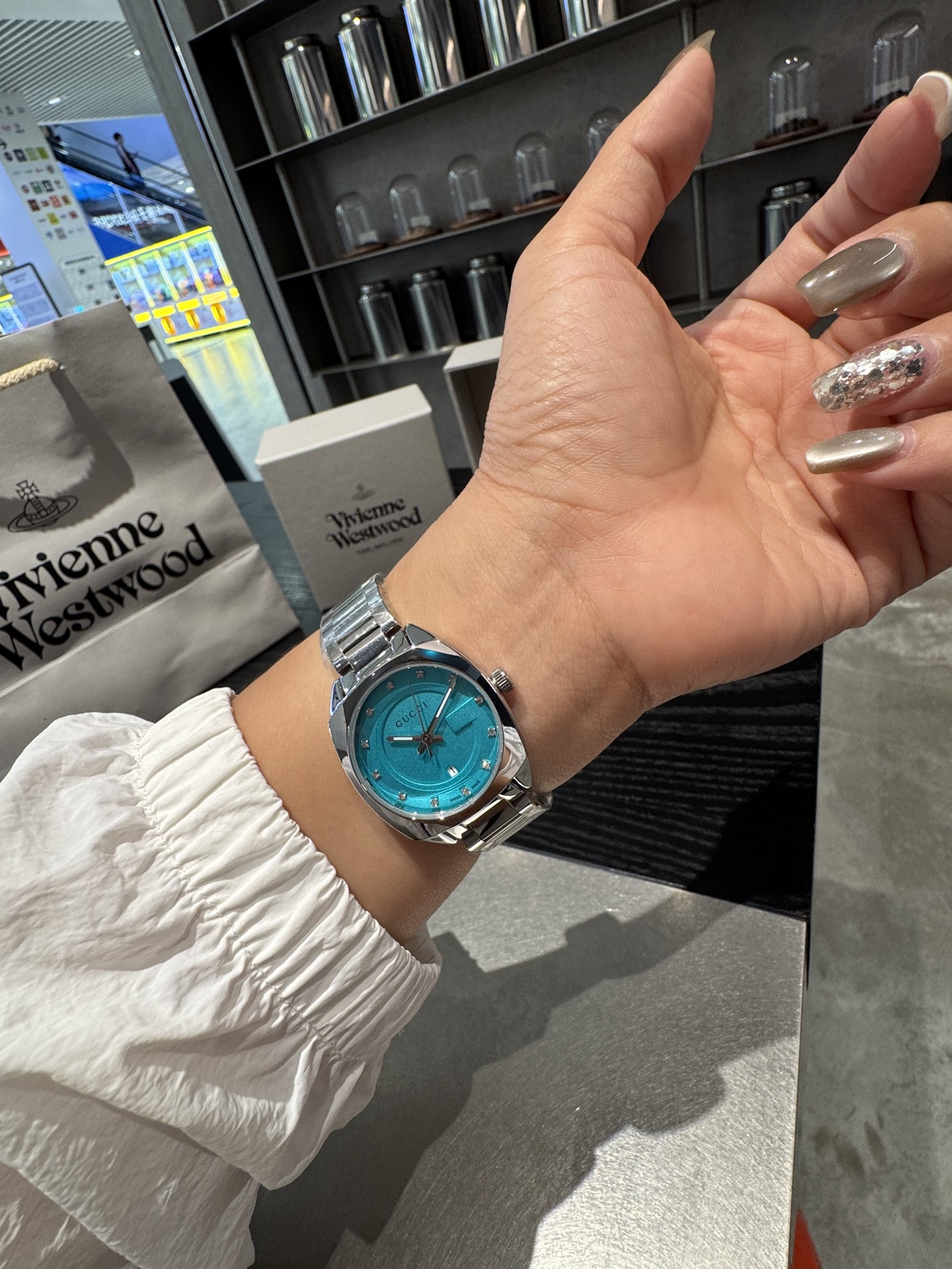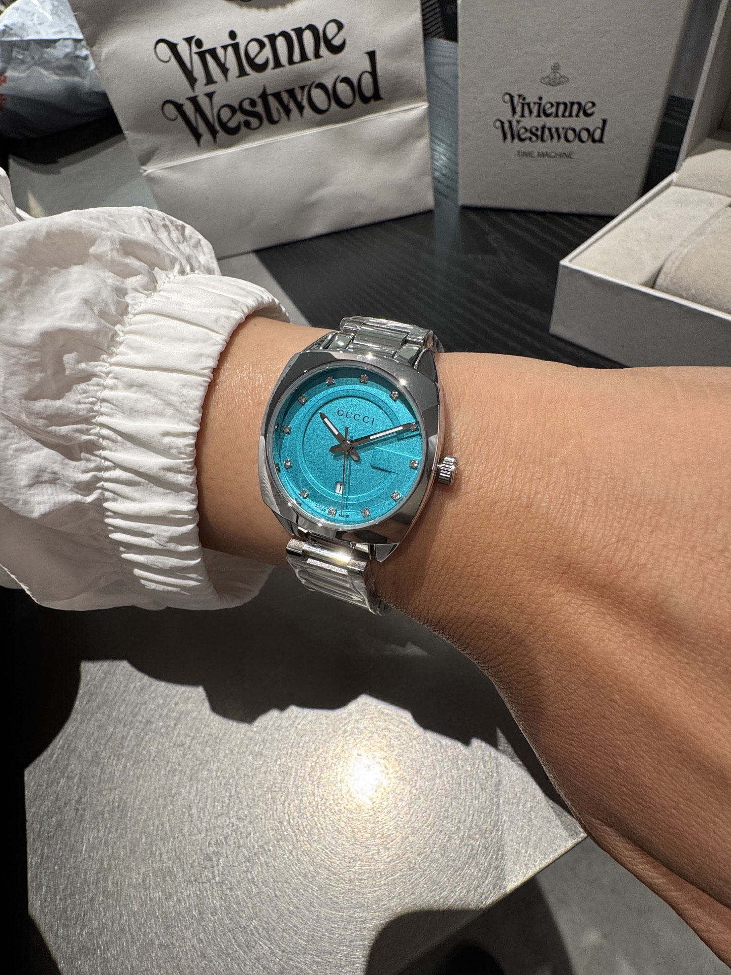 Tags: 29mm Watch, Diamond Dial Watch, Gucci Interlocking Watch, Ladies Stainless Steel Watch, Turquoise Dial Watch