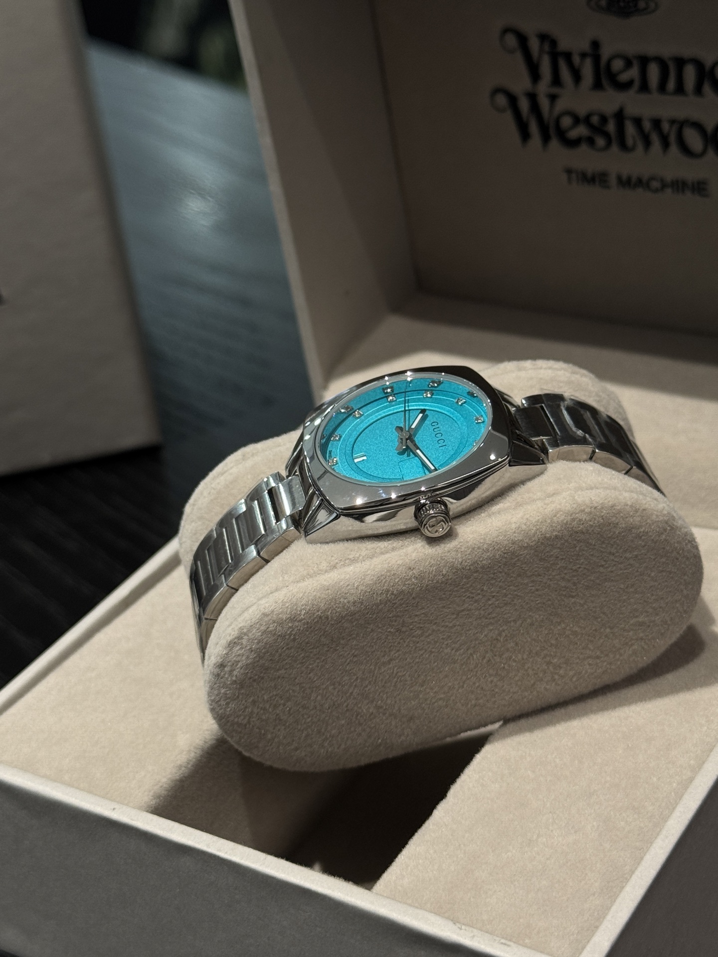 The Gucci Interlocking watch is a dazzling accessory that combines classic style with modern flair. It's a timepiece that truly stands out.