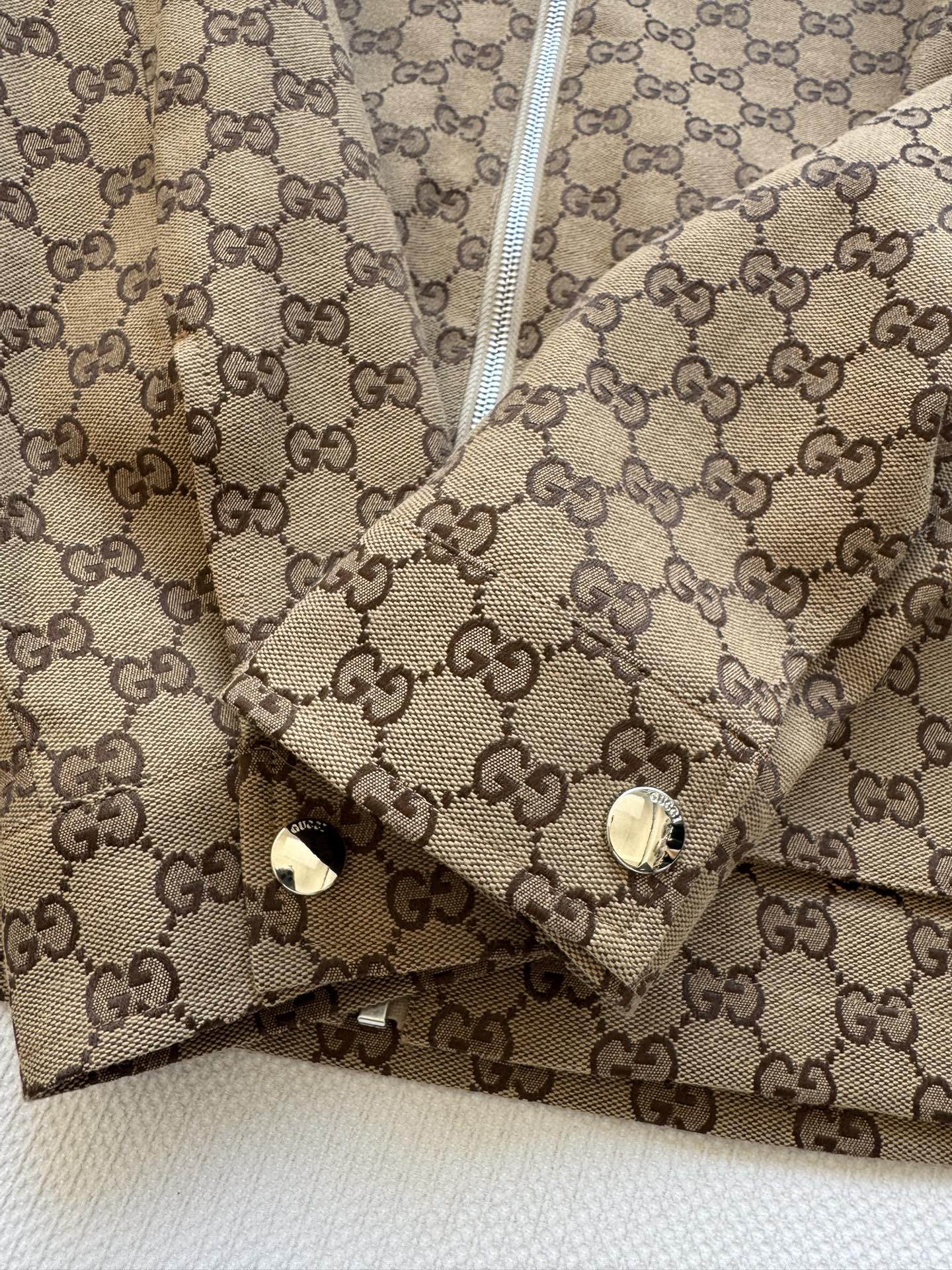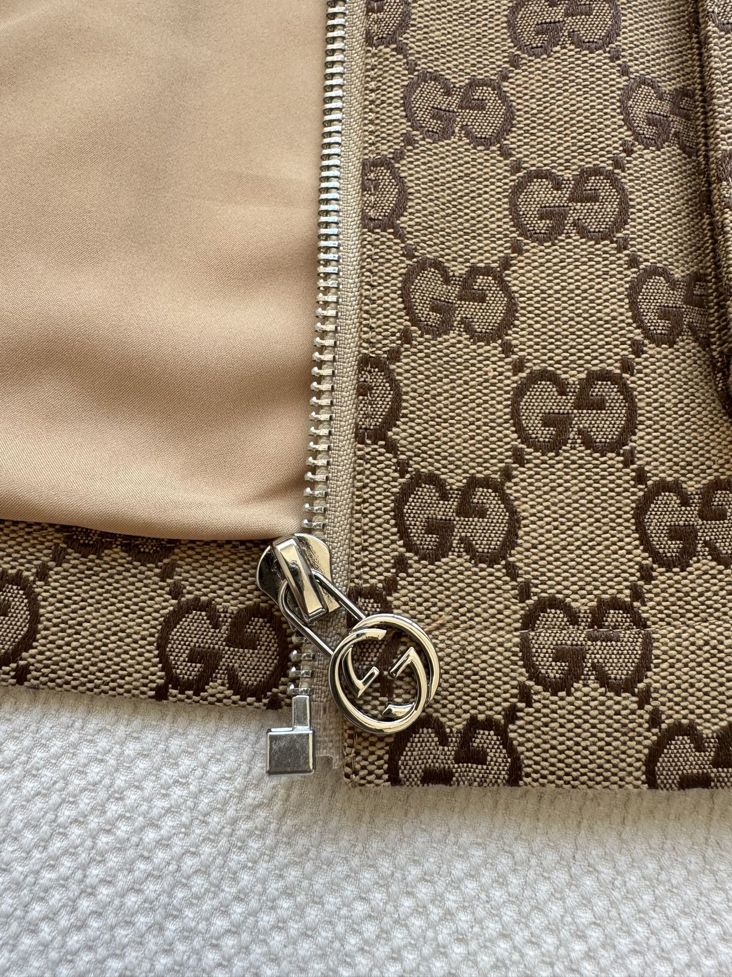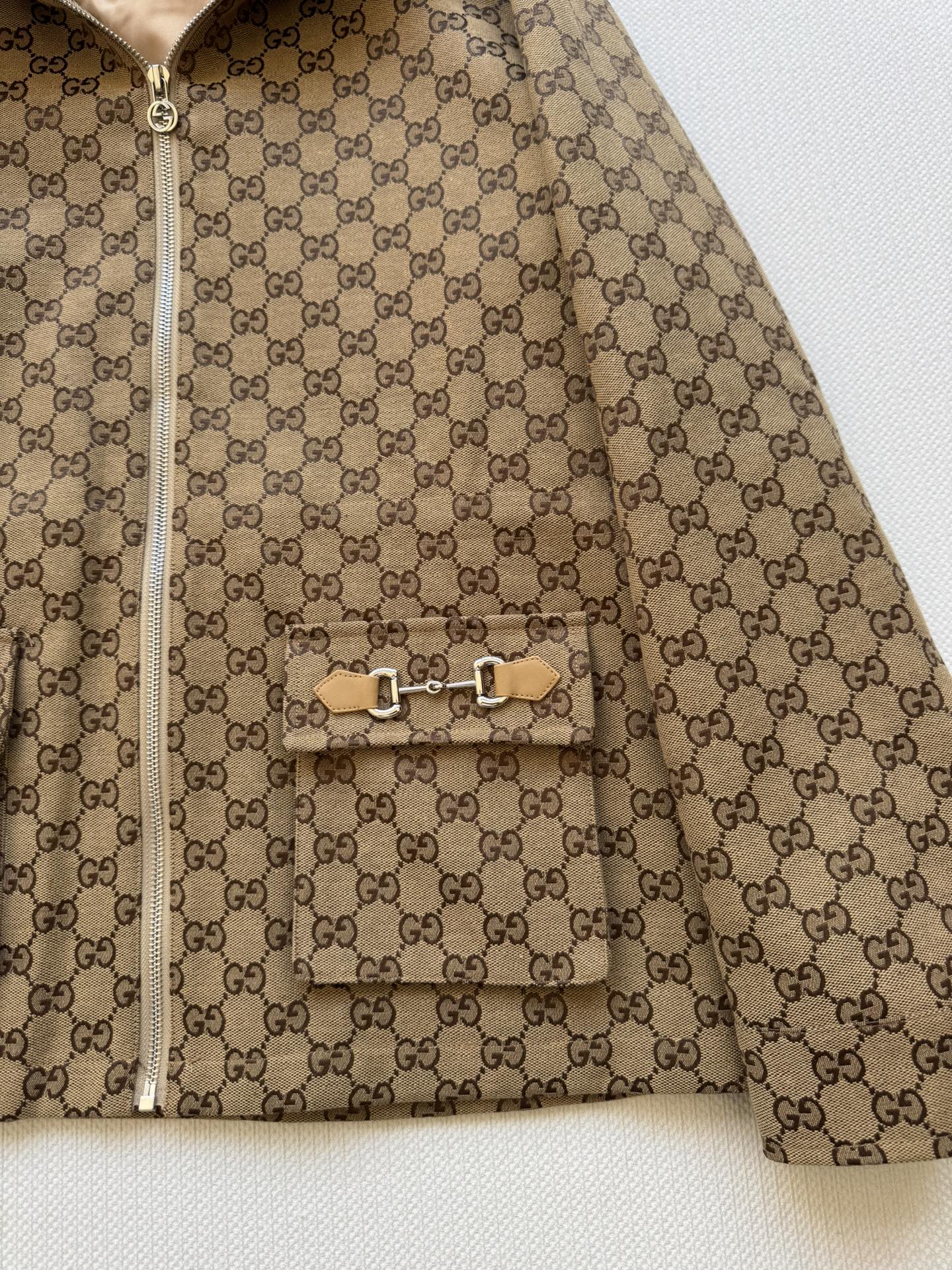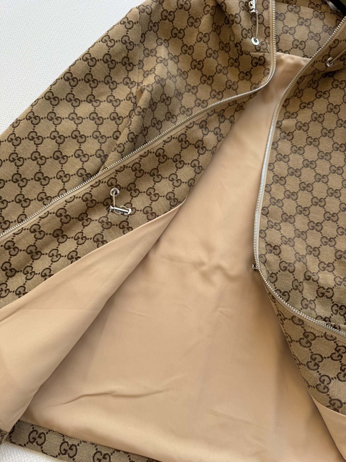 This Gucci monogram hooded jacket is a versatile and stylish addition to any wardrobe. Combining luxury craftsmanship with a comfortable design, this piece is perfect for those who appreciate high-end fashion.
