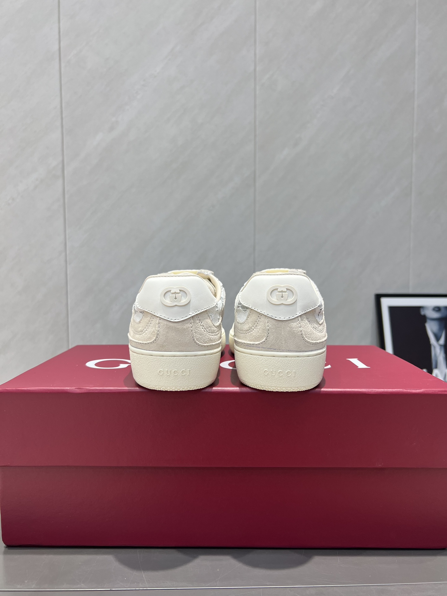 Gucci Women's GG Lace Sneakers Off-White Leather Trim Casual Shoes