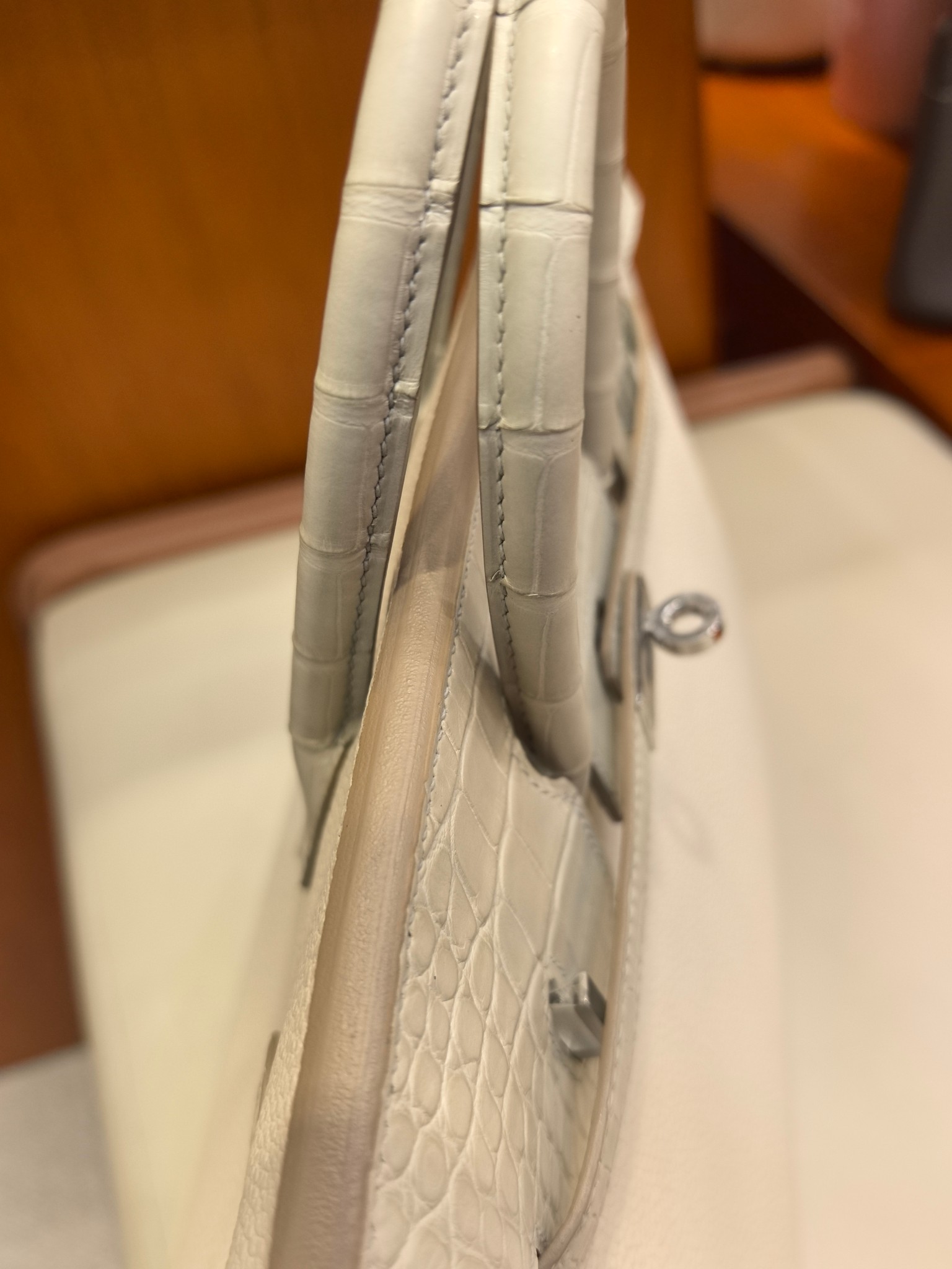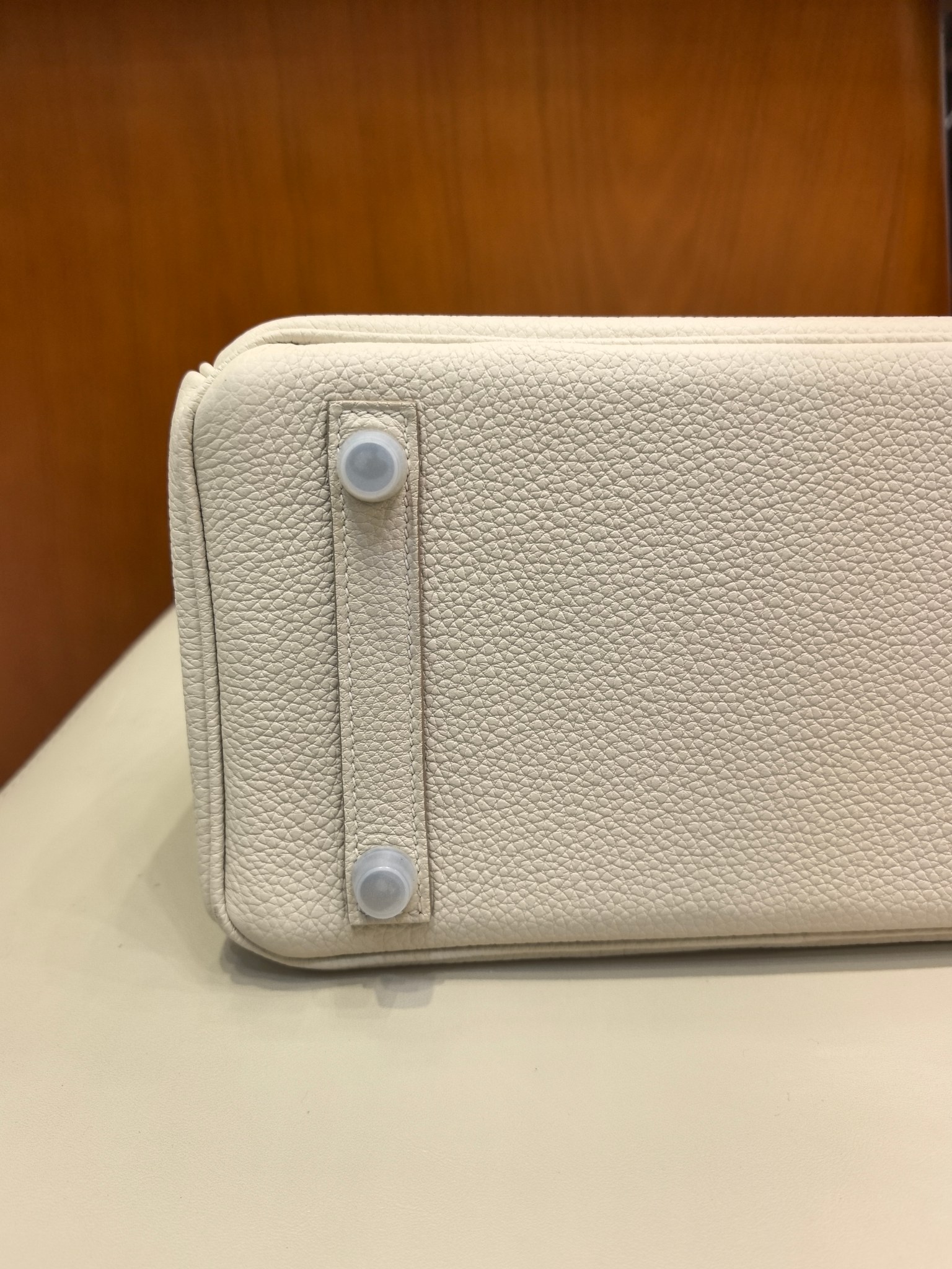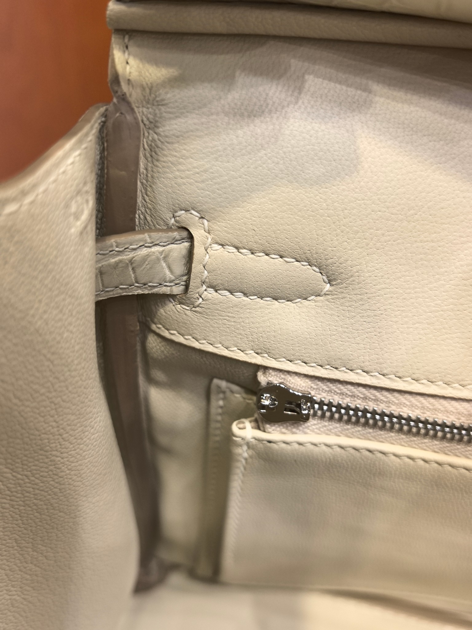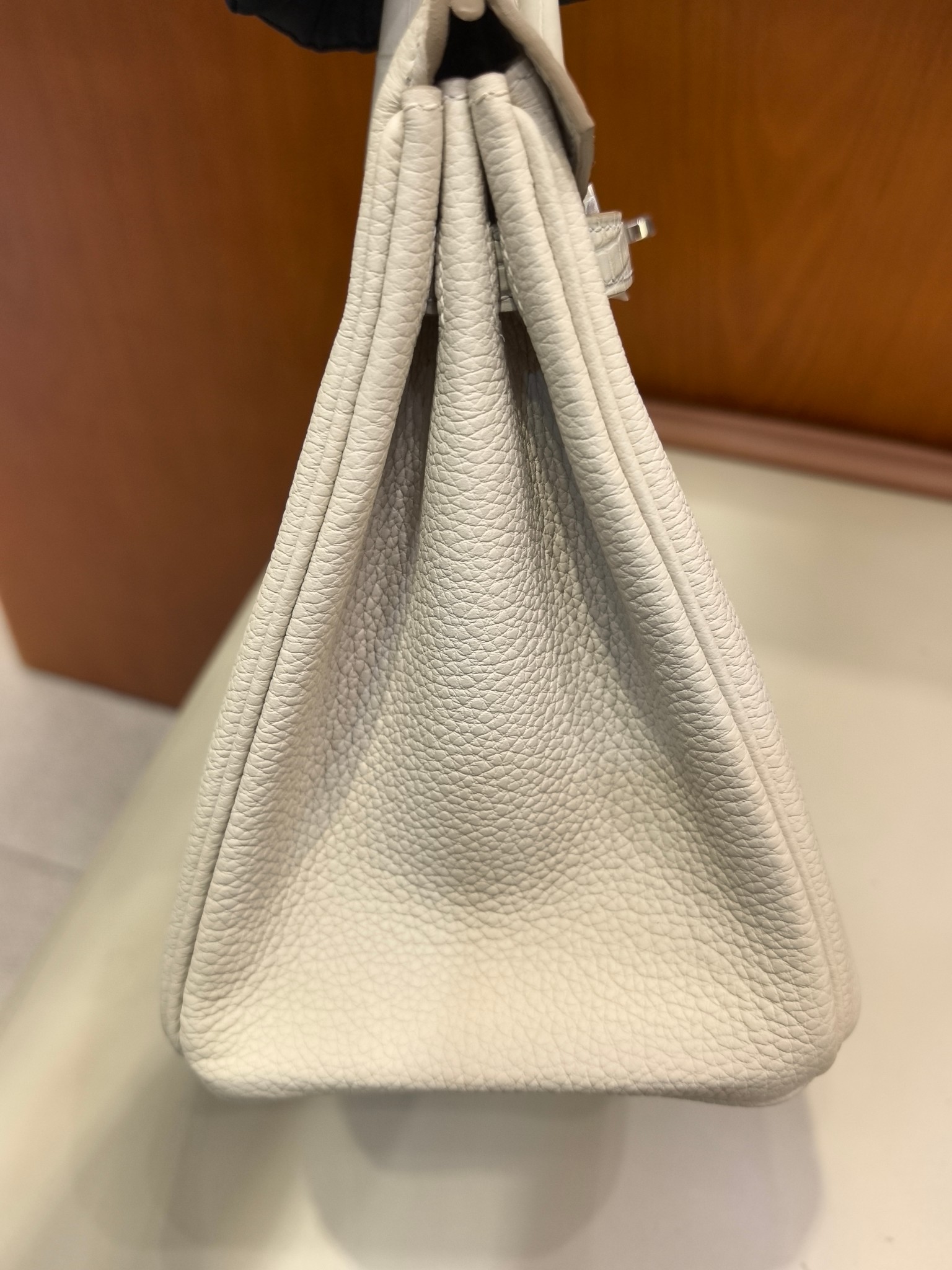 Tags: Alligator Leather Bag, Hermès Birkin 25, Luxury Designer Bag, Silver Hardware Bag, Togo Calfskin Handbag, White Leather Birkin