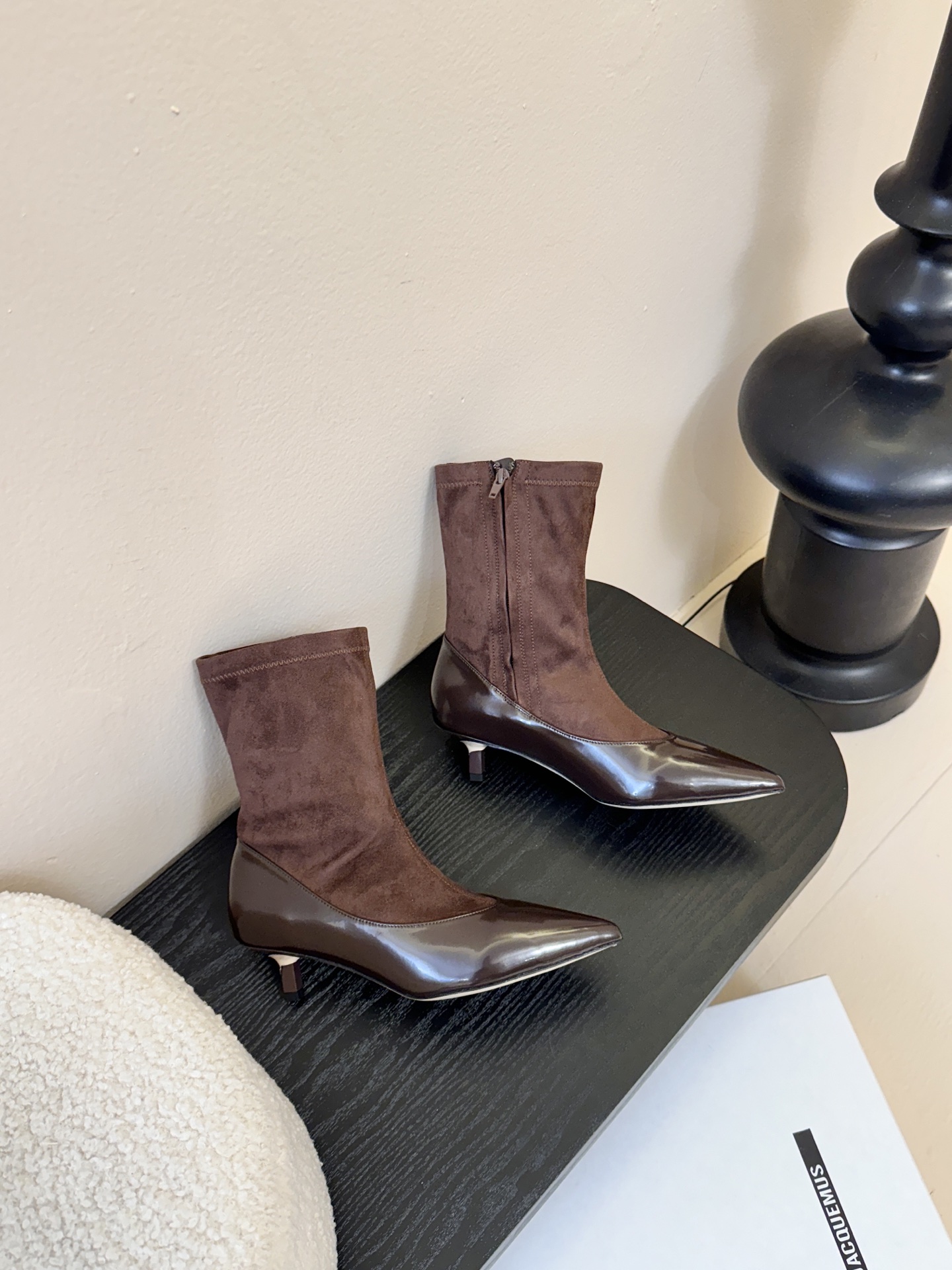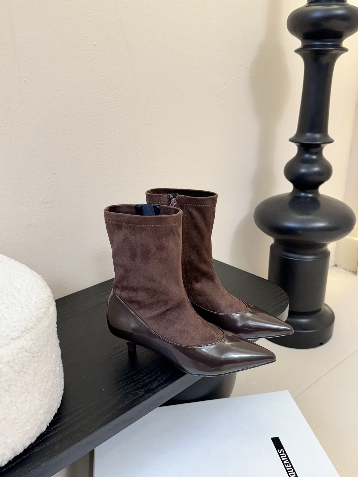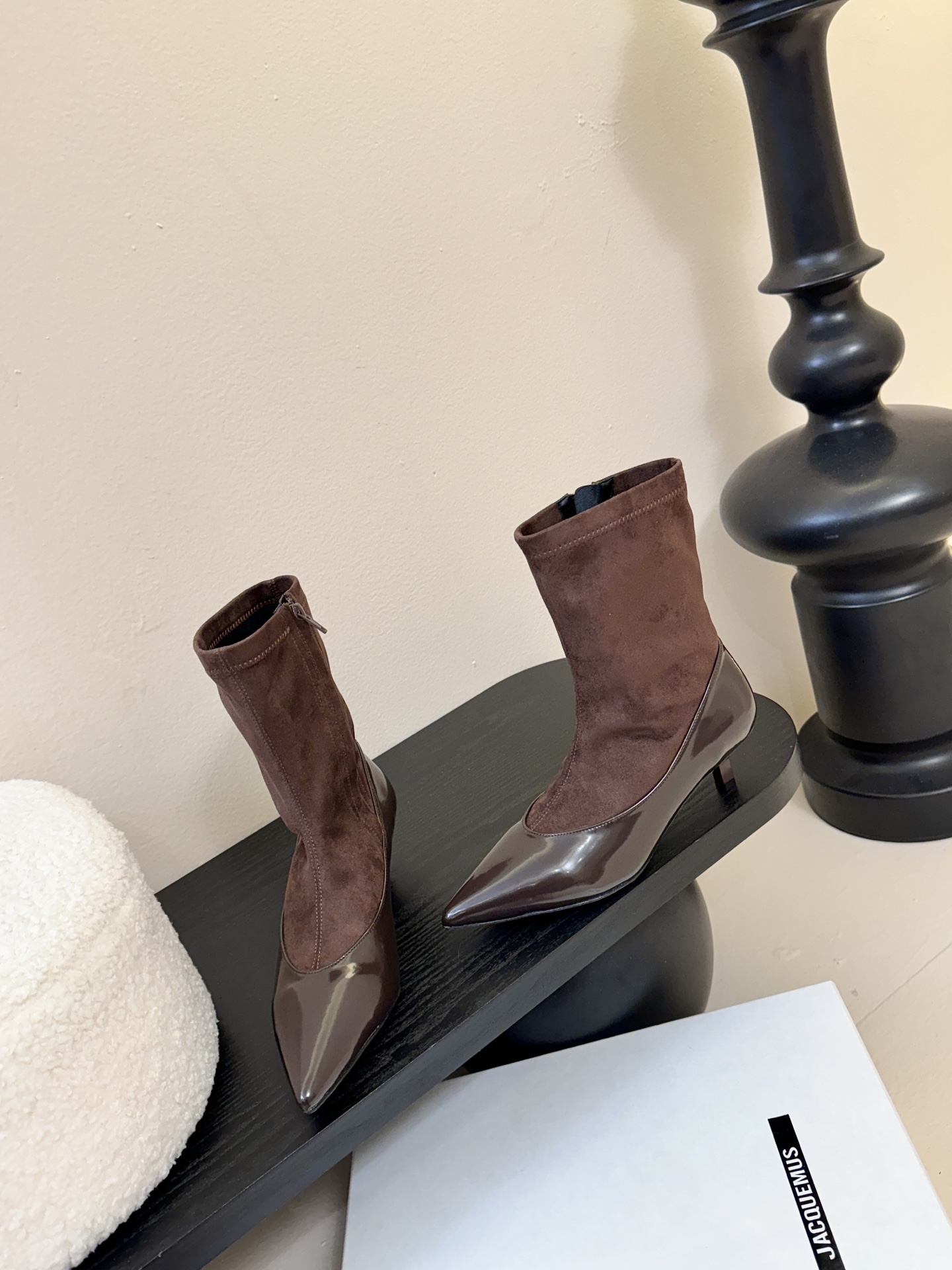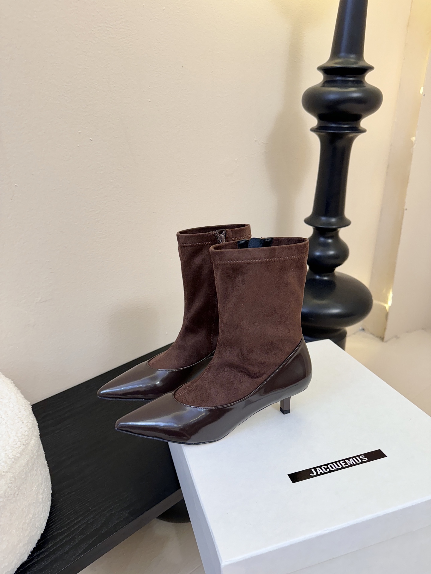 Jacquemus Women's Ankle Boots Pointed Toe Stiletto Heel Genuine Leather Brown