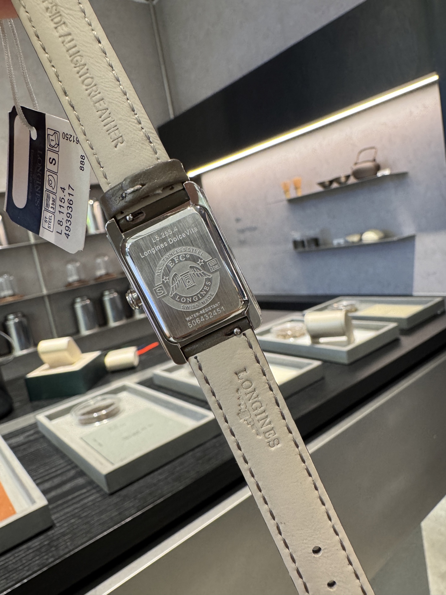 Tags: Elegant Women's Watch, Ladies Leather Strap Watch, Longines DolceVita Watch, Longines Swiss Watch, Stainless Steel Watch Women