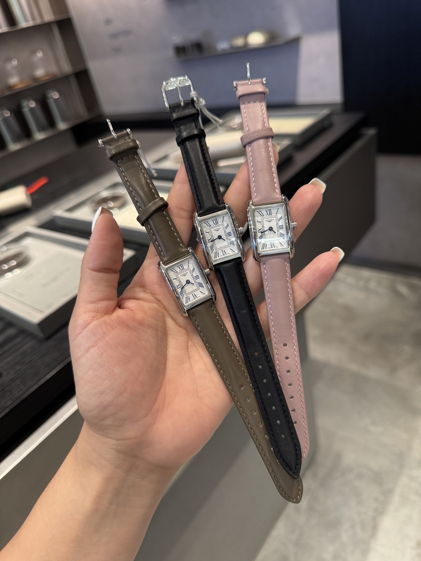 - Elegant Design: Rectangular stainless steel case with a refined dial.