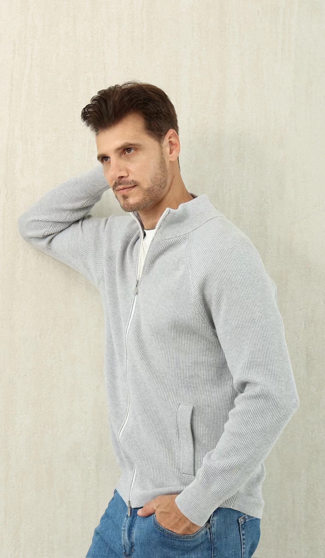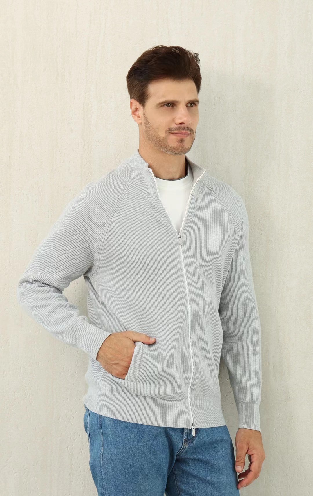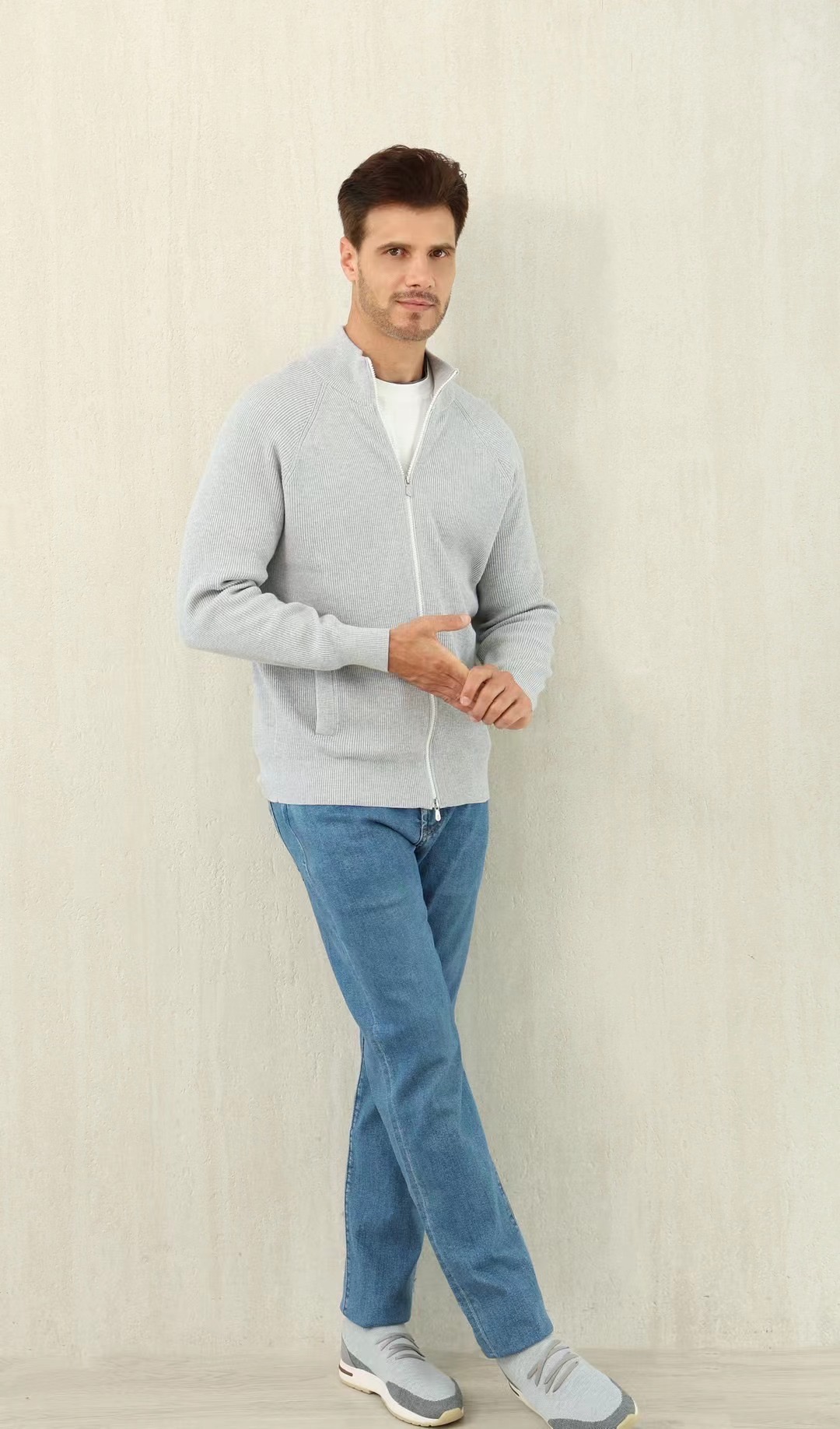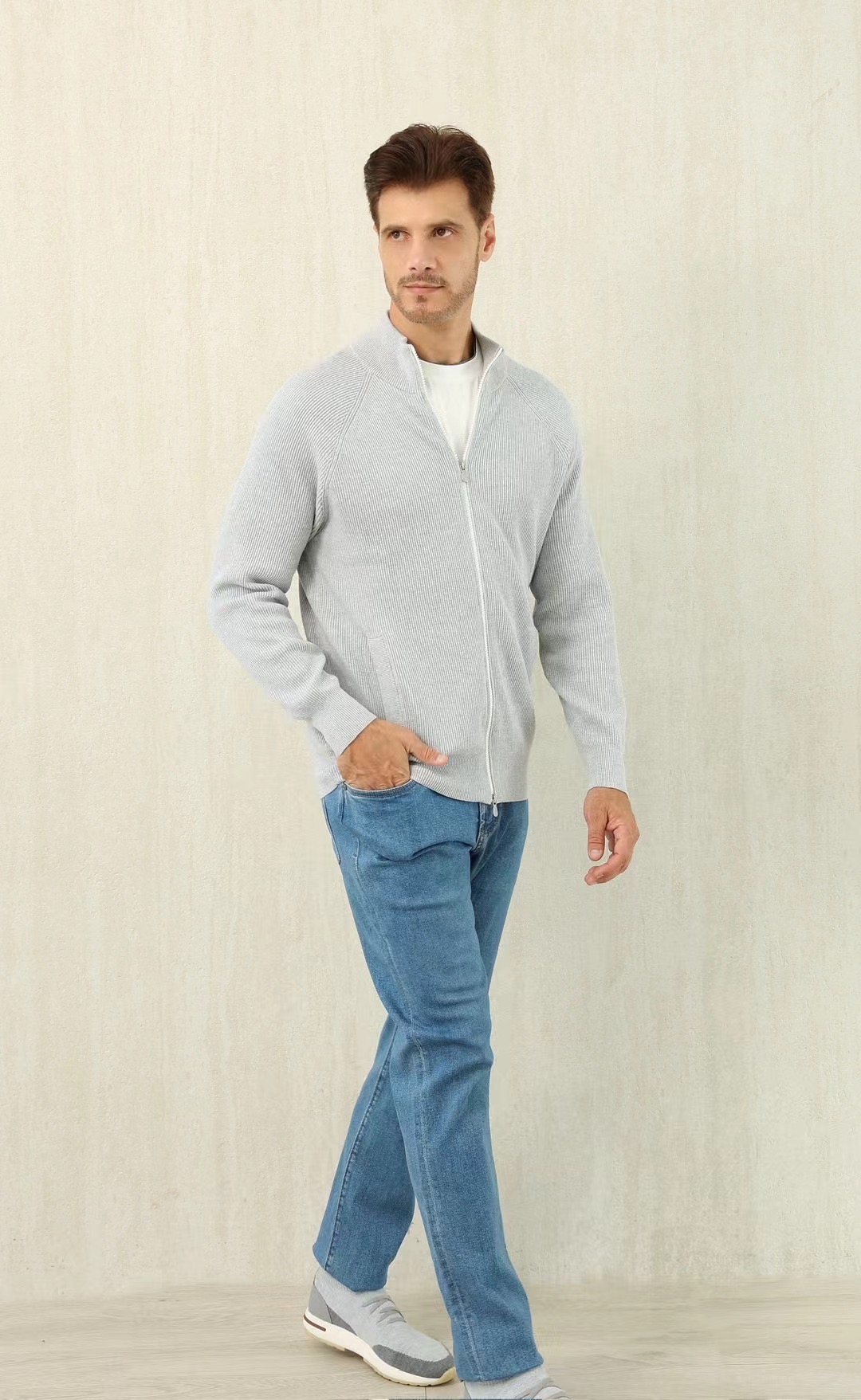Loro Piana Men's Casual Zip-Up Knit Cardigan - Versatile & Comfortable