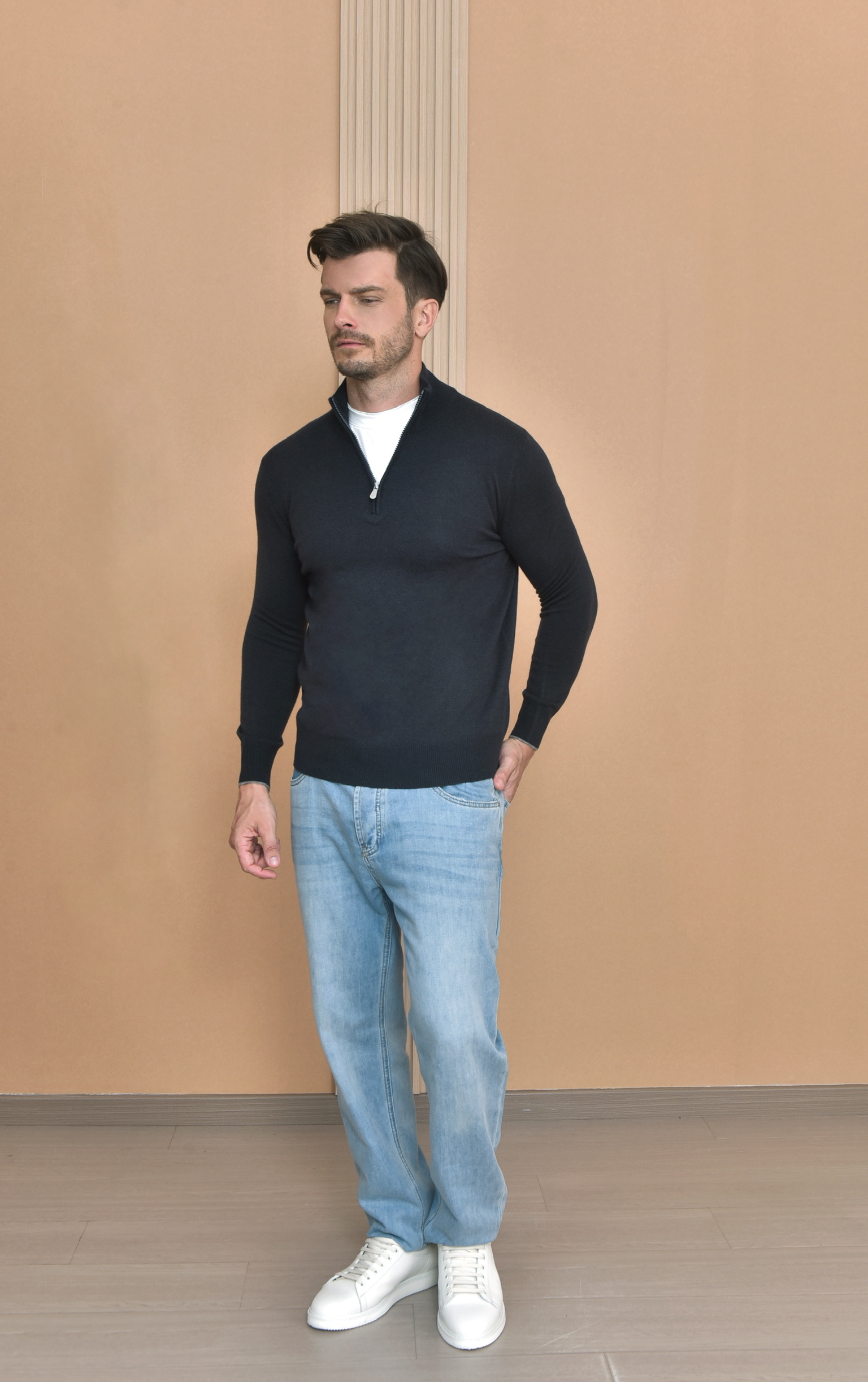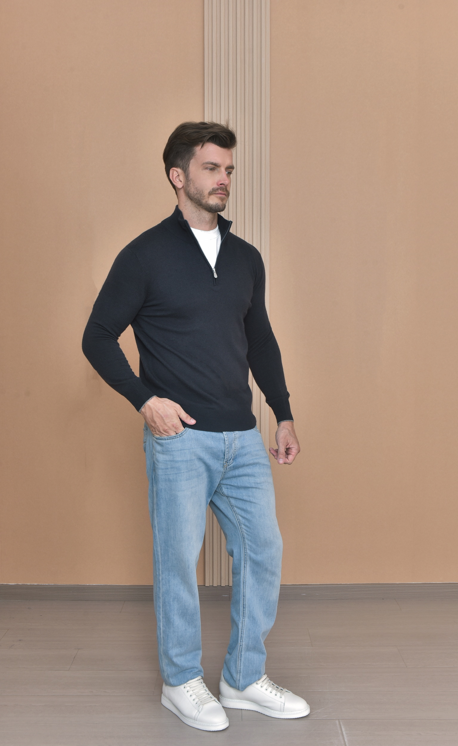 Tags: Comfortable Cashmere Knitwear, Elegant Men's Clothing, Loro Piana Cashmere Sweater, Men's Half Zip Sweater