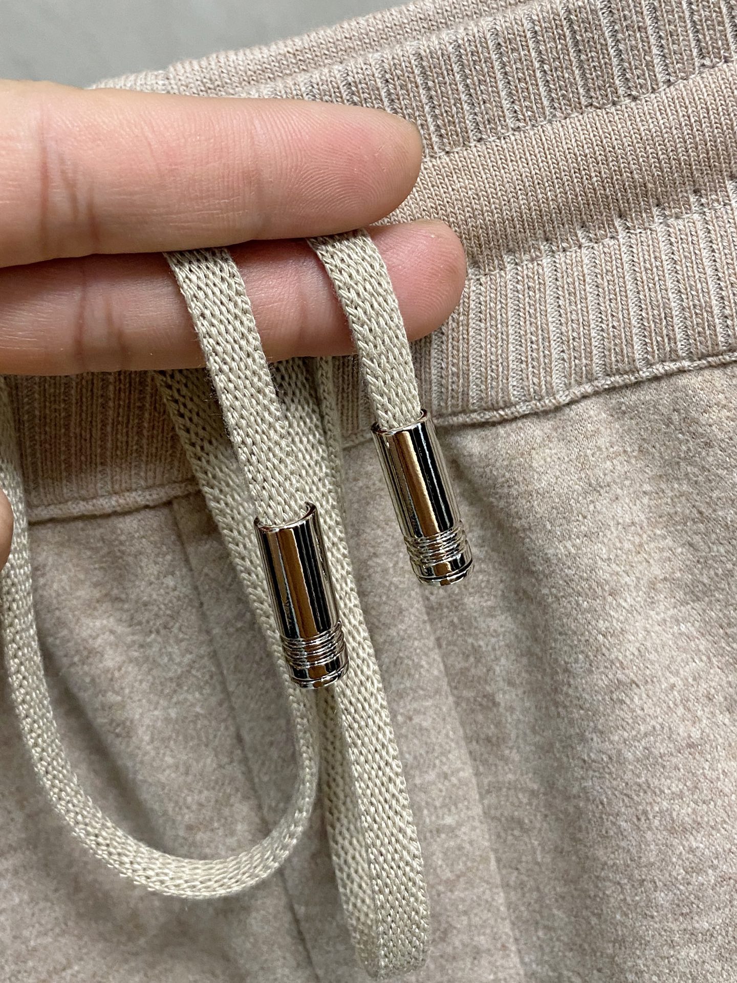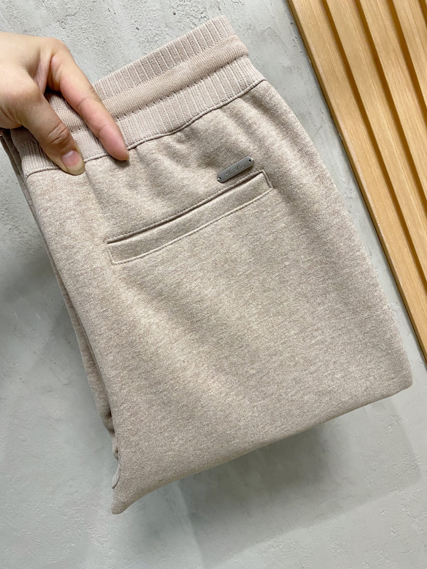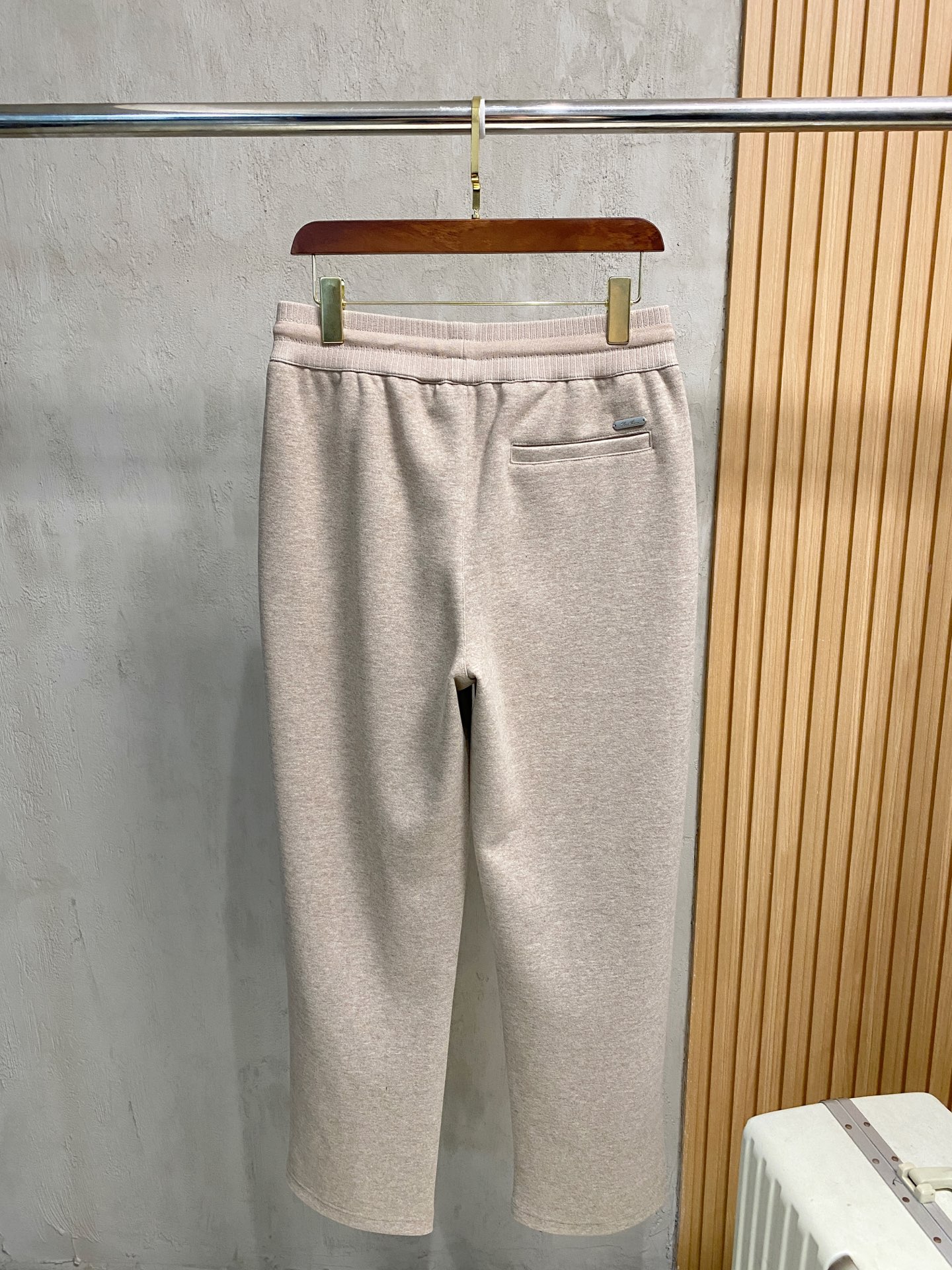 Tags: Elastic Waist Trousers, Loro Piana Knit Pants, Luxury Knit Pants, Men's Comfortable Trousers, Relaxed Fit Lounge Pants, Wool Blend Knitwear