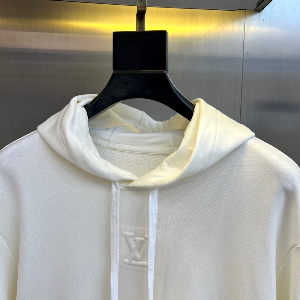 - Hoodie: Features a three-dimensional cut with an adjustable drawstring hood and a classic Monogram embossed logo on the chest.