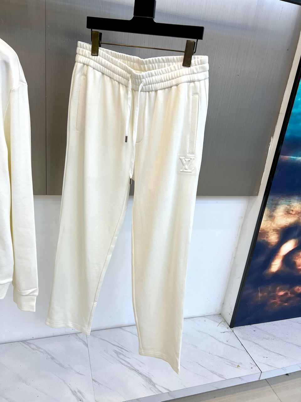 Elevate your everyday style with this luxurious Louis Vuitton white hoodie and pants set. Perfect for a modern, sporty chic look.