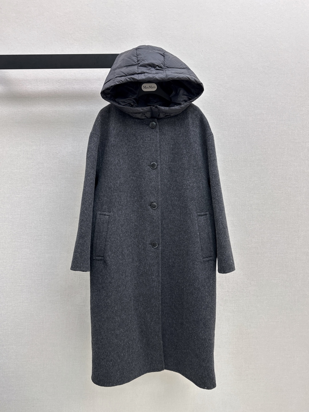This Max Mara 25SS design offers a unique and versatile approach to winter wear. The set includes a long, hooded down vest and a button-front wool coat, both crafted with attention to detail and quality.
