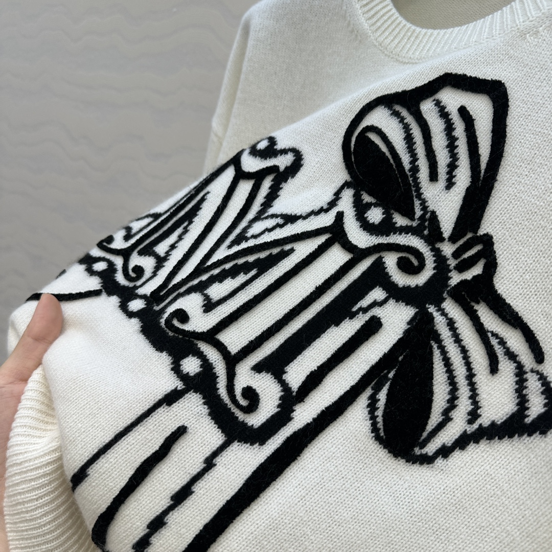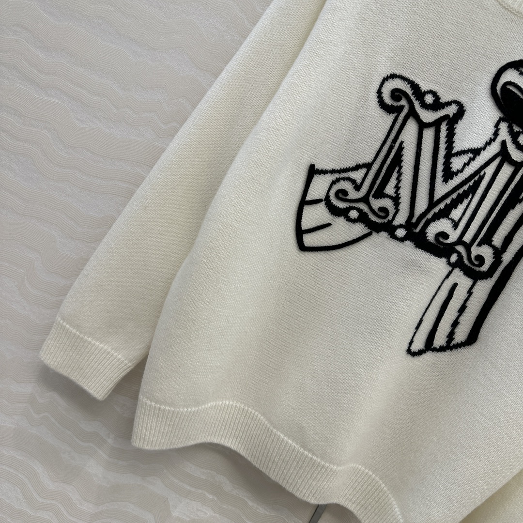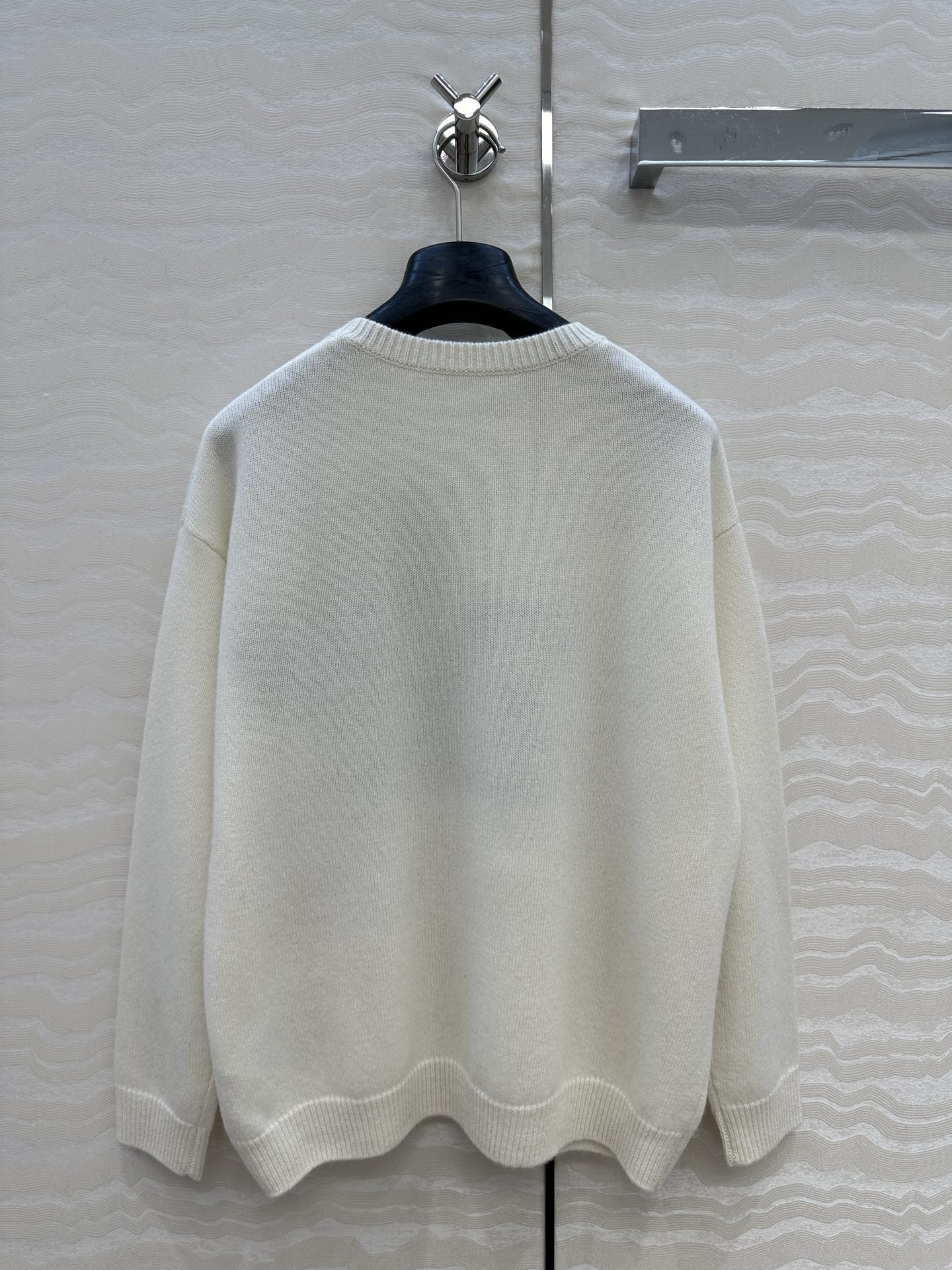 Tags: Crew Neck Sweater, Embroidered Logo Sweater, Relaxed Fit Sweater, White Sweater, Women Sweater, Wool Cashmere Sweater