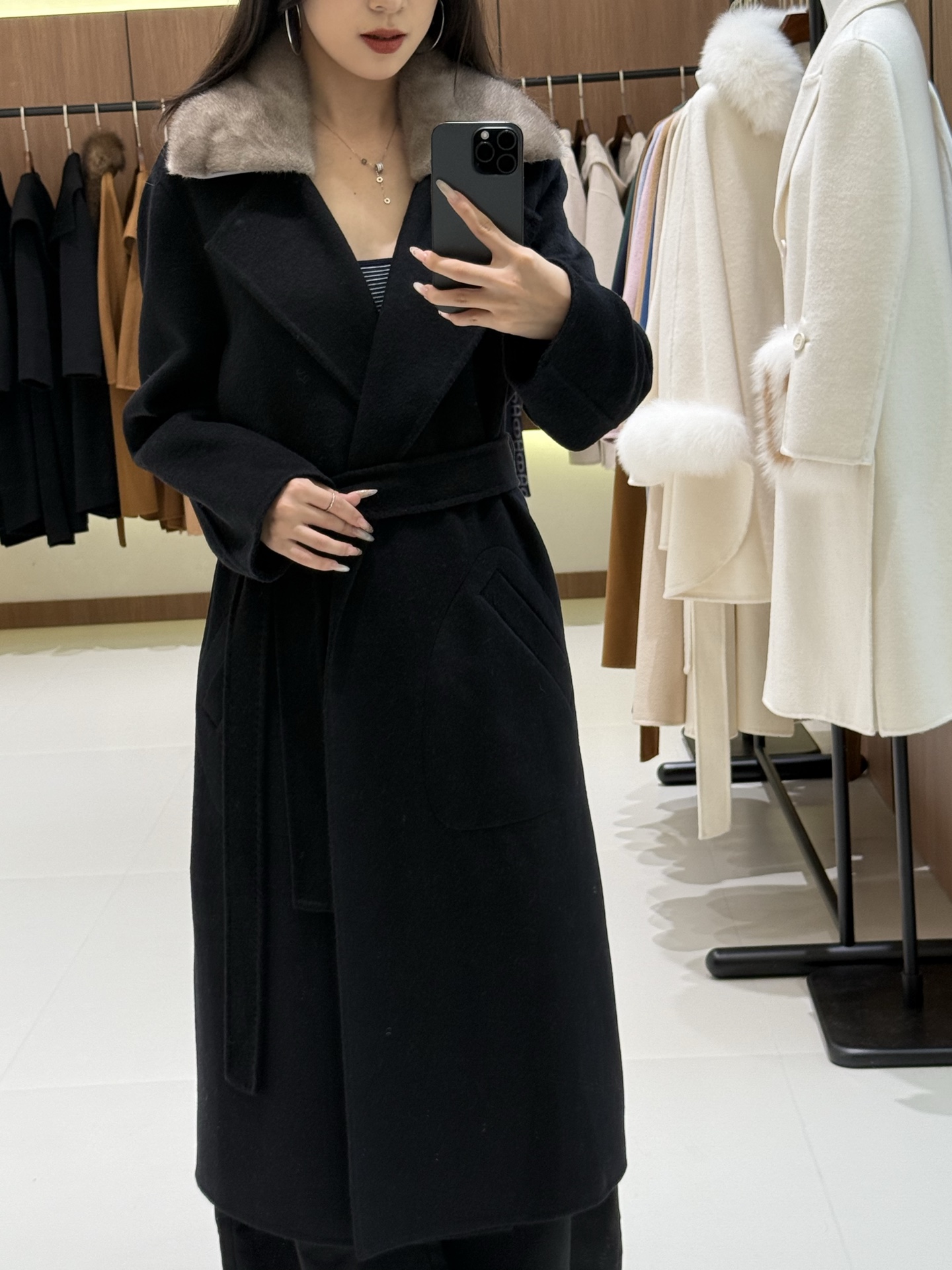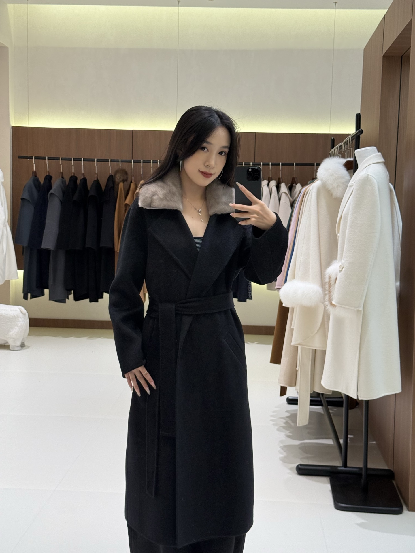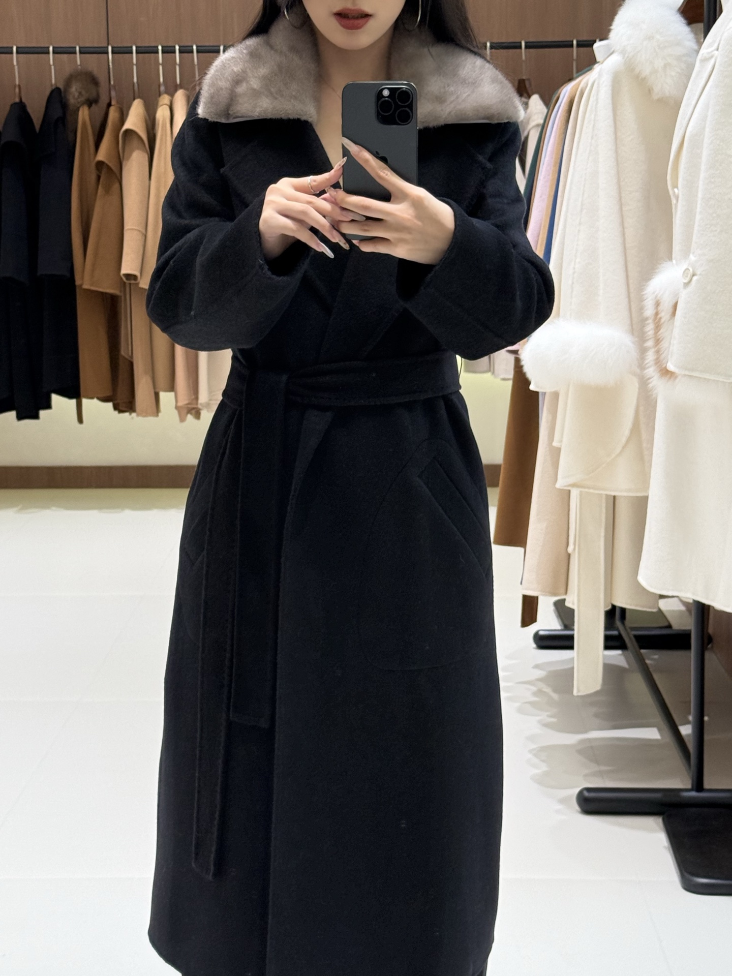 Tags: Belted Winter Coat, Fur Collar Wool Coat, Long Wool Coat, Max Mara Style Coat, Women's Winter Outerwear