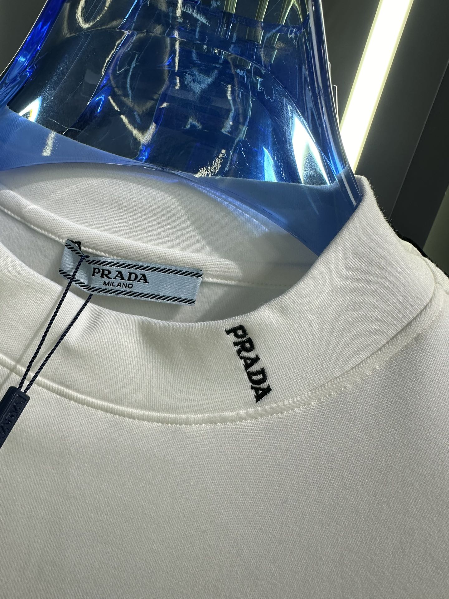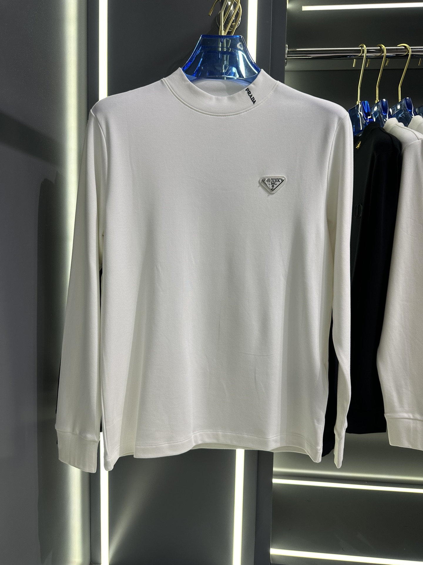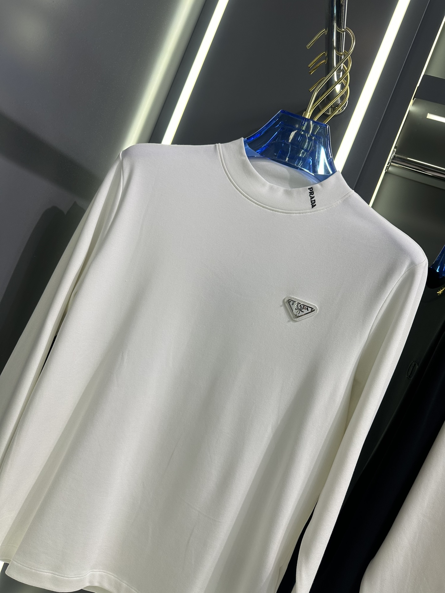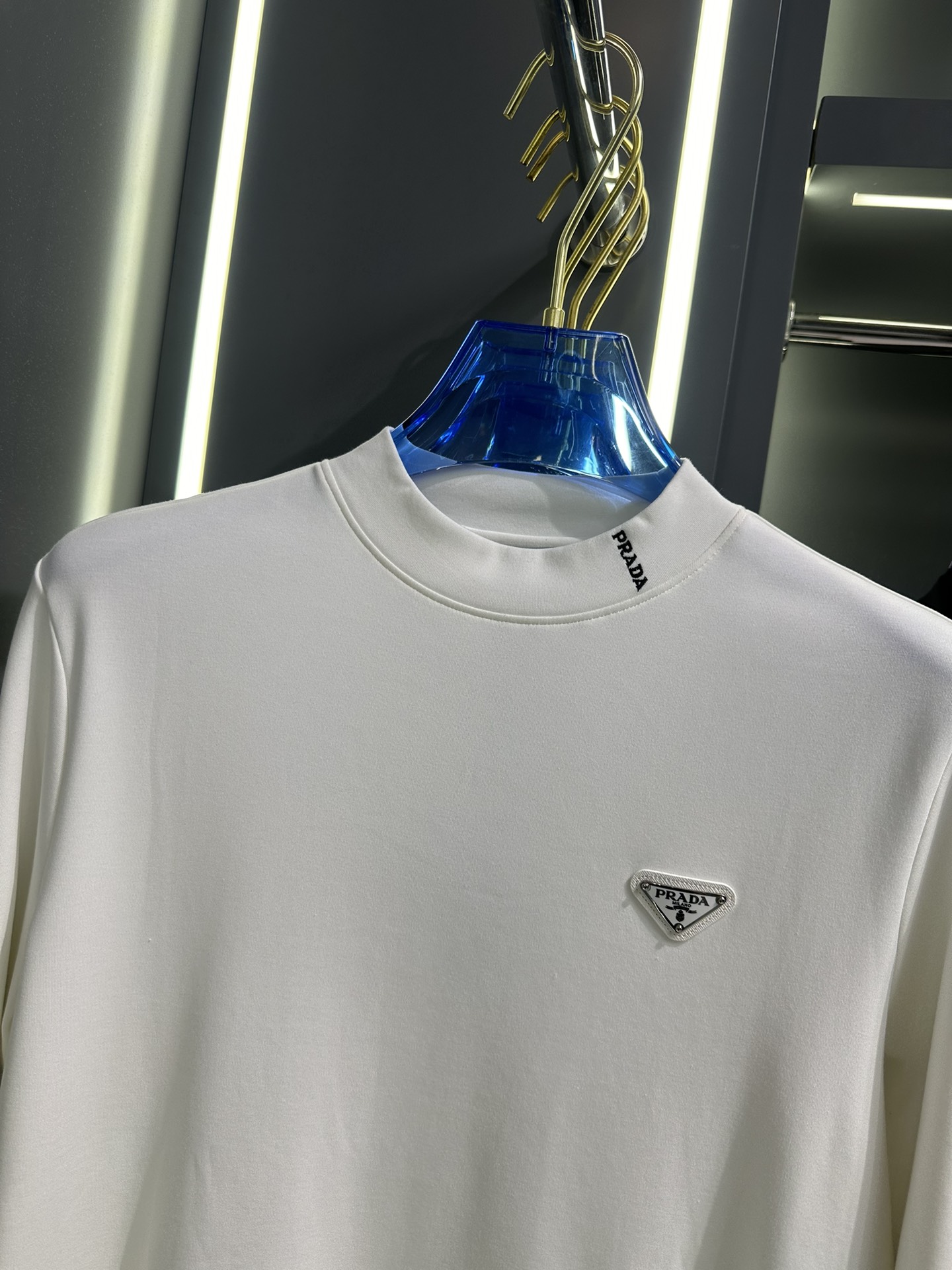 Tags: Designer Winter Sweatshirt, High Fashion Sweatshirt, Luxury Cotton Sweatshirt, Men Fleece Lined Pullover, Prada Casual Top, Prada Long Sleeve Sweatshirt