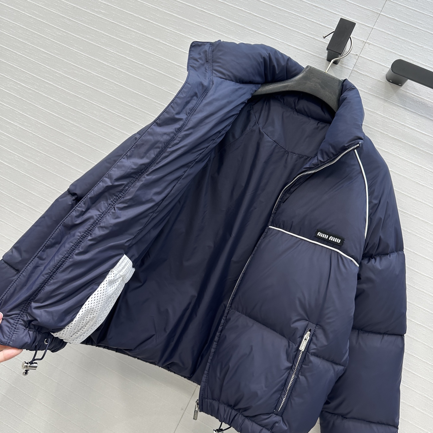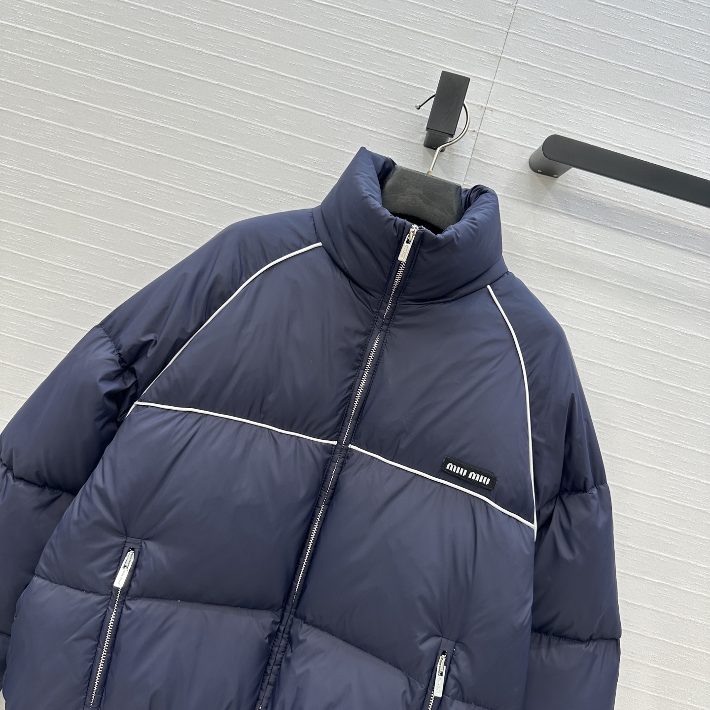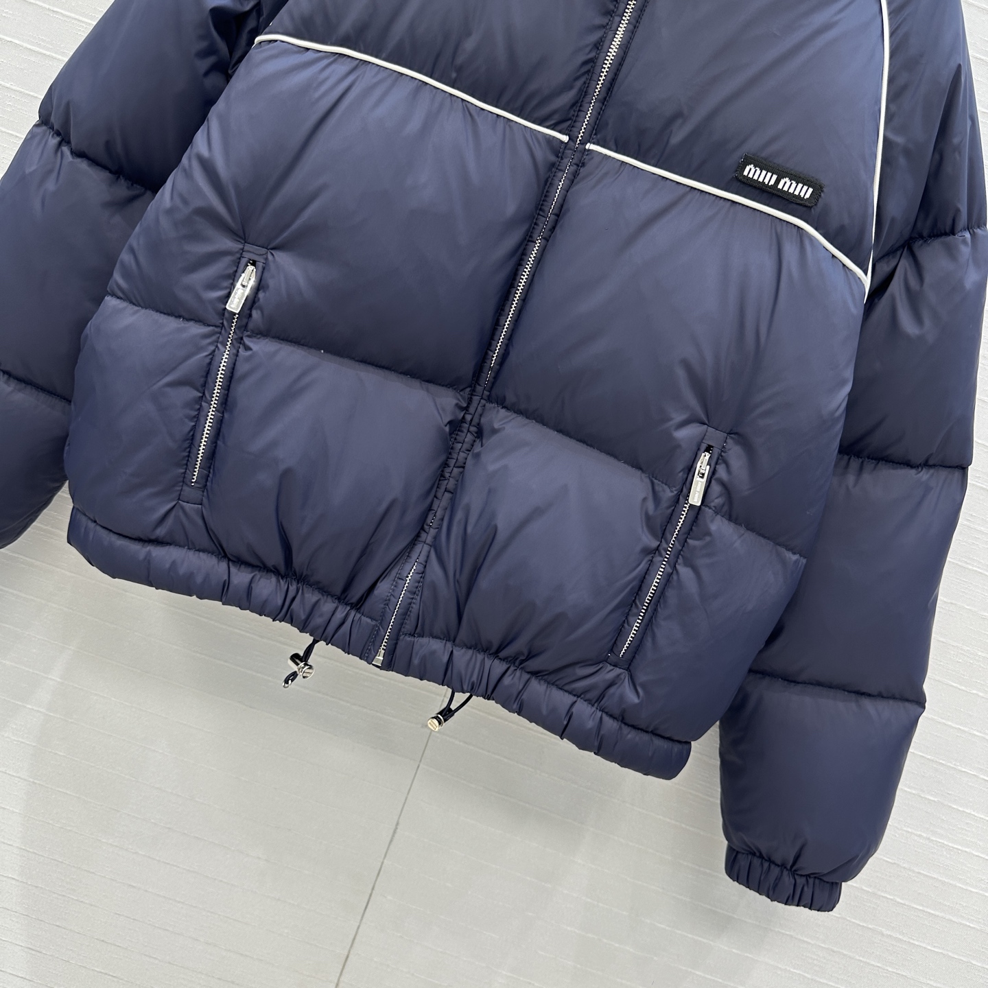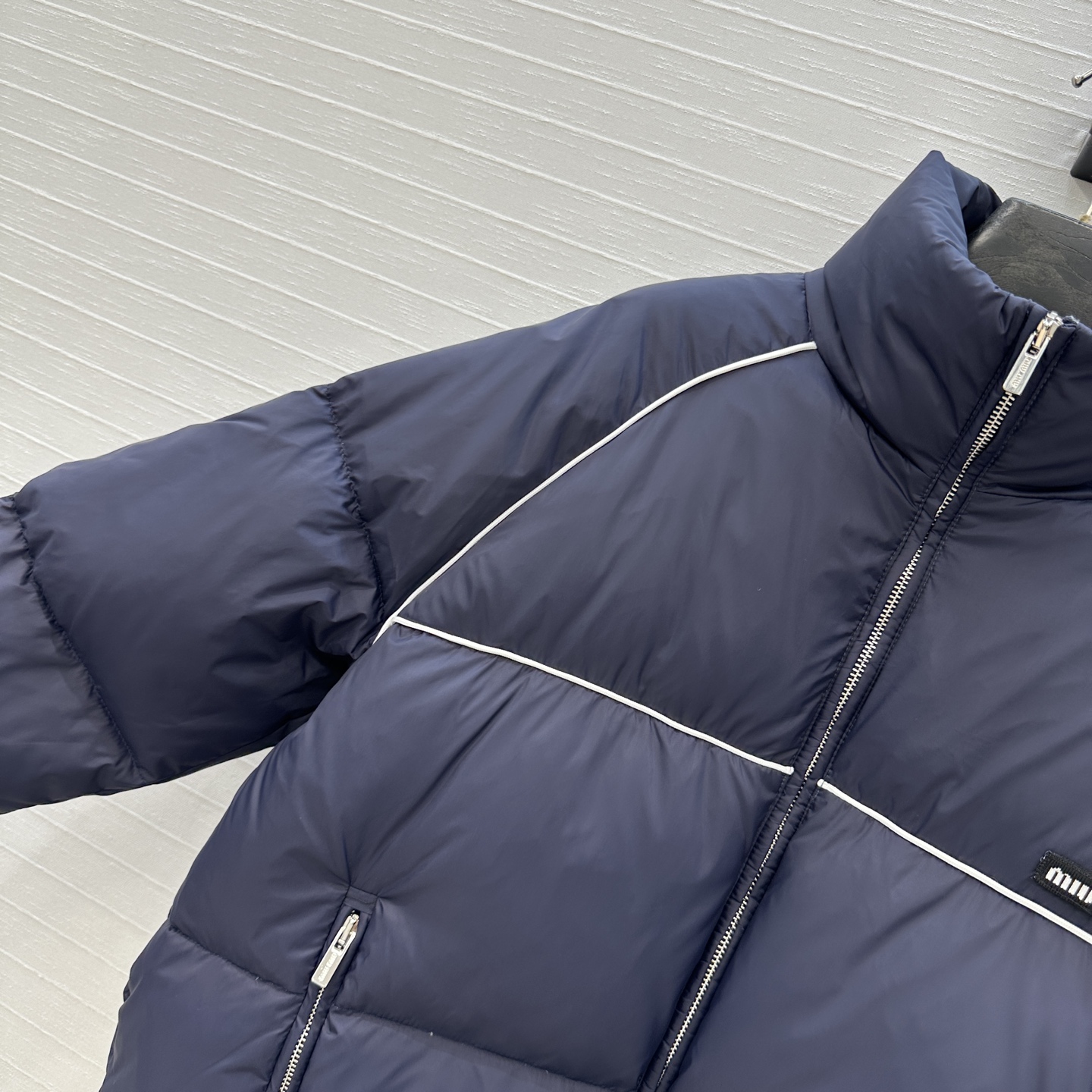 Miu Miu Inspired Navy Blue Puffer Jacket with White Trim - Stylish & Warm