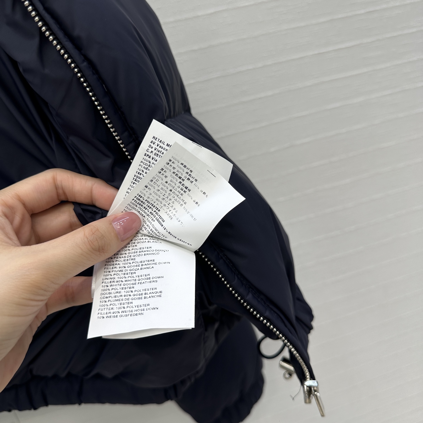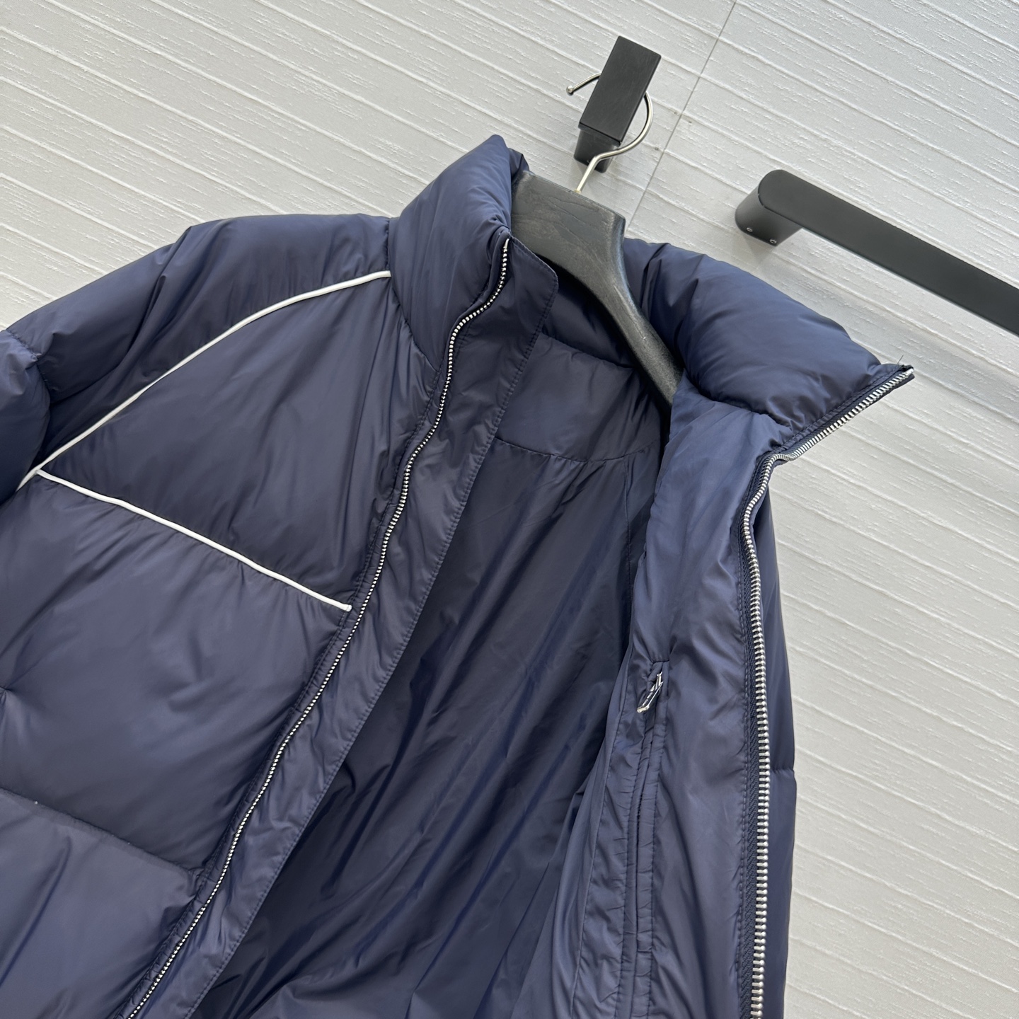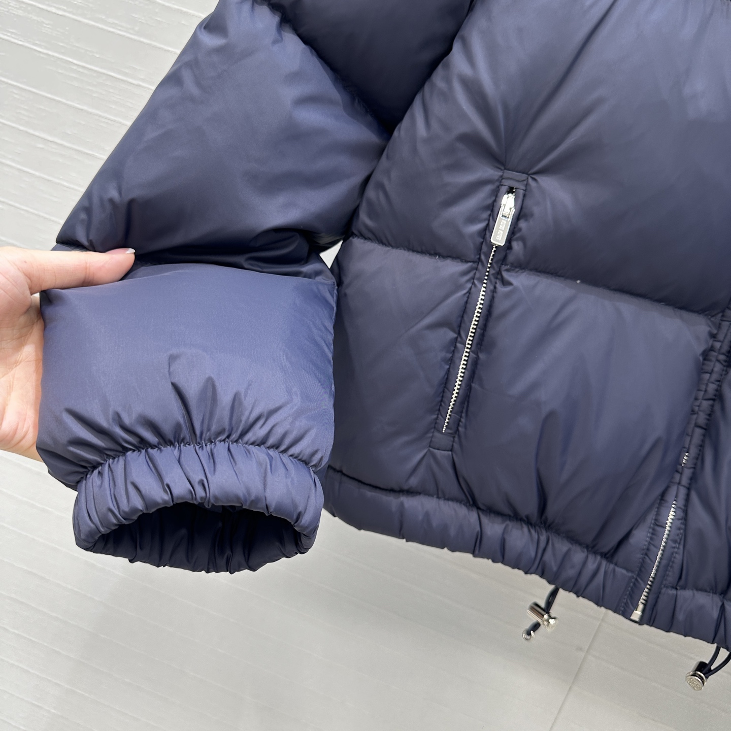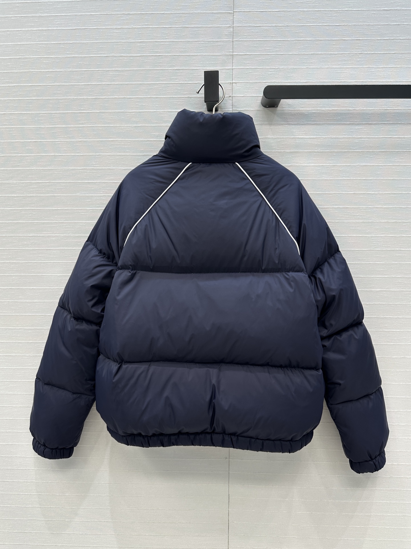 Miu Miu Inspired Navy Blue Puffer Jacket with White Trim - Stylish & Warm