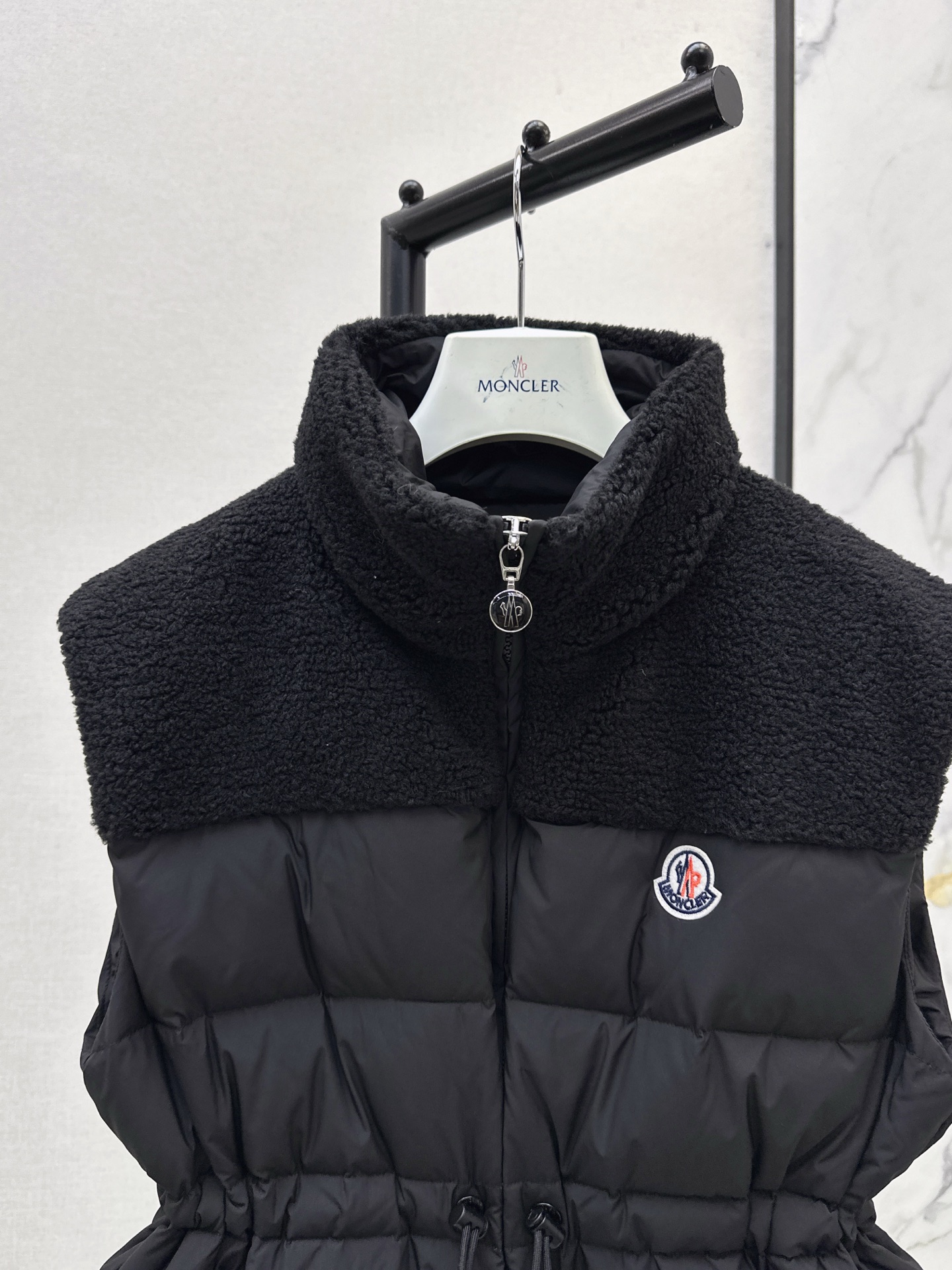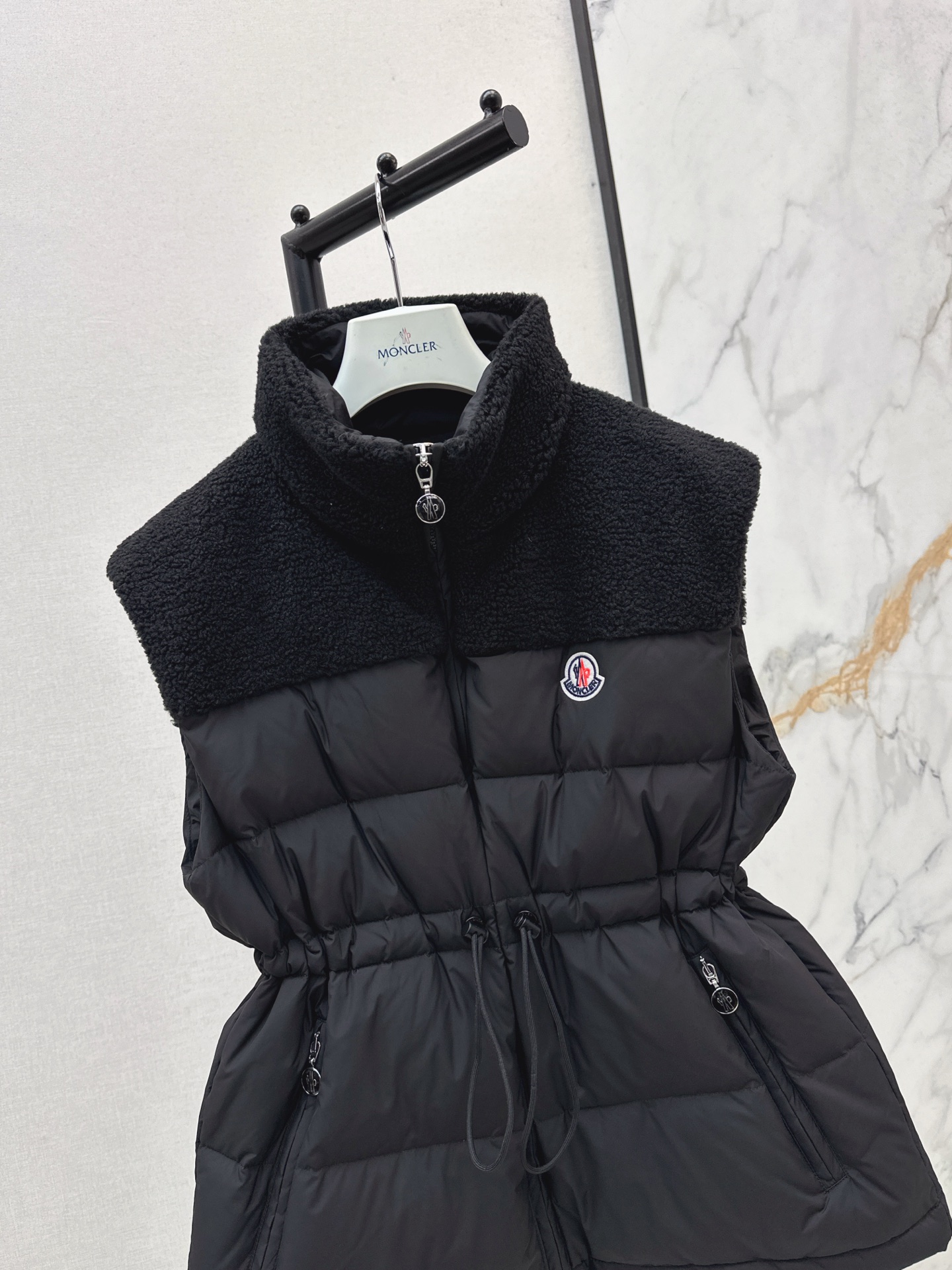 Tags: Black Puffer Vest, Drawstring Waist Vest, High Collar Sleeveless Jacket, Moncler Down Vest, Winter Layering Vest, Women's Fleece Vest