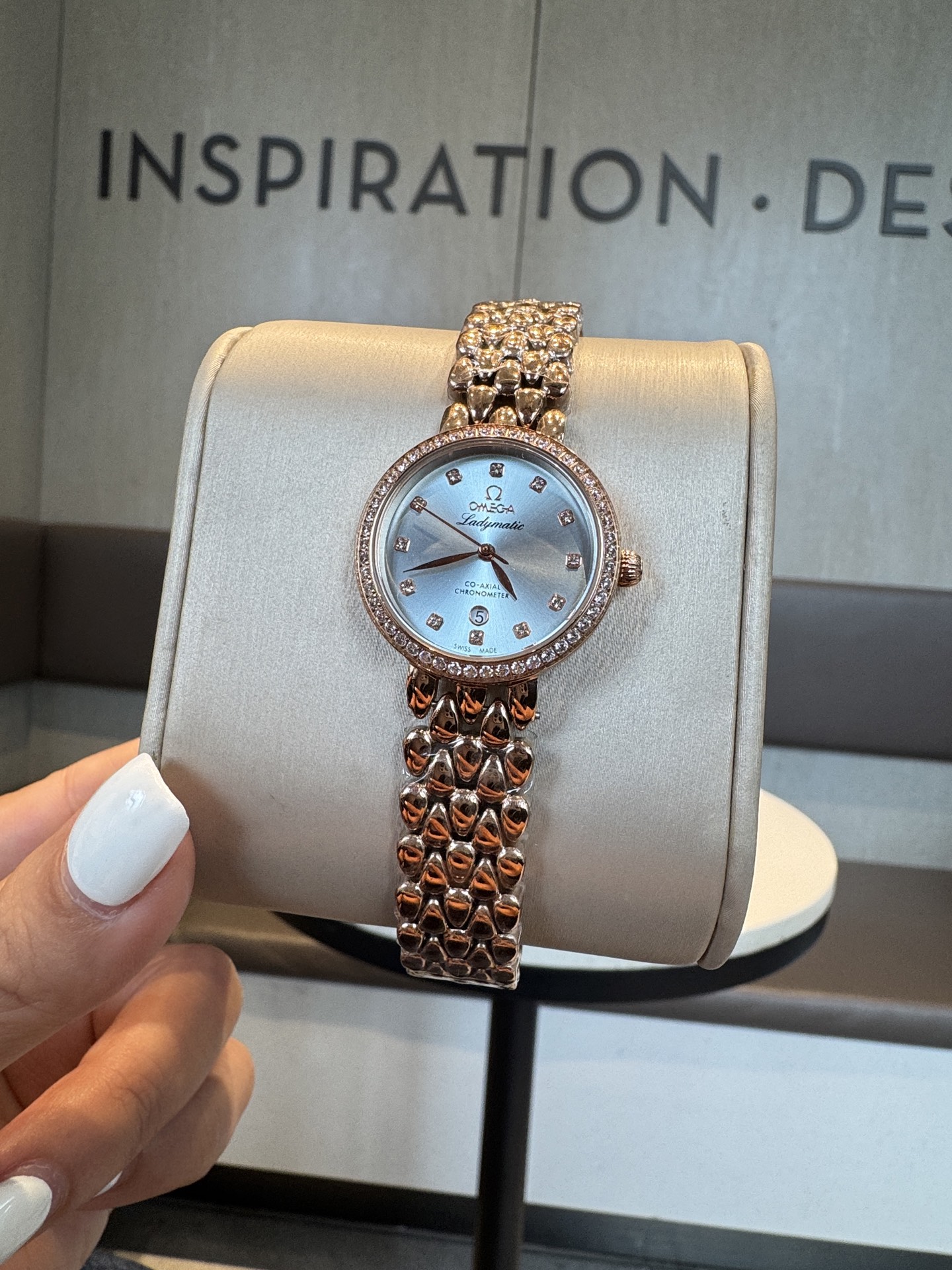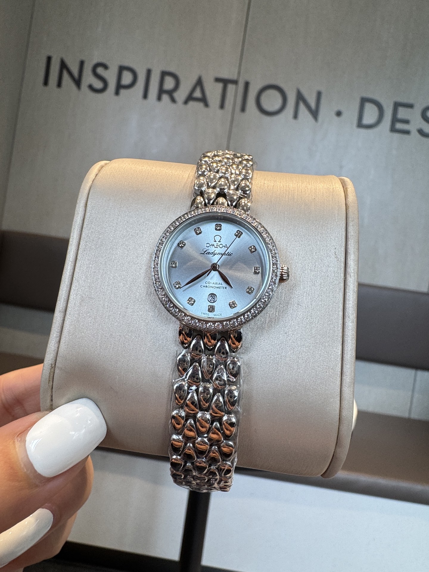 I absolutely love my new Omega Ladymatic watch! The diamond bezel is stunning, and the silver bracelet is so comfortable to wear. It's the perfect accessory for any occasion.