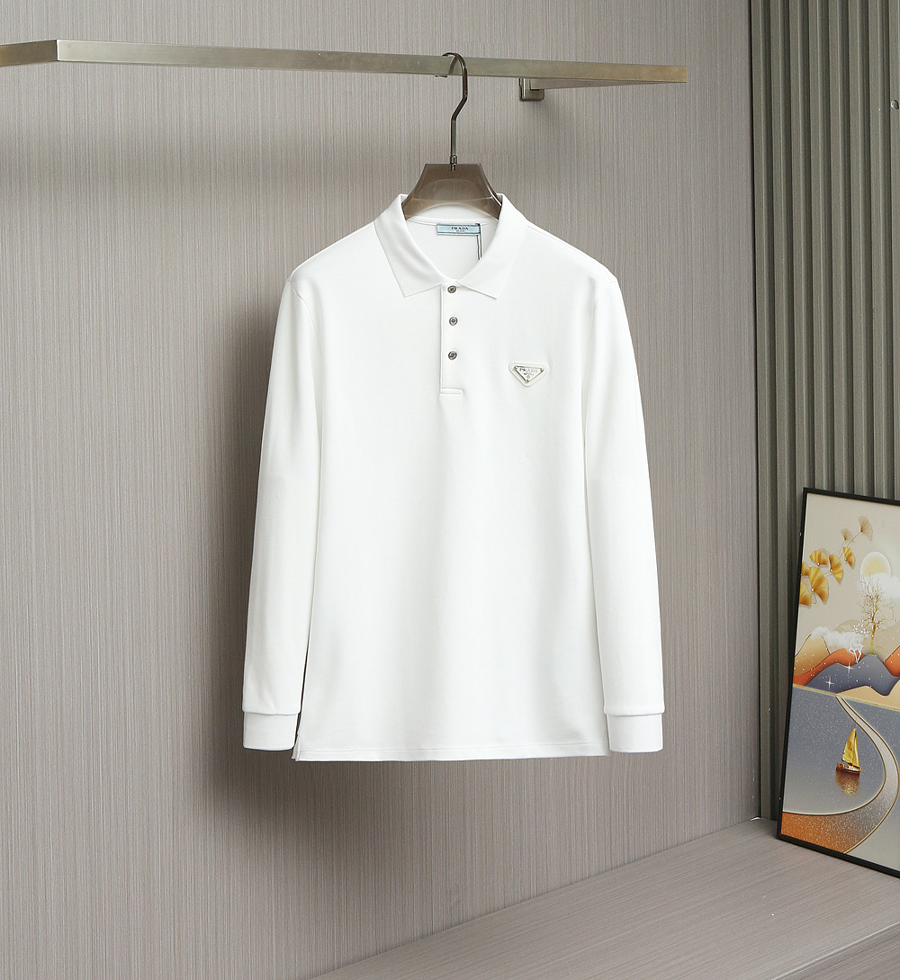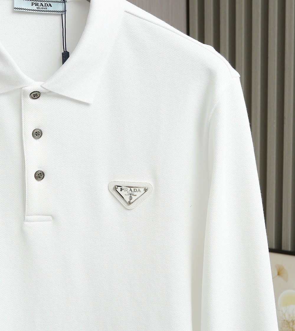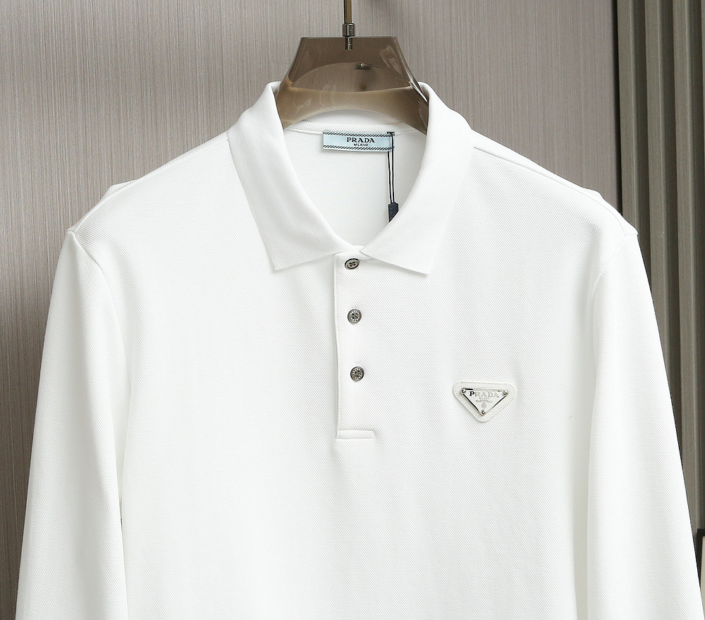 Tags: Designer Polo Shirt, Egyptian Cotton Polo, Elegant Menswear, Fall Fashion Polo, Men's Long Sleeve Polo, prada polo shirt