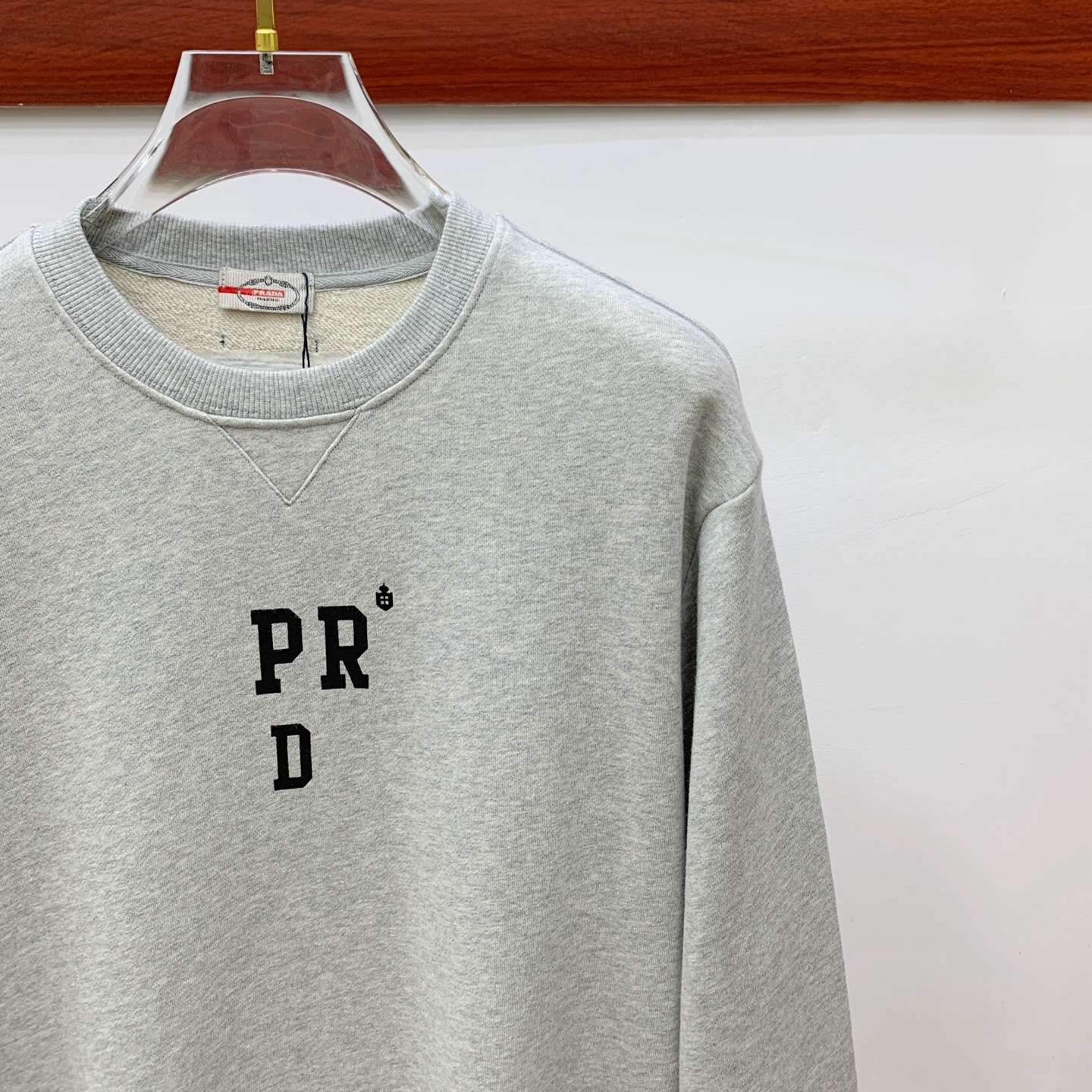 Prada 25SS Round Neck Sweatshirt Top Quality Embroidery Design Unisex