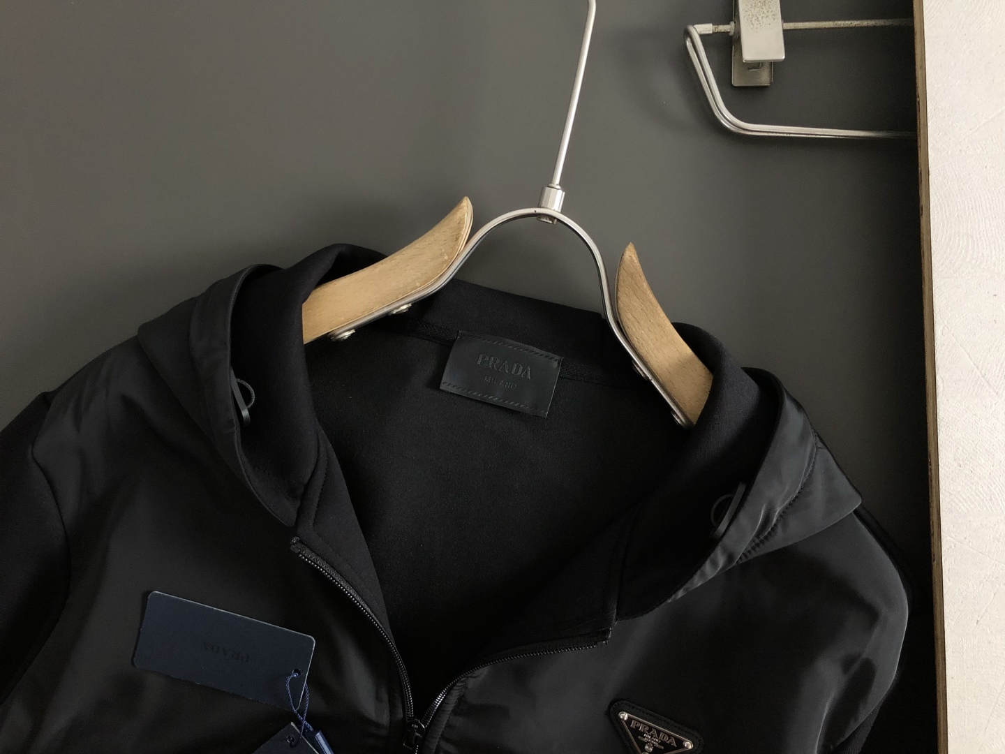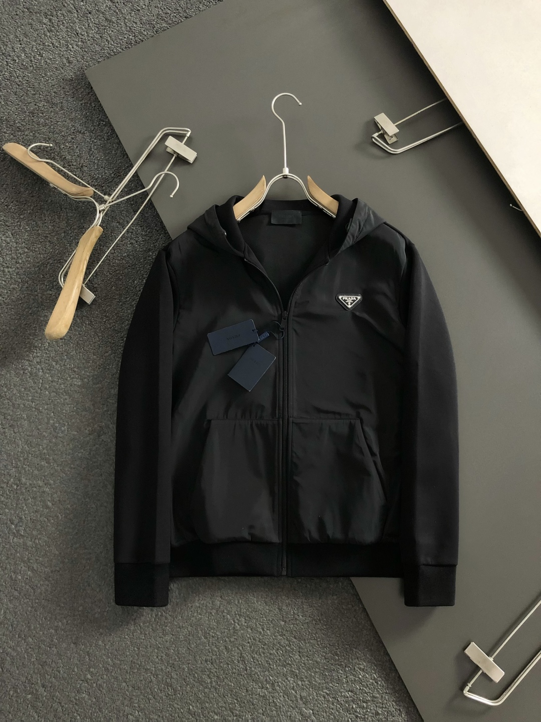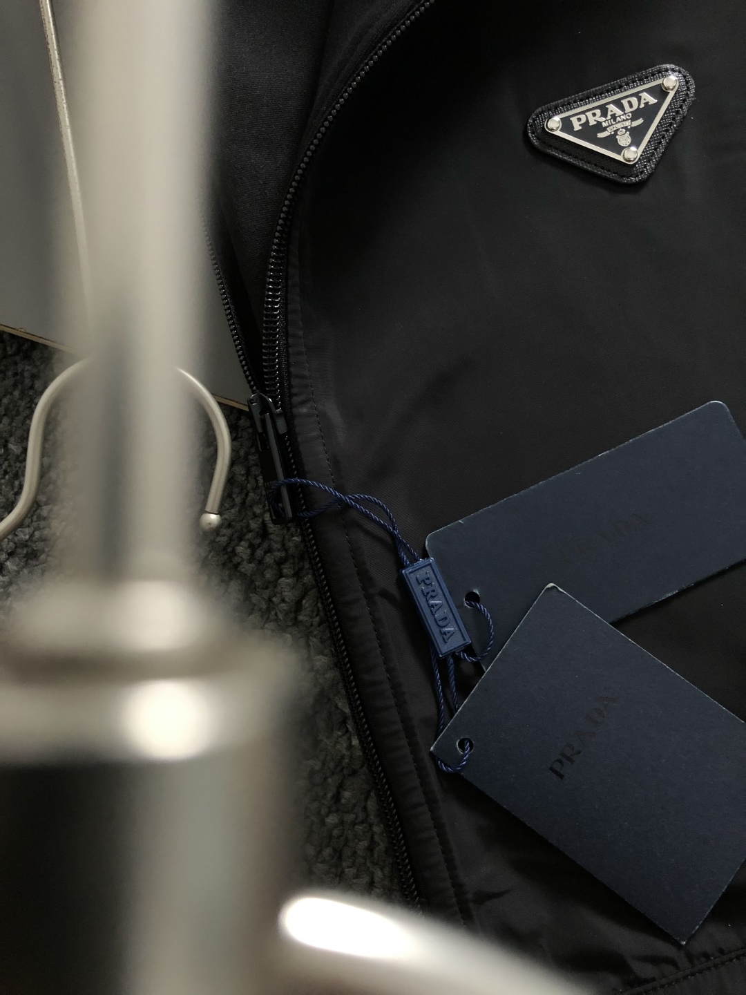 Tags: Black Designer Sweatshirt, Designer Sweatshirt, Fall Winter Sweatshirt, Men's Fitted Sweatshirt, Metal Zipper Sweatshirt, Prada Sweatshirt