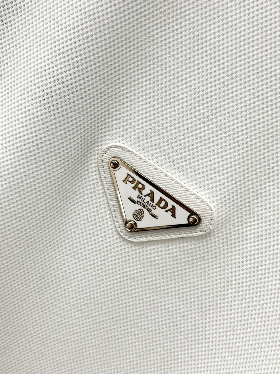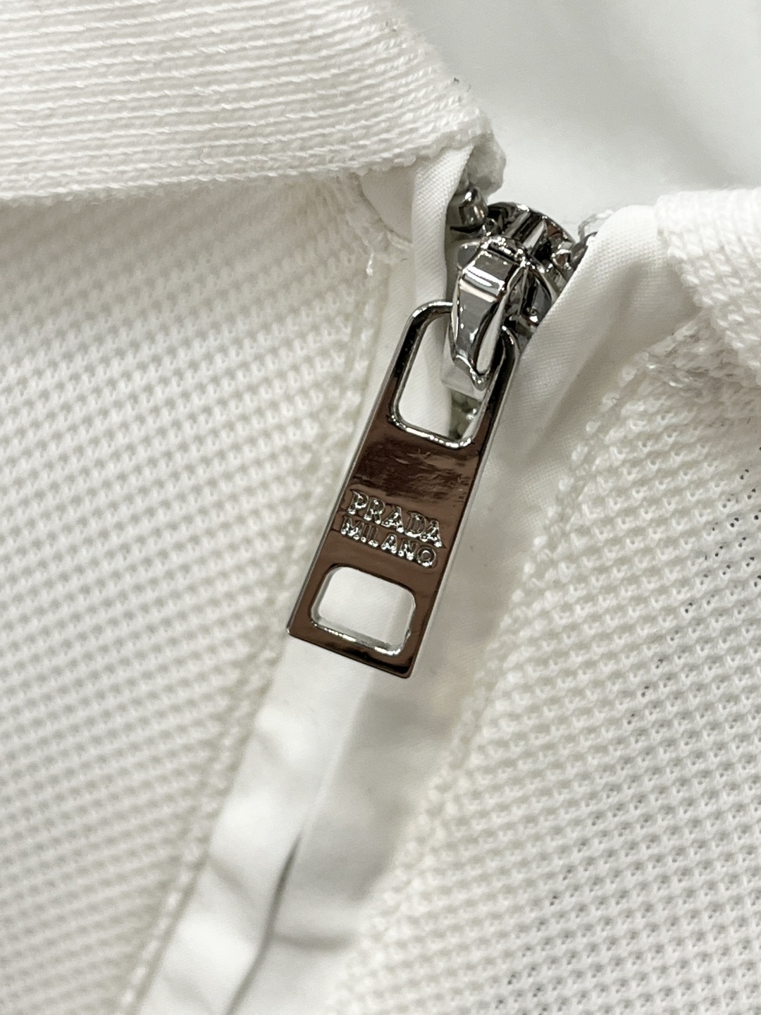 I absolutely love this Prada polo! The fabric is so soft and comfortable, and the slim fit is very flattering. The zipper collar is a nice touch and adds a modern feel to the classic polo design. Definitely worth the investment!