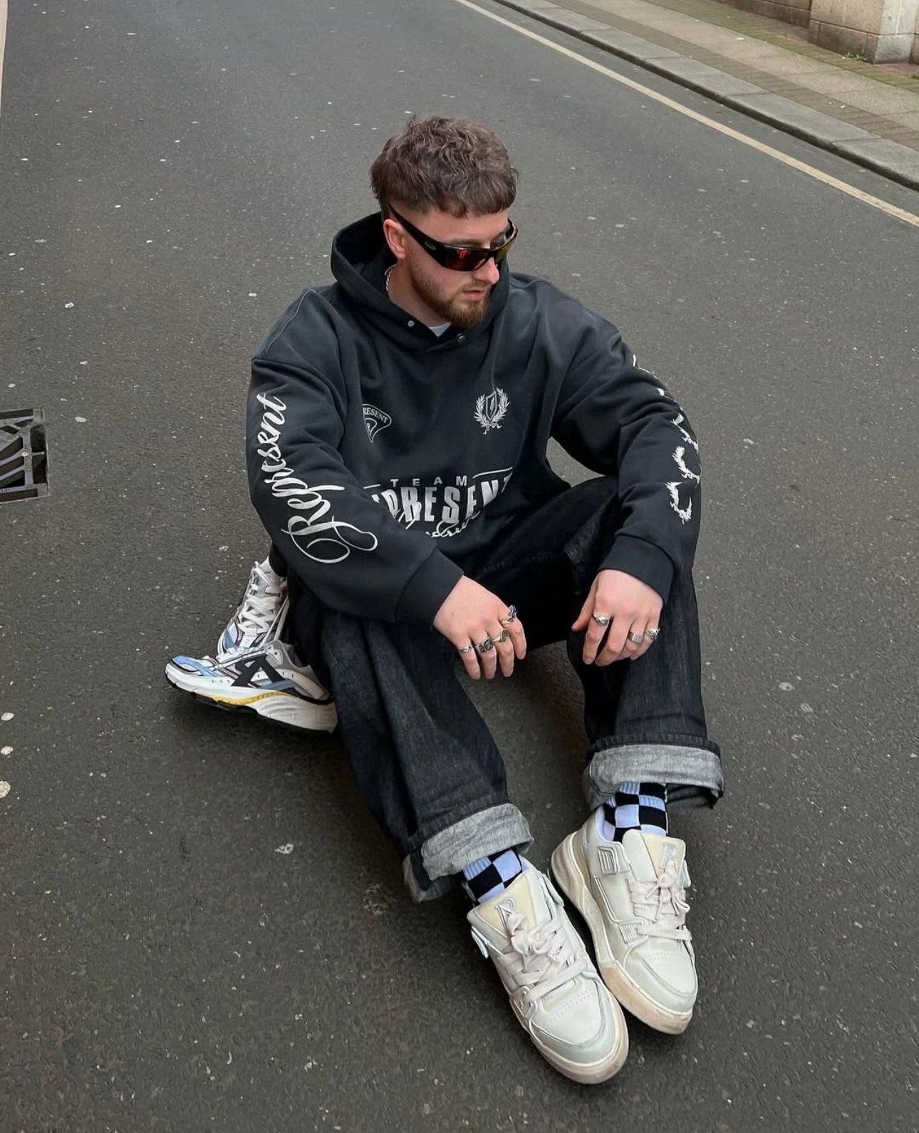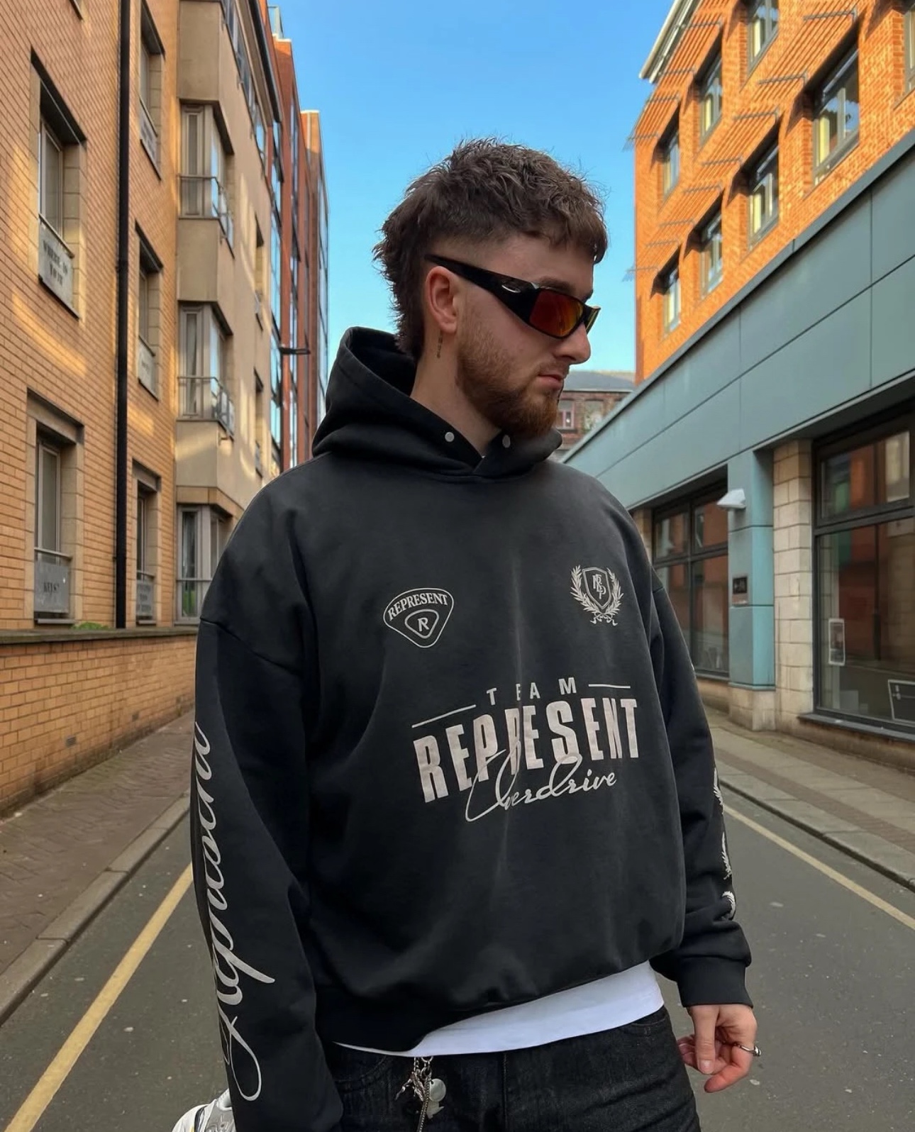 - Screen-printed REPRESENT logo on the chest and sleeves