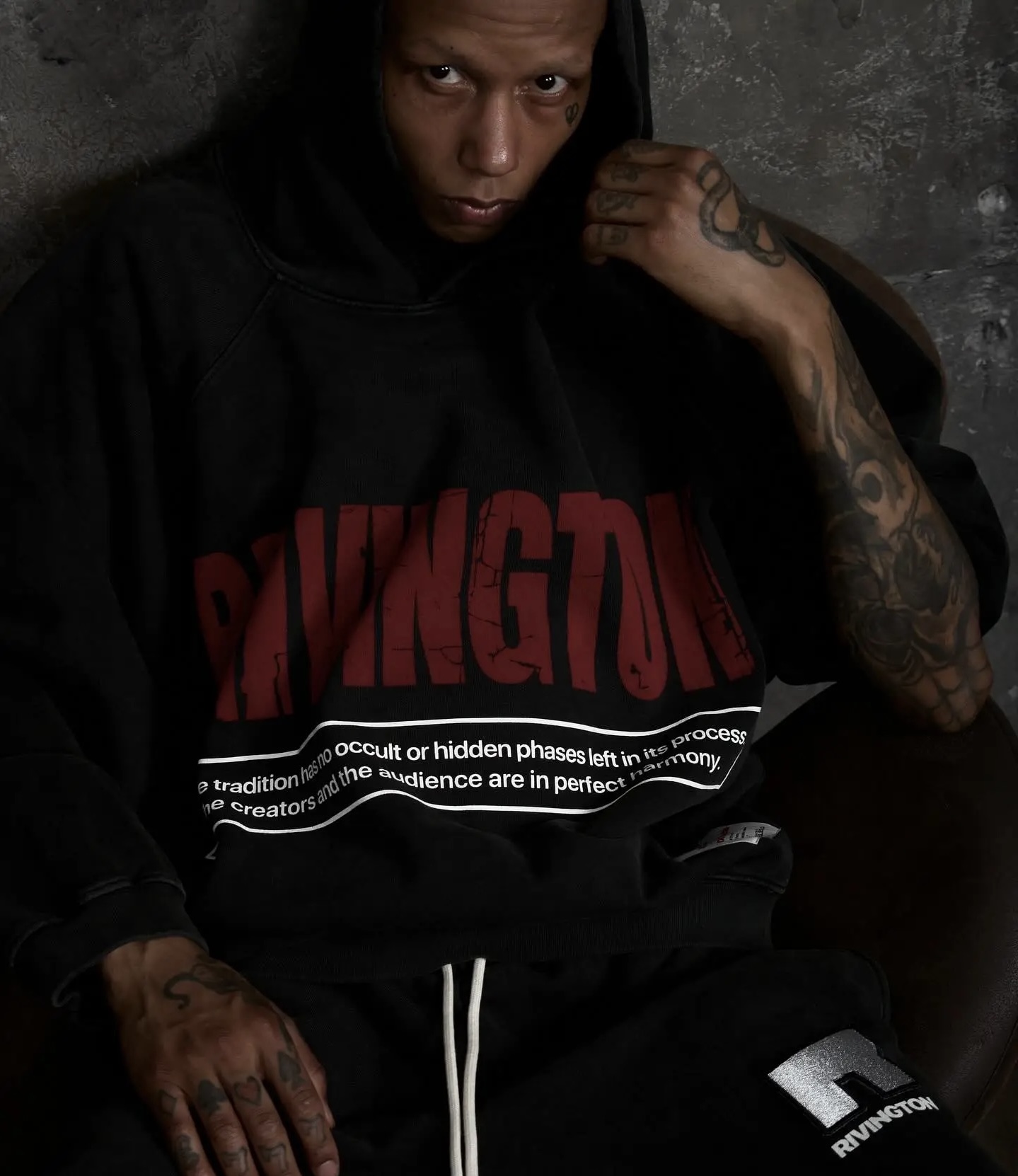 Tags: Graphic Print Hoodie Men, Heavyweight Cotton Hoodie, Rivington Street Garden Hoodie, Streetwear Cotton Hoodie, Vintage Black Pullover Hoodie, Washed Black Hoodie Men