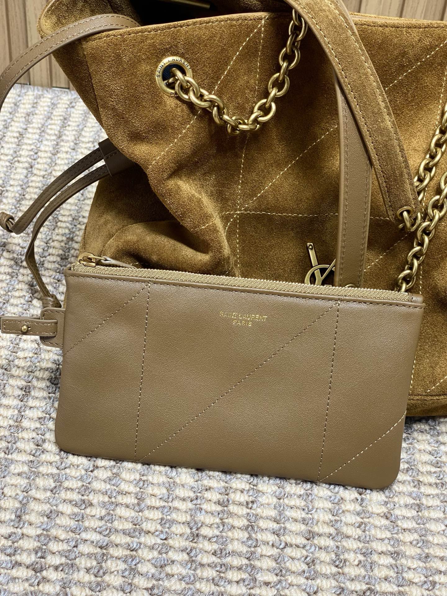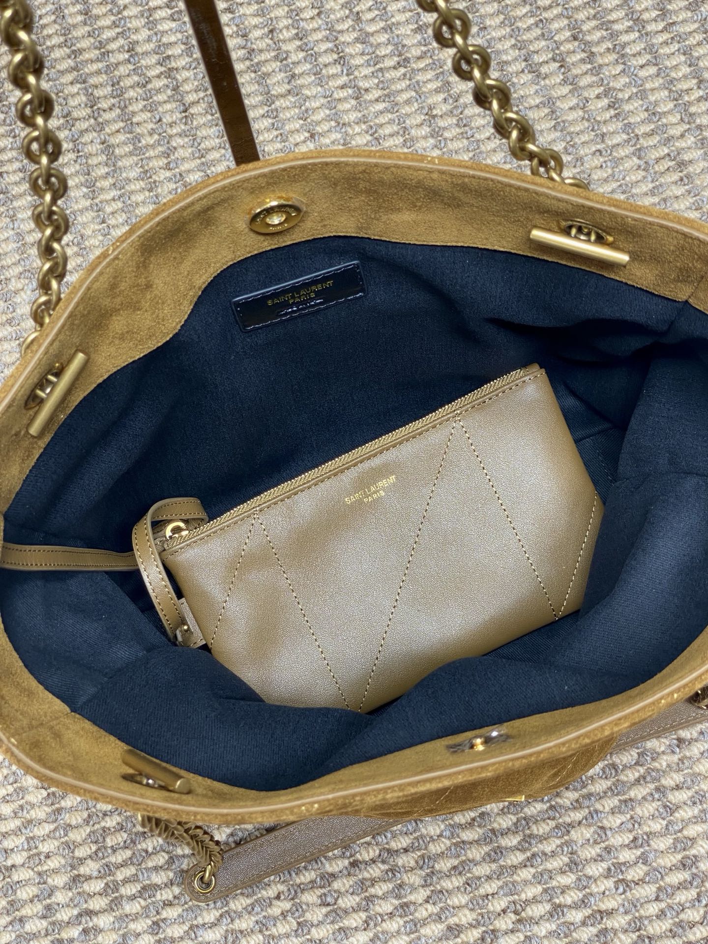 Saint Laurent Large Pochon Tote Bag - Caramel Suede Leather, Small Size