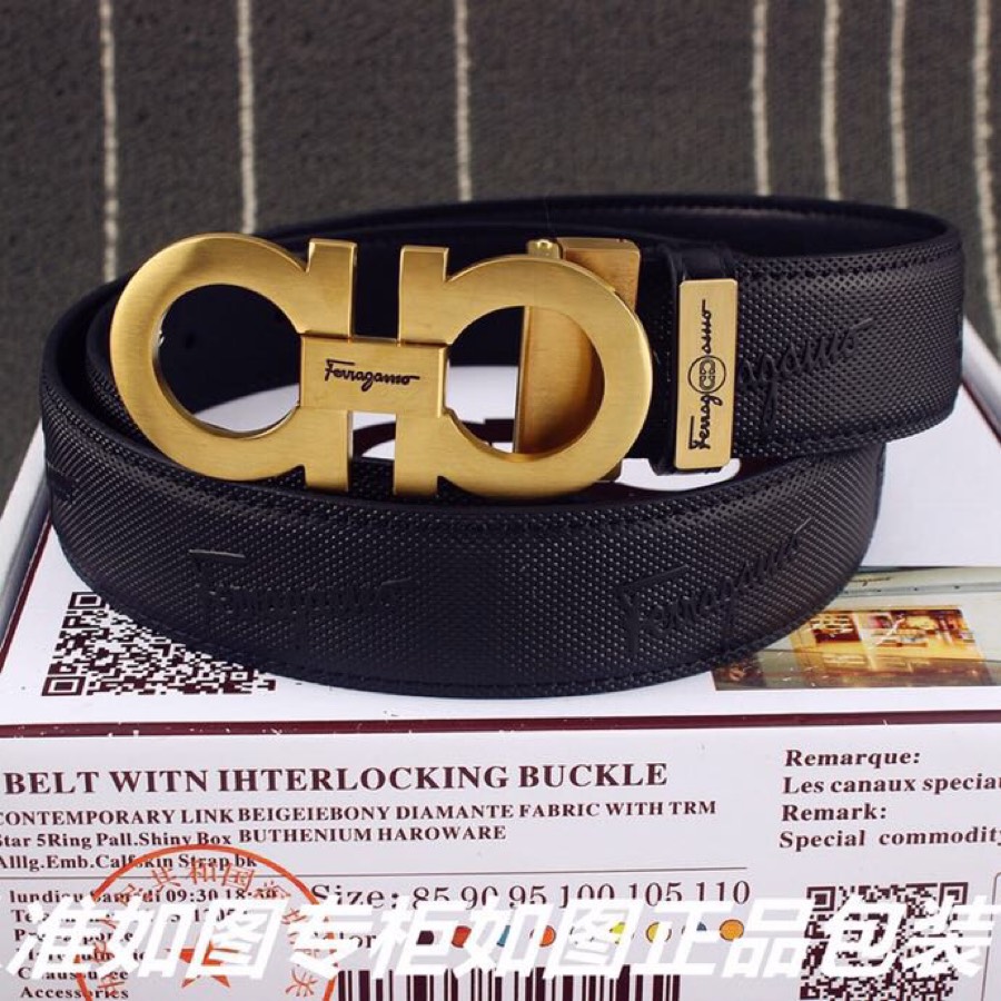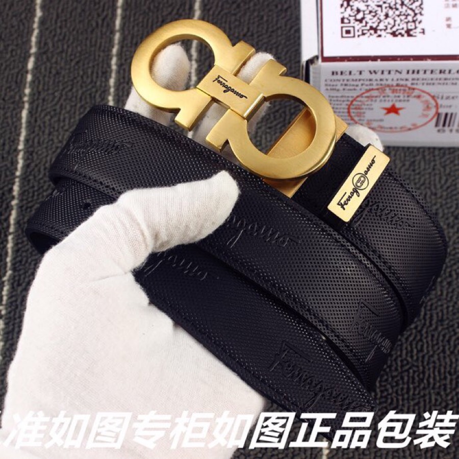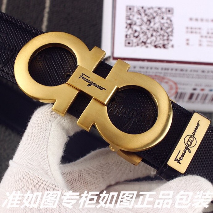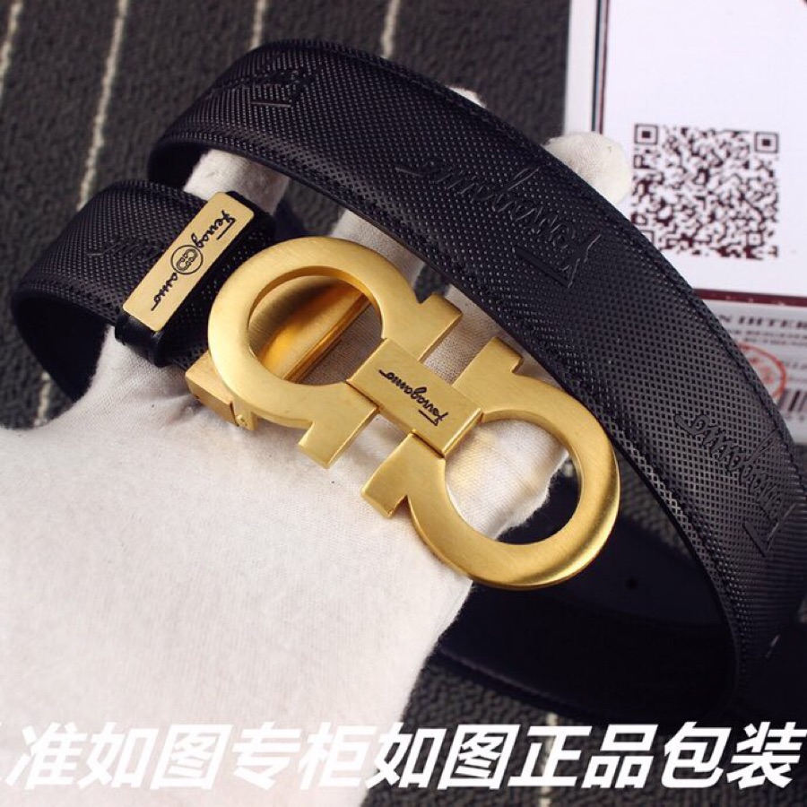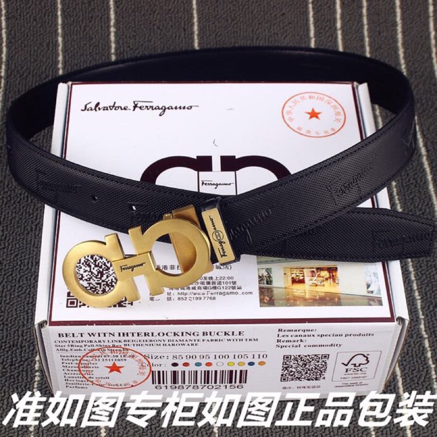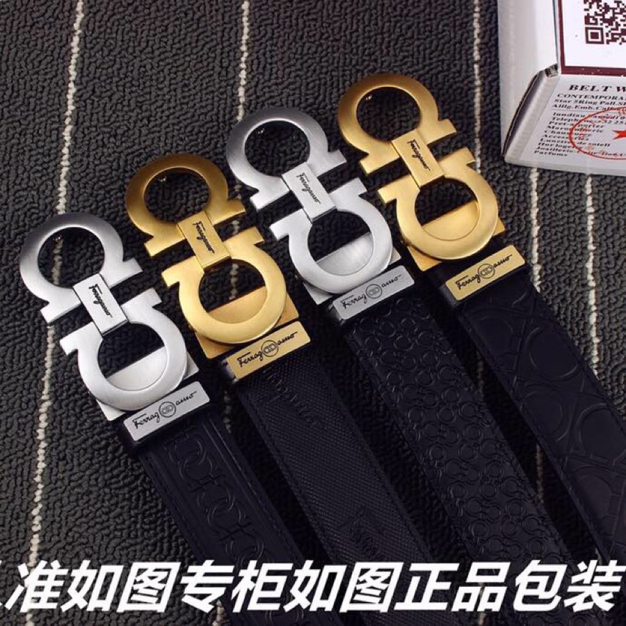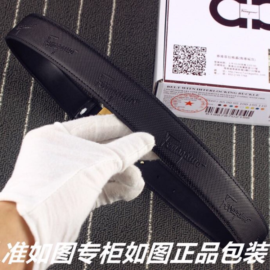 Genuine leather belt by Salvatore Ferragamo. Reversible buckle, perfect for gifting or personal use. Includes puncher. Width: 3.5mm.