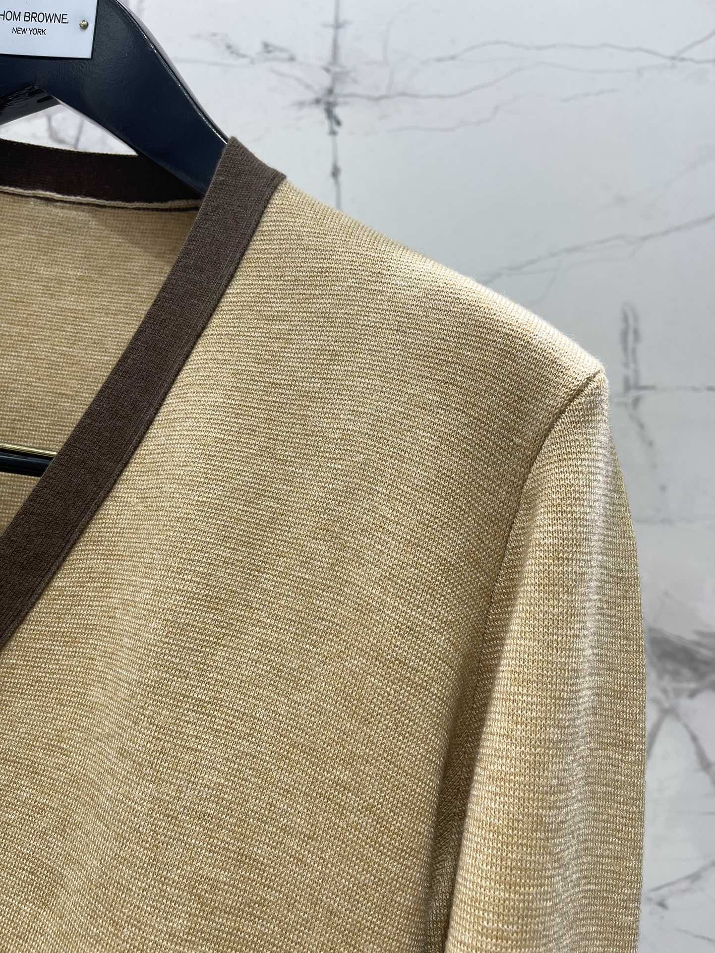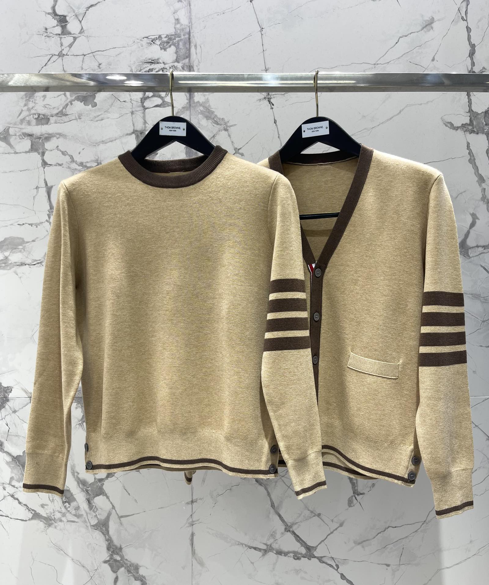 Tags: Four Bar Stripe, Khaki Color Cardigan, Thom Browne Cardigan, V Neck Knitwear, Women V Neck Cardigan