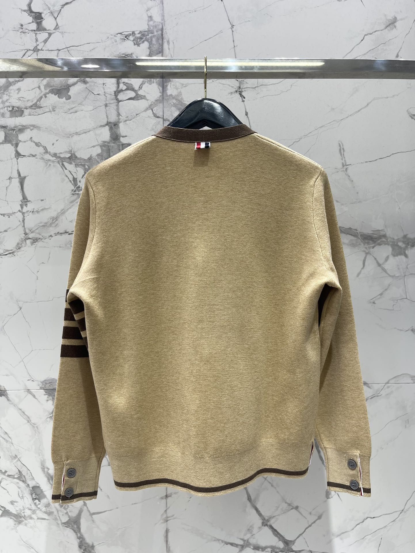 - Four-Bar Stripe: Signature Thom Browne detail on the sleeve.