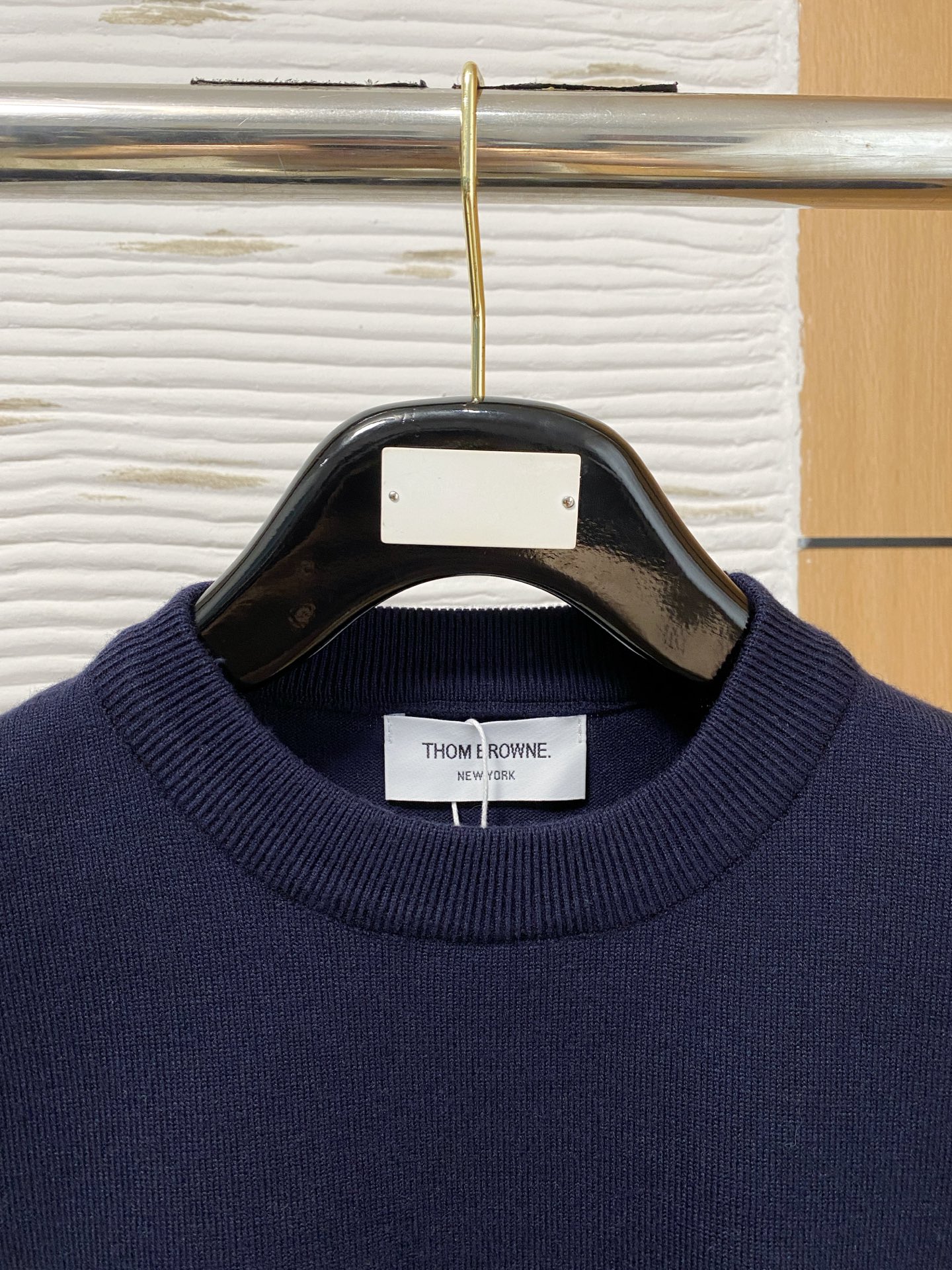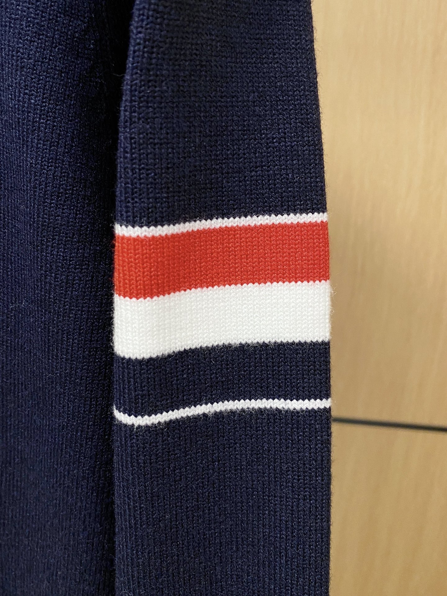 With its iconic design elements and luxurious feel, this sweater is sure to become a staple in your wardrobe. Whether you're dressing up for a casual outing or layering for extra warmth, the Thom Browne wool-blend sweater is a timeless choice.