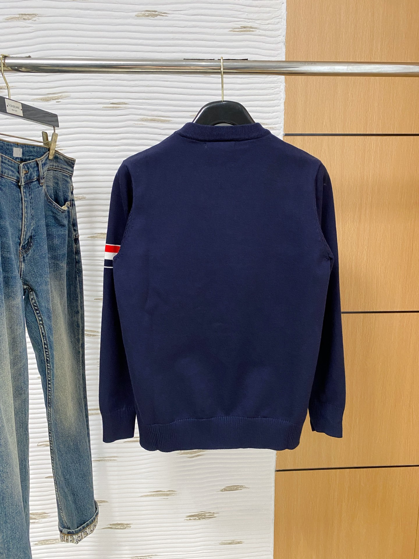 Tags: Crewneck Sweater, Dog Motif Jumper, Striped Sleeve Sweater, Thom Browne Sweater, Wool Blend Sweater