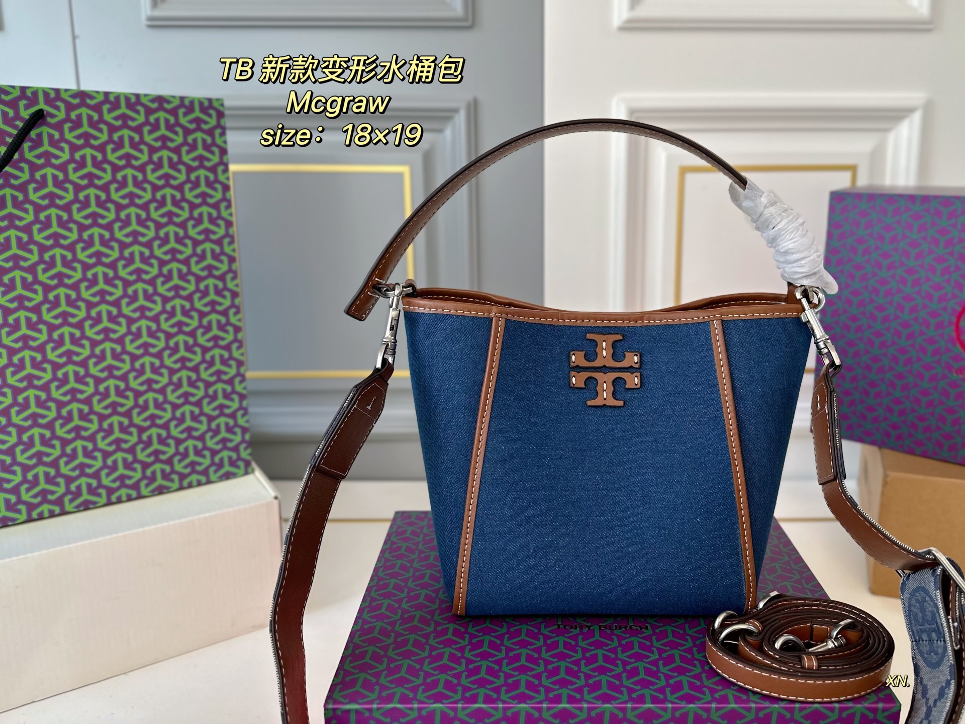 Tory Burch McGraw Color-Block Convertible Bucket Bag, Perfect for Daily